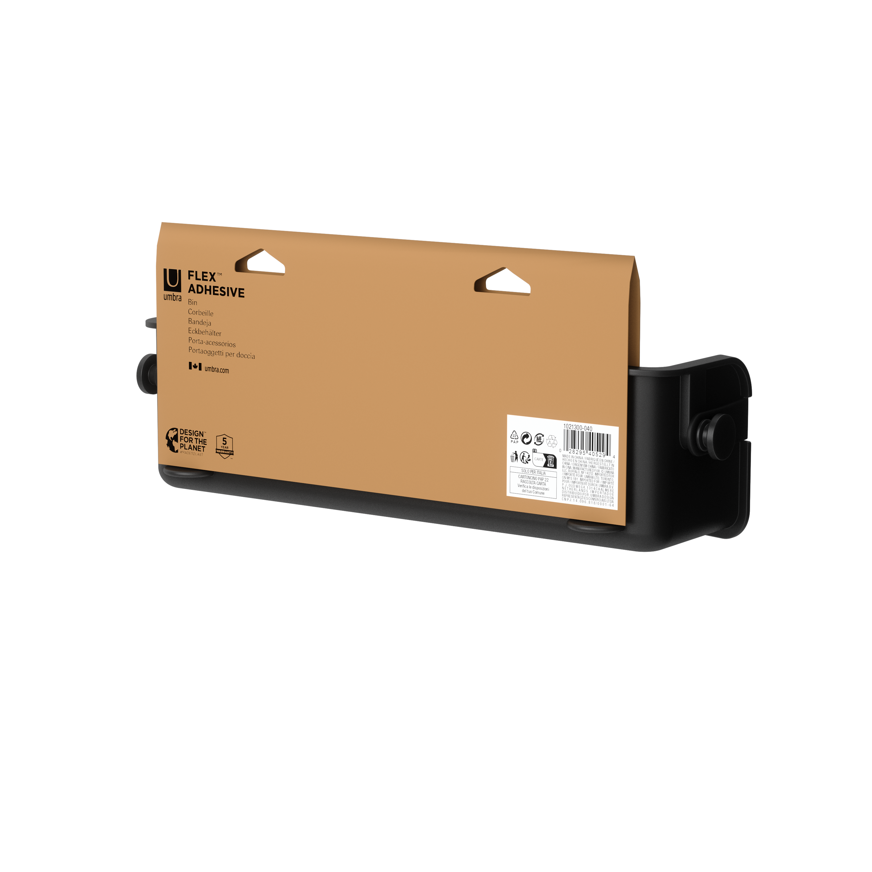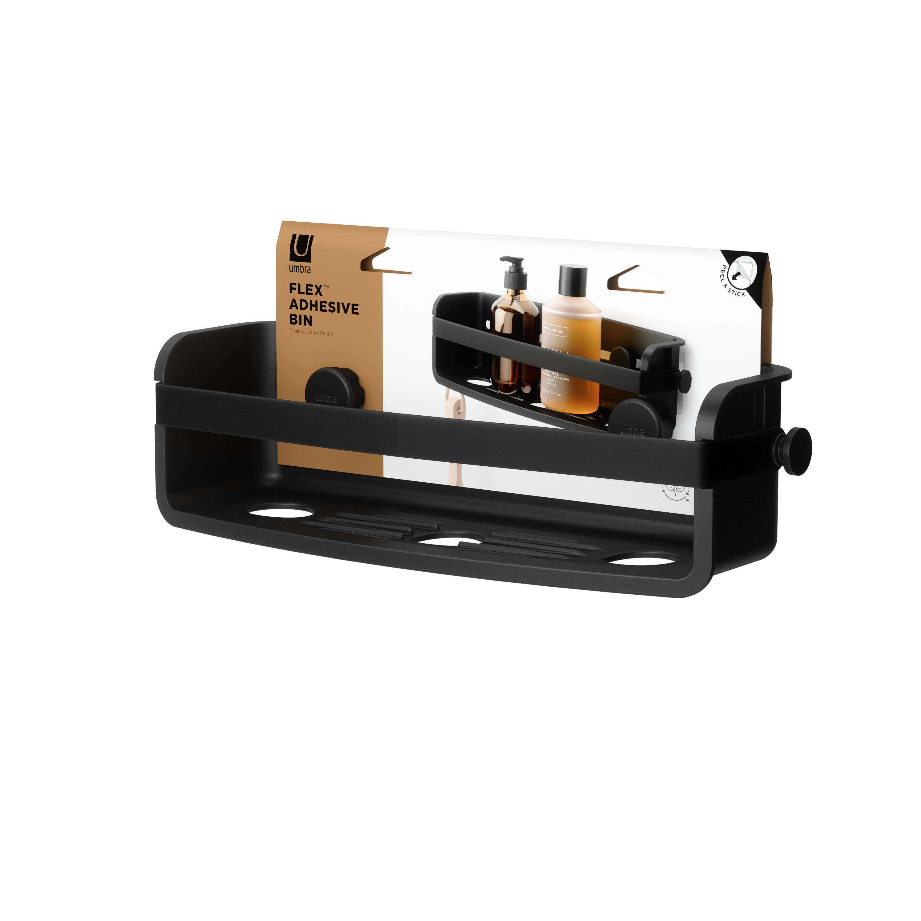 This shower caddy has clever storage for your shower essentials including body wash, shampoo and conditioner, razors and loofas. Easy to install, Flex Adhesive Bin includes non-damaging, waterproof adhesive strips that can be applied on various surfaces such as tiles, dry wall, concrete, etc. (does not work on porous surfaces). The Flex Adhesive Bin allows shampoo and soap bottles to be stored flipped over so you can maximize how much of the product you are able to use. The drainage holds (also integrated) help keep the caddy neat. Flex Adhesive Bin measures 12.9 x 4.6 x 3.4″ (32.7 x 11.7 x 8.6 cm). Part of Umbra’s Flex Adhesive Bath Collection. ♻️ Made from 85% recycled plastic. ⓘ Non-Damaging Adhesive Installation: Completely non-damaging to your tiled walls. Cubiko includes a strong adhesive hook which can be applied on various surfaces such as tiles, dry wall, concrete, etc. Surfaces must be smooth and clean for mounting. Warning: Surface damage may occur if adhesive mounting is removed from dry wall, concrete, wallpaper, and porous surfaces.