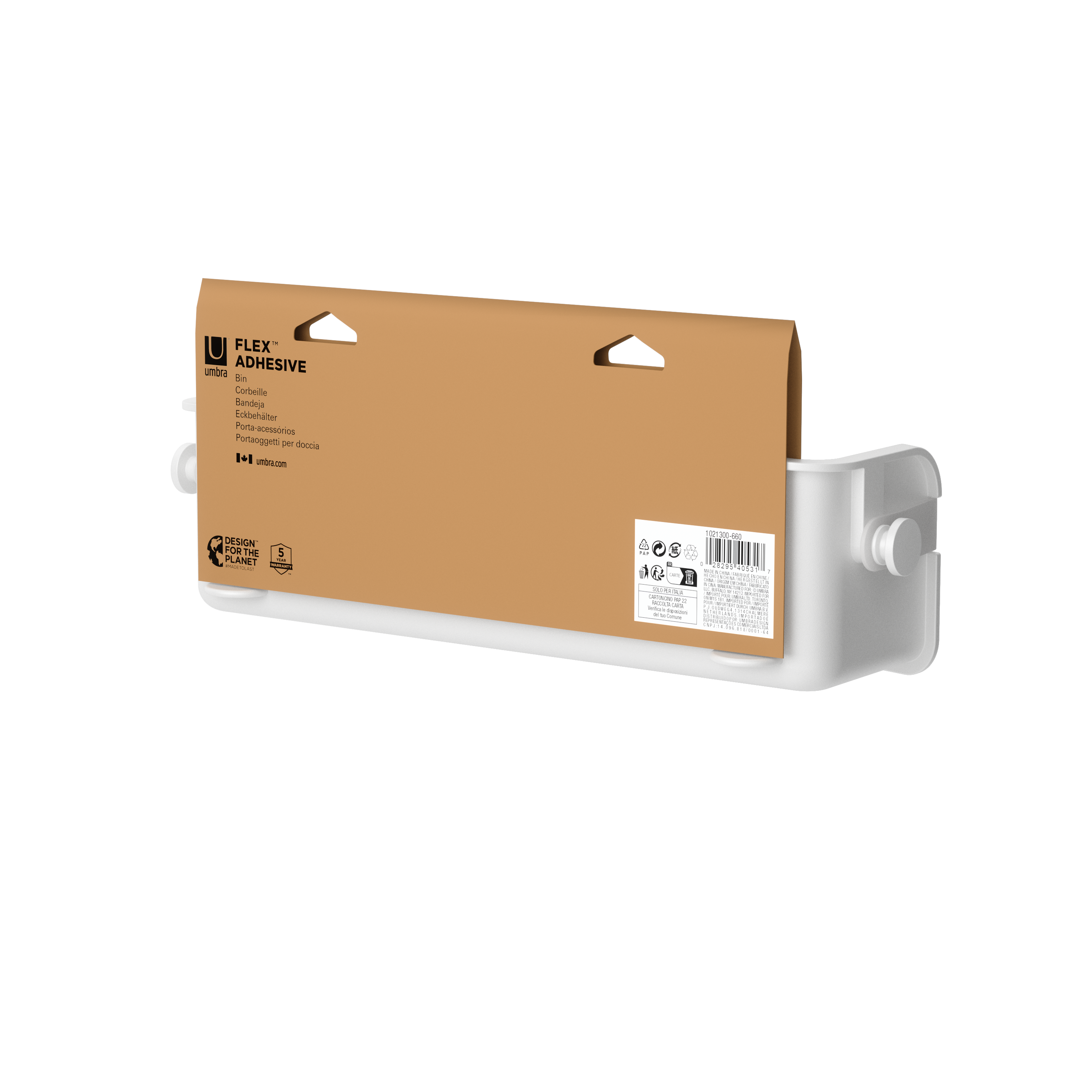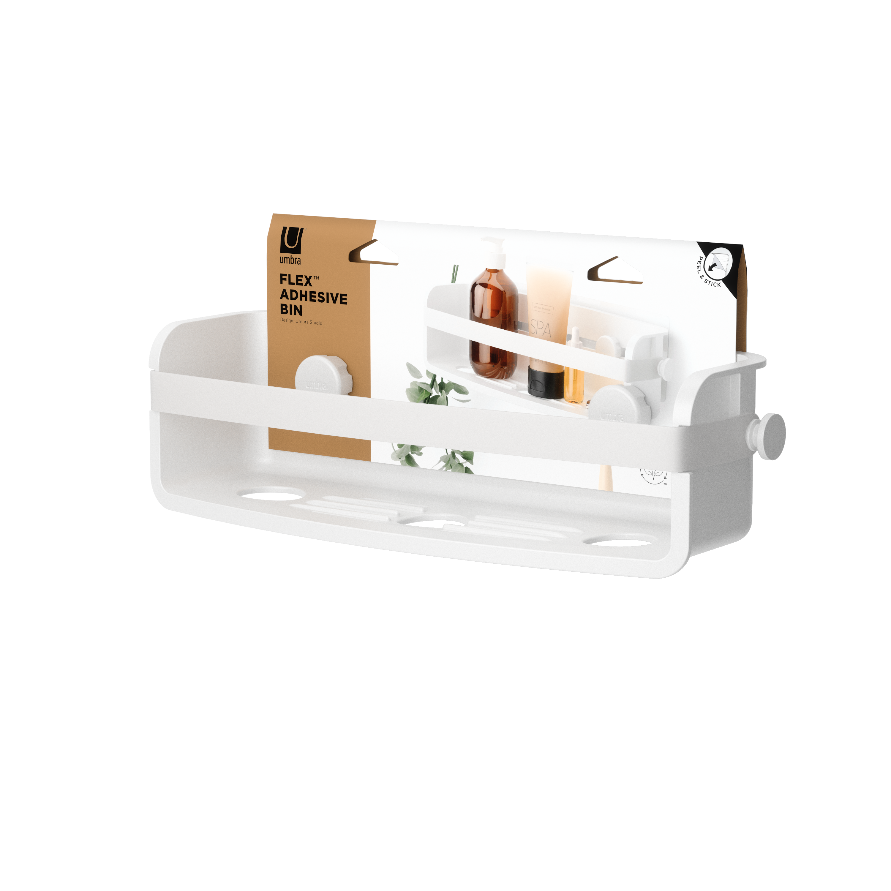 This shower caddy has clever storage for your shower essentials including body wash, shampoo and conditioner, razors and loofas. Easy to install, Flex Adhesive Bin includes non-damaging, waterproof adhesive strips that can be applied on various surfaces such as tiles, dry wall, concrete, etc. (does not work on porous surfaces). The Flex Adhesive Bin allows shampoo and soap bottles to be stored flipped over so you can maximize how much of the product you are able to use. The drainage holds (also integrated) help keep the caddy neat. Flex Adhesive Bin measures 12.9 x 4.6 x 3.4″ (32.7 x 11.7 x 8.6 cm). Part of Umbra’s Flex Adhesive Bath Collection. ♻️ Made from 85% recycled plastic. ⓘ Non-Damaging Adhesive Installation: Completely non-damaging to your tiled walls. Cubiko includes a strong adhesive hook which can be applied on various surfaces such as tiles, dry wall, concrete, etc. Surfaces must be smooth and clean for mounting. Warning: Surface damage may occur if adhesive mounting is removed from dry wall, concrete, wallpaper, and porous surfaces.