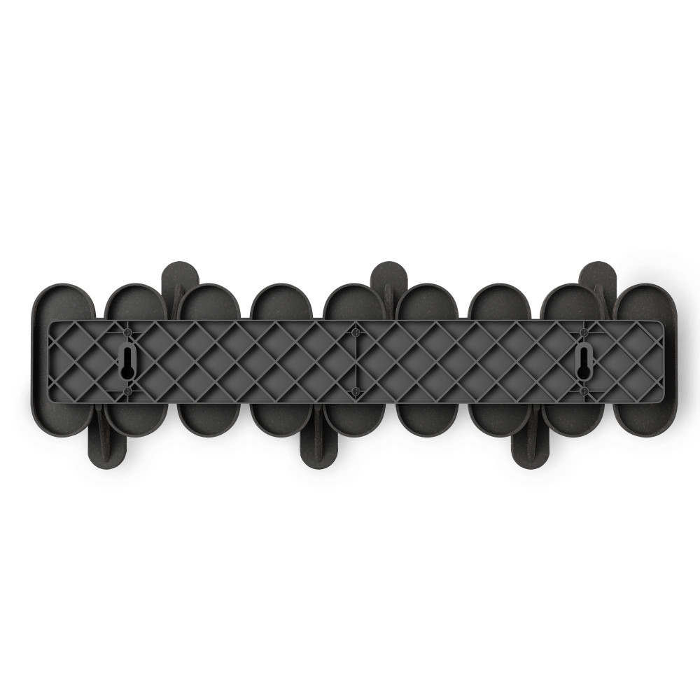 Tempo 6 Hook brings modern style and everyday function together in one sleek wall-mounted design. Its six staggered hooks maximize hanging space while creating a striking, graphic look on your wall. Made from durable, lightweight recycled plastic blended with recycled wood fiber, Tempo adds a subtle natural texture that complements a variety of spaces; from entryways and bedrooms to bathrooms and offices. Each hook holds up to 5 lbs (30 lbs total), making it perfect for coats, bags, towels, and more. Measures 18.6 x 6.22 x 2.54″ (47 x 15.7 x 6.4 cm).