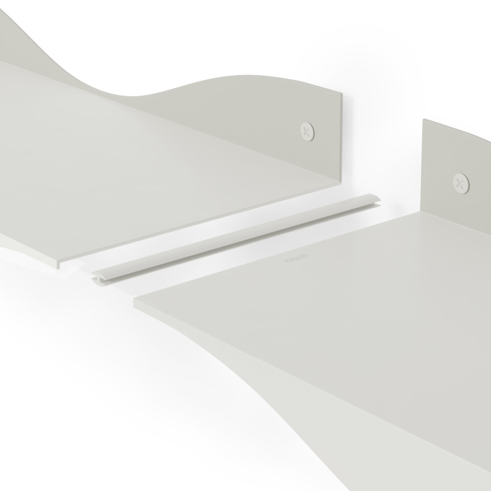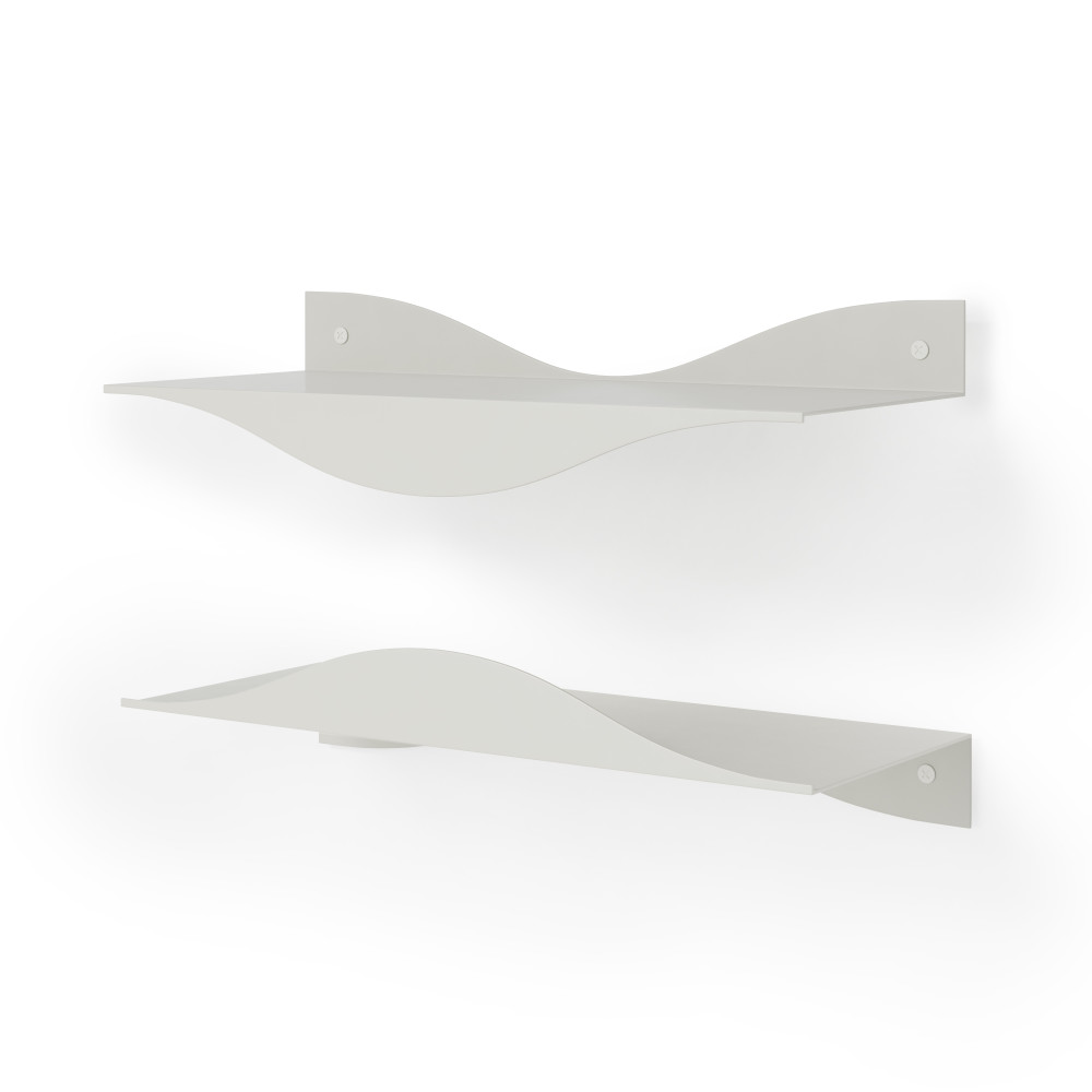 Elevate your walls with Surf Wall Shelves, a sleek and functional set of two powder-coated metal shelves that bring a subtle wave-like ripple to your space. Designed for both style and stability, Surf shelves seamlessly clip into each other with a hidden connector for a clean, modern look. Each shelf holds up to 15 lbs (6.8 kg) and can be mounted in multiple orientations, allowing you to create a customized display. Easy to install and made from durable 100% steel, Surf Shelves blend art and function to make any wall a statement. Measures 17” x 7” x 3.9” (43.1 x 17.7 x 9.9 cm)​.