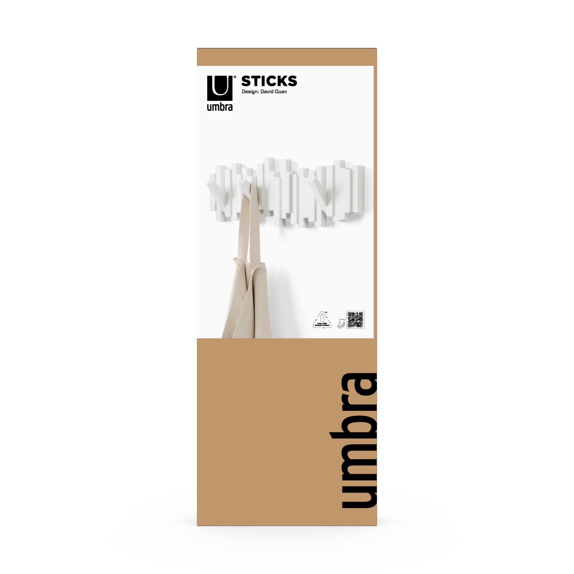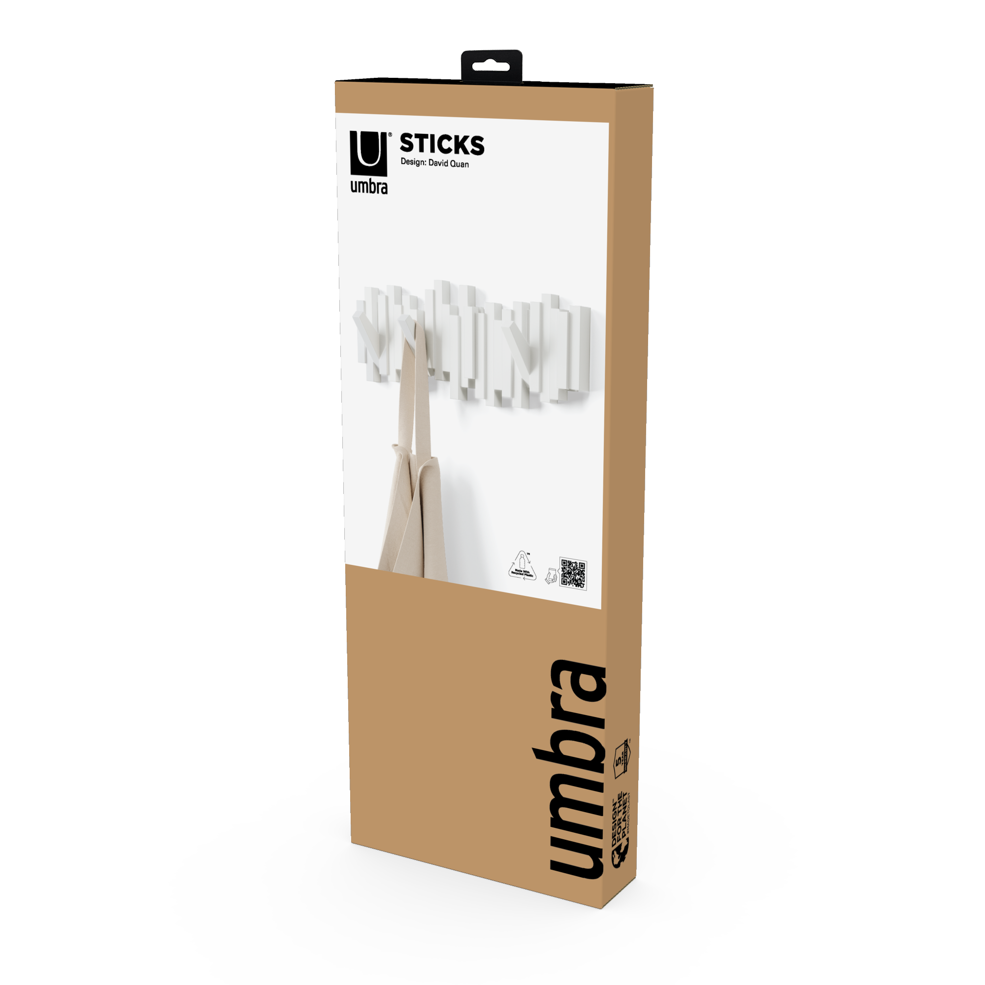 Sticks Multi Hook is a sculptural yet functional wall coat rack that will provide you with ample hanging space in virtually every area of your home, office or dorm room. The deceptive design of Sticks looks at first glance like a modern piece of art until it boasts its clever design with 5 flip-down hooks which can be flipped up when not in use, creating a clean, seamless profile. Each flip-hook holds a surprisingly 5 lbs. load per hook making it a strong helper to keep your home better organized. Sticks comes with mounting hardware making installing it super easy and fast. Measures 19.38 x 7.13 x 1.13″ (49 x 18 x 3 cm). Made with recycled plastics.