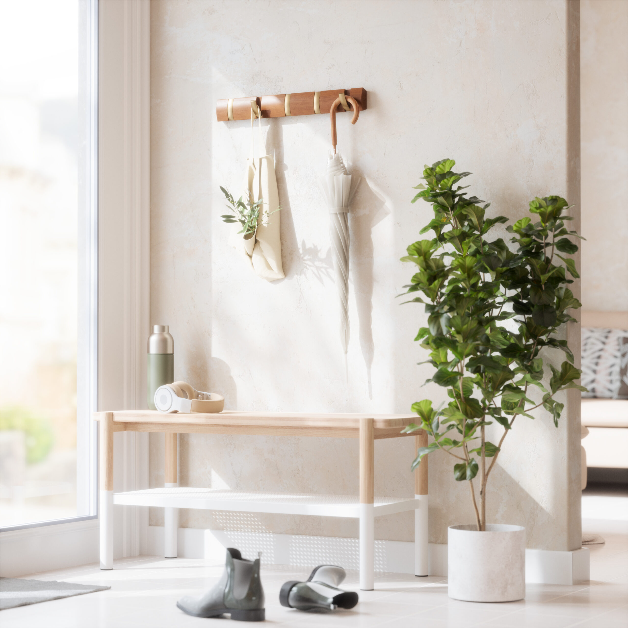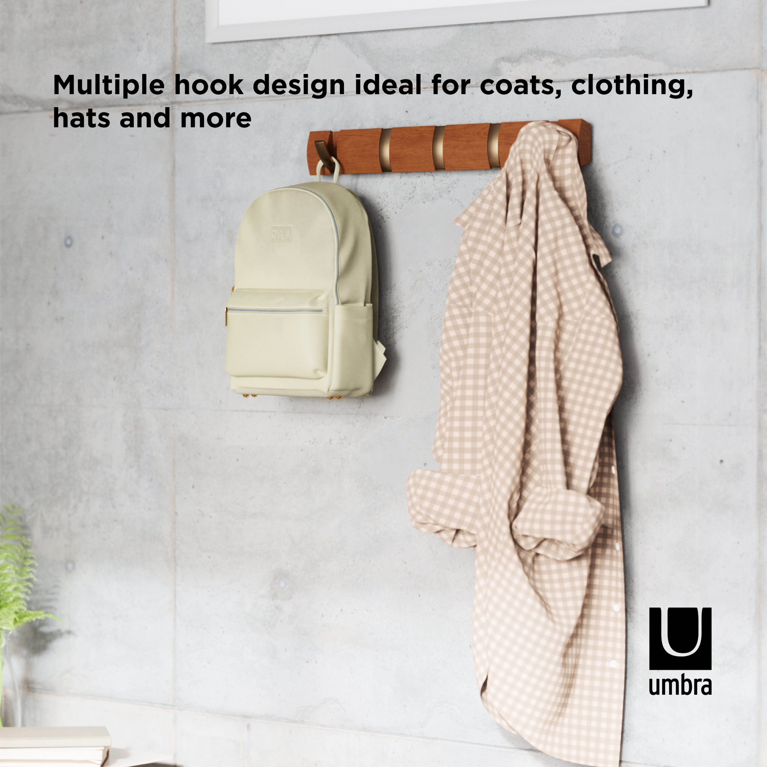 Flip is a modern yet functional, wall mounted coat rack with ample hanging space where you need it most. Flip boasts a clever design with multiple hooks that retract when not in use, each one slipping neatly back into its groove for a sleek look and space-saving functionality. But don’t let the compact look fool you, because Flip can accommodate a surprisingly large number of items making it the perfect spot to hang coats, scarves, purses, and more for you, your family and your guests. Thanks to the sleek profile and hidden mounting hardware, Flip mounts seamlessly to virtually any wall and offers styling that looks great in any entryway or foyer, regardless of how big or small it is. Measures 20 x 2.5 x 1.25 inches (51 x 6 x 3 cm). Wood is a unique natural material with variations in tone, texture, and grain. The product may vary from our imagery. ⓘ For Best Care: wipe with a clean damp cloth