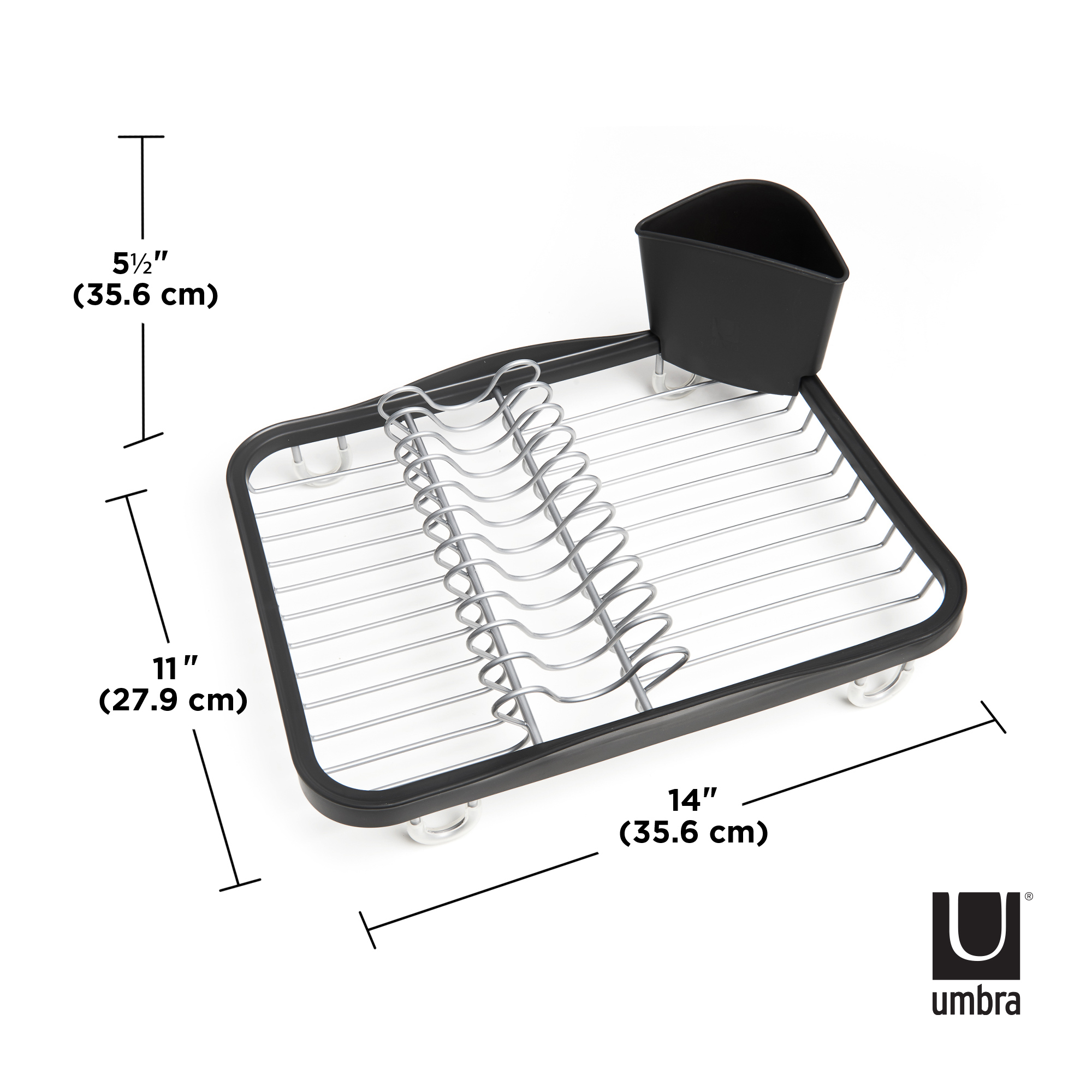 Sinkin is an in-sink dish drying rack that rests in the bottom of your kitchen sink (or on your countertop) and is a tidy and convenient way to air-dry dishes, glasses, and cutlery. Constructed of coated metal wire and durable polypropylene, Sinkin features non-slip rubber feet that won’t scratch your sink or countertop. Sinkin Measures 14 x 11 x 5.5″ (36 x 28 x 14 cm) and fits most standard kitchen sinks. This in-sink dish drying rack is made with an eco-friendlier finish. It produces 85% less water and solid waste than traditional electroplating finishes.