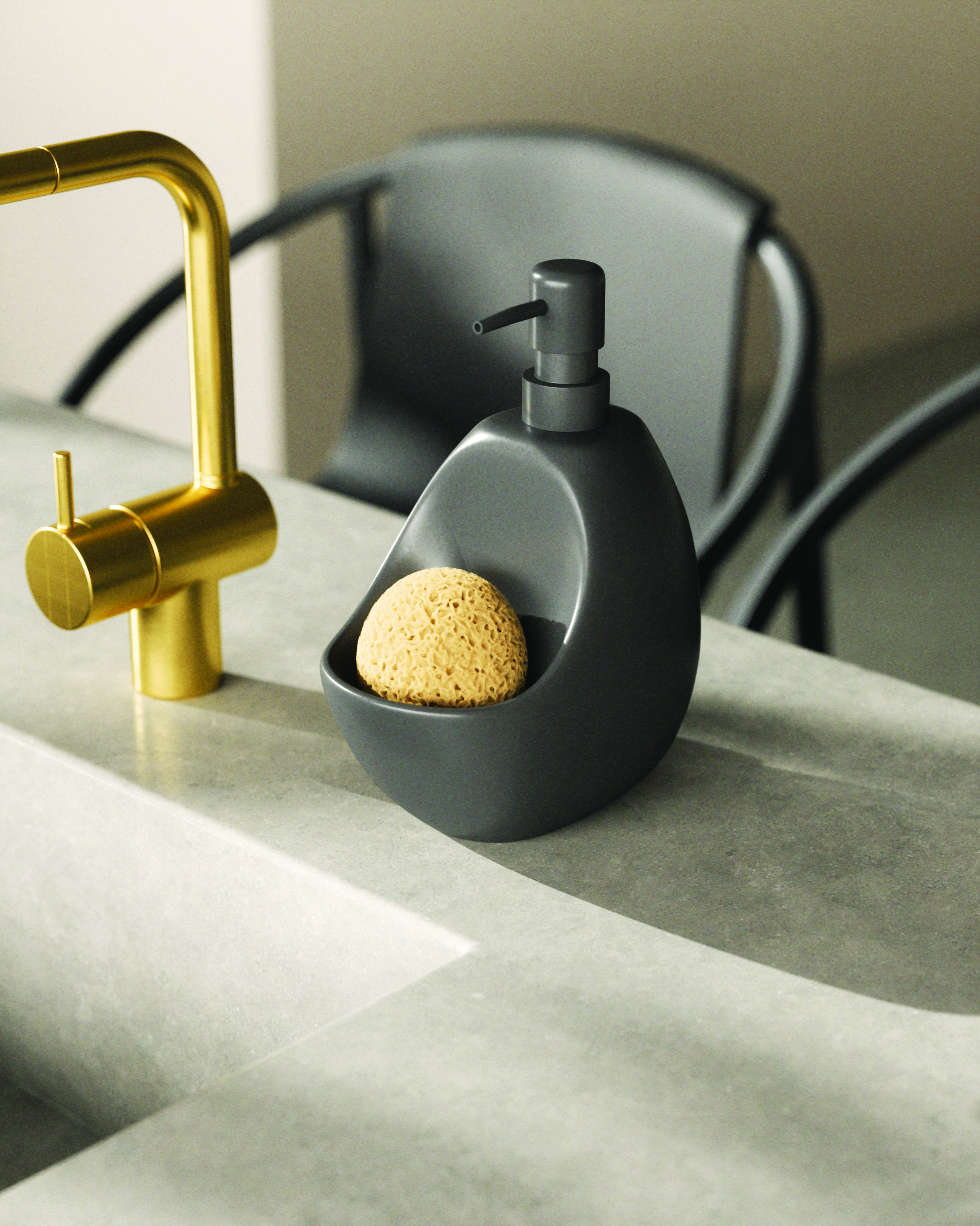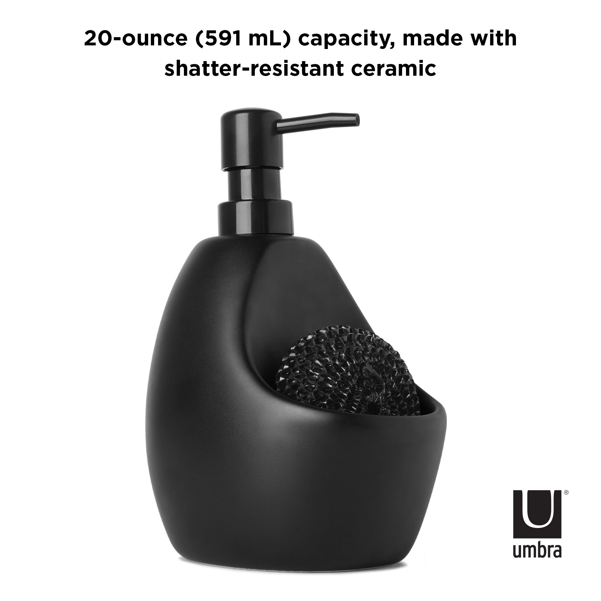 The sleek and modern-looking design of Joey Soap Pump will be a great addition to any countertop either in your kitchen or bathroom. Joey’s built-in caddy keeps your kitchen essentials like a scrubby (included) neatly organized, while at the same time offering easy single-handed pump operation due to its sturdy and heavy ceramic material. Joey is loved for its versatility as its built-in caddy offers neat storage space for your bathroom essentials such as hair elastics, bobby pins, hair clips or dental floss – it’s great for all the little essentials cluttering up your countertop that make it so much more annoying to clean. Joey measures 4 x 5 x 8″ (10 x 13 x 20 cm), taking up minimal space on your counter while adding a great decor touch to it. It has a generous fill capacity of 20 oz (591 ml) and comes with a scrubby.