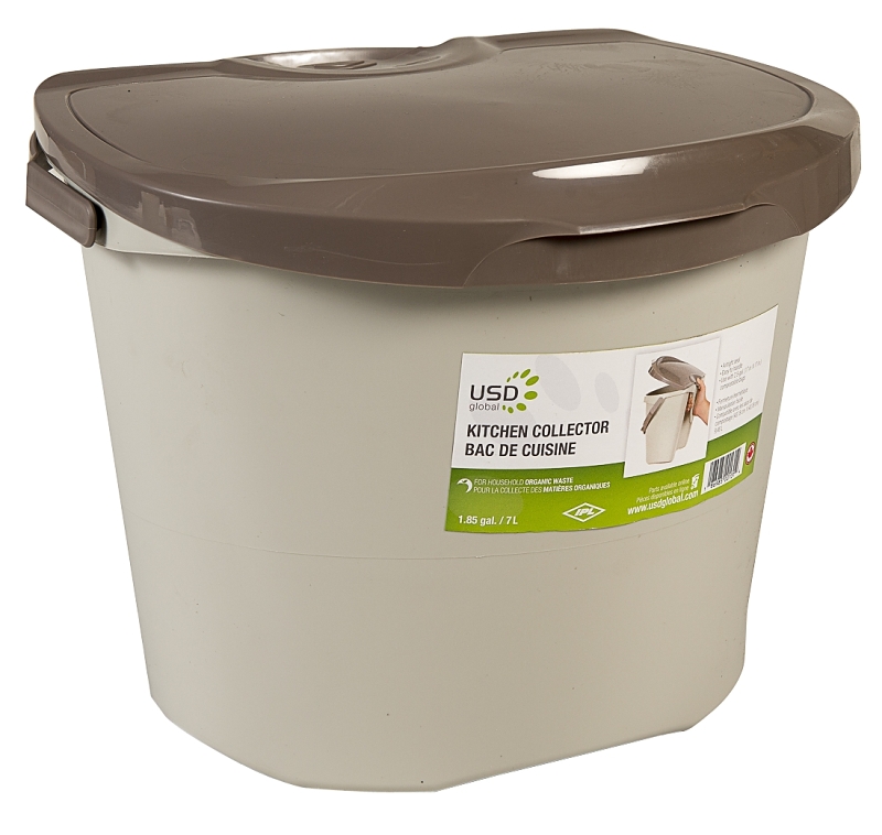 USD Global IPL 6022441001W01 Kitchen Composter, 9 in OAW, 9 in OAD, 11 in OAH, 7 L Capacity, Polypropylene, Beige/Brown
