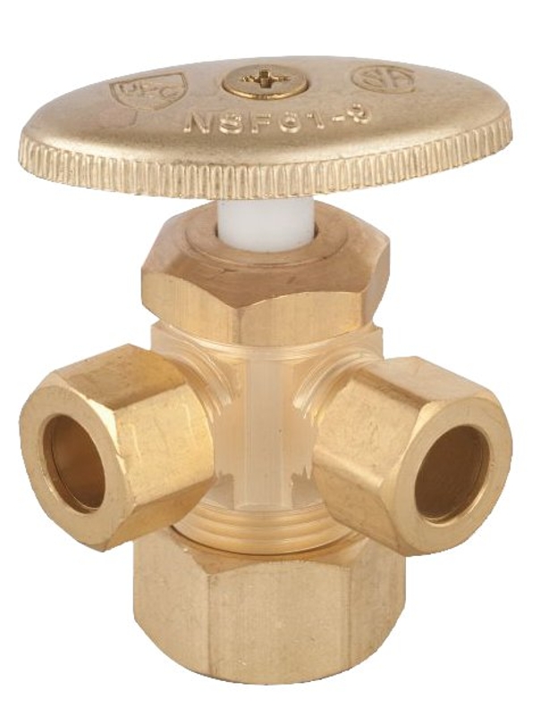 Moen M-Line Shut-Off Valve, 3/8 x 3/8 x 5/8 in Connection, Compression Connection, Number of Ports/Ways: 3, Body Material: Brass, Chrome