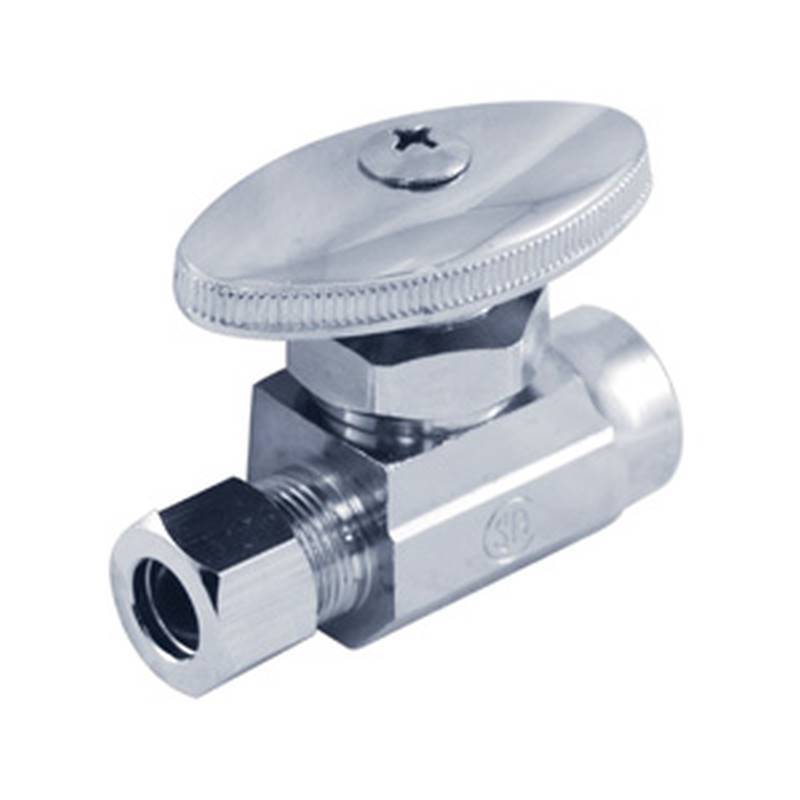 aqua-dynamic Stop Valve, 1/2 x 3/8 in Connection, Solder x Compression Connection, 125 psi, Temperature Rating: 82 deg C, Body Material: Brass, Chrome