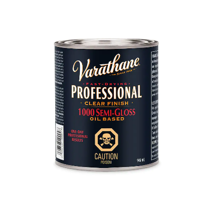 Varathane Professional Clear Finish is specifically developed to enhance the natural beauty of wood while providing the best scratch and stain resistance available. Varathane Professional Clear Finish is ideal for all interior projects such as furniture, doors, cabinets, and trim. Over twice as durable as traditional wood finishes, Professional Clear Finish adds a warm, golden glow to your project. It has the fastest dry time of any oil-based polyurethane and is self leveling to save you time. Recommended use with Varathane Premium Oil Stains and Premium Gel Stains.