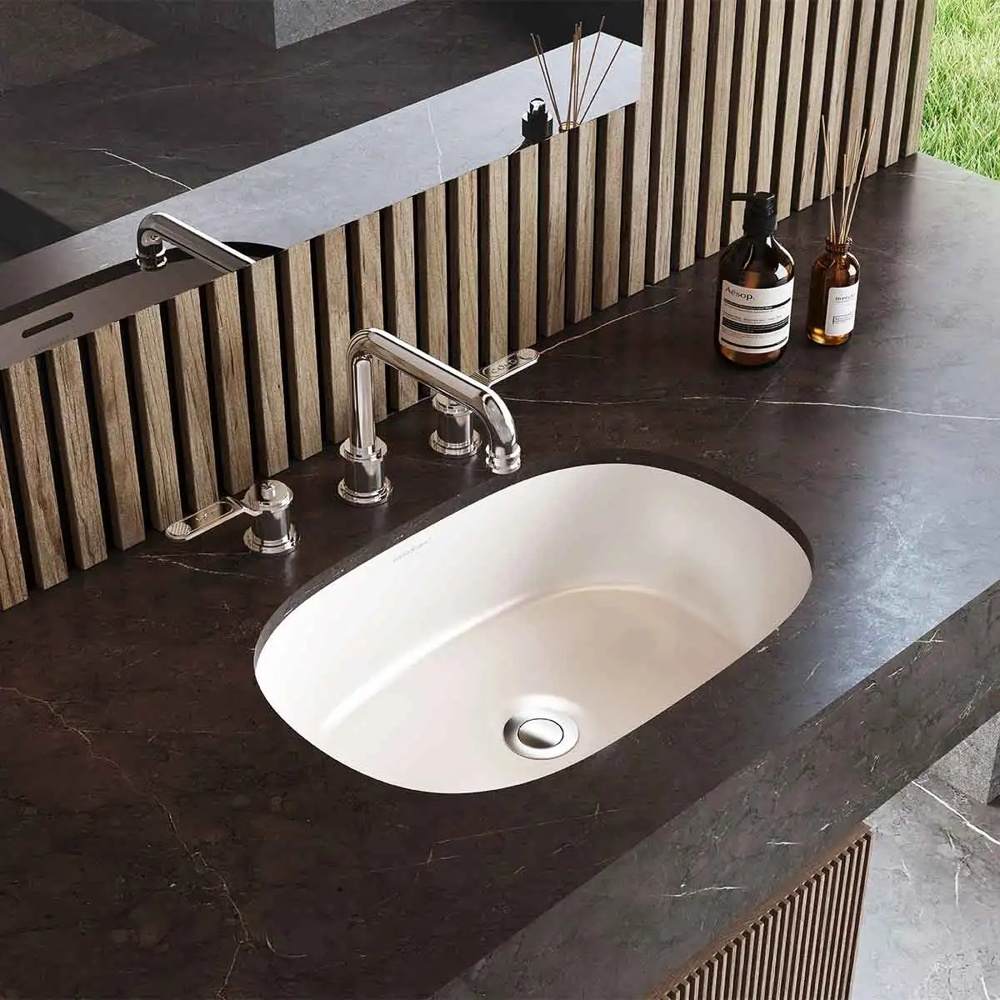 The Victoria + Albert Barcelona 53 undermount basin is a deep, oval bathroom sink with an internal overflow. The versatile shape lends itself to a wide range of bathroom designs, and is specifically designed to complement the Barcelona bath collection.