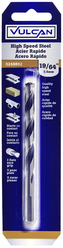 Vulcan 231751OR Jobber Drill Bit, 19/64 in Dia, 4-3/8 in OAL, 3-Flat Shank