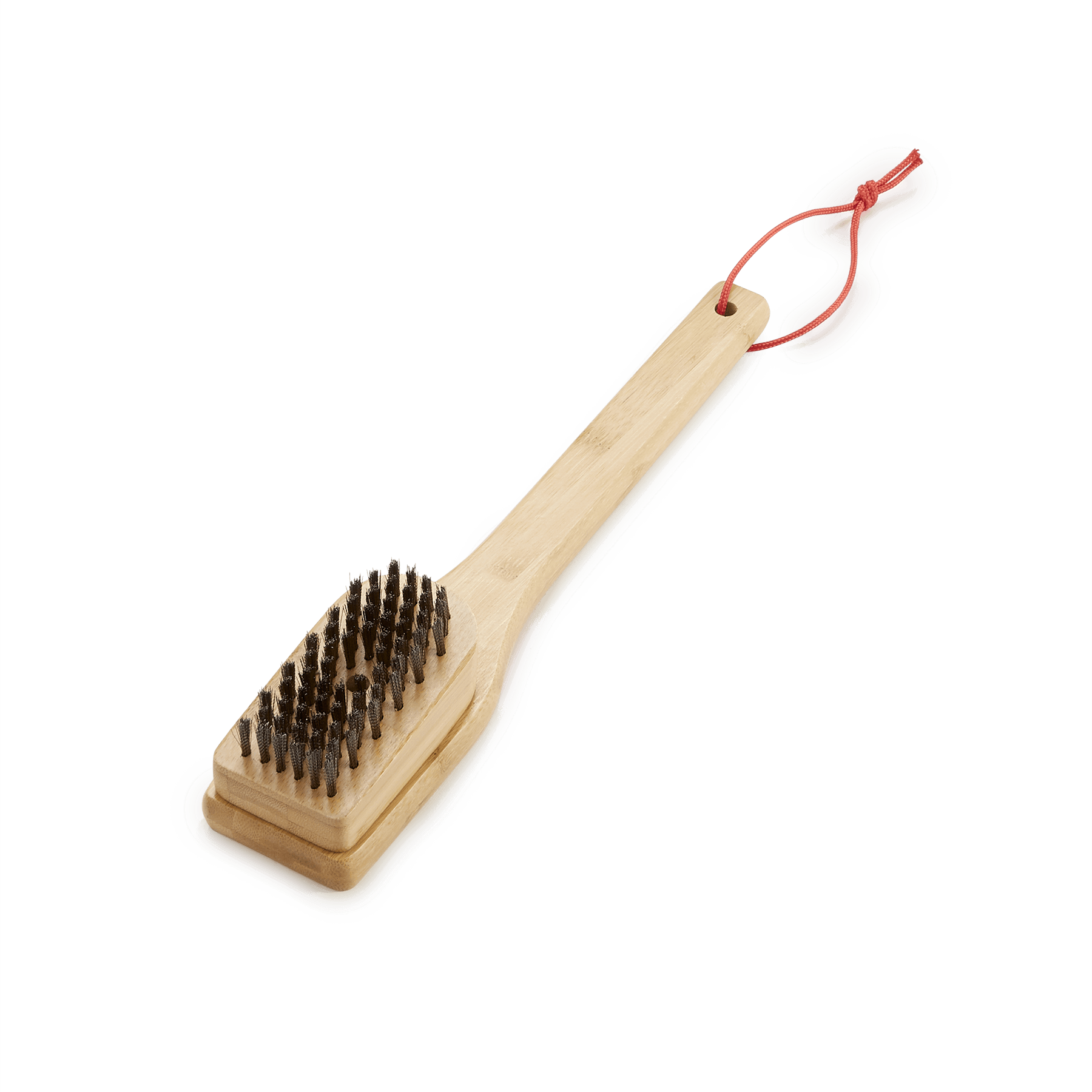 Get the best grilling results by starting with clean cooking grates. The bamboo grill brush is designed to easily and efficiently clear away baked-on food grease and debris from grates of all sizes. The angled bristle head allows you to brush away stuck-on food without being too close to the heat. Use this grill brush to clean your grates before each use so that your grill lasts longer and your next meal is as delicious as the one before.