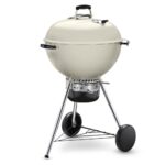The Weber 22″ Master-Touch Charcoal Grill in Ivory combines traditional grilling with innovative features. It includes a hinged Gourmet BBQ System cooking grate, allowing for versatile cooking options with additional inserts like a wok or griddle (sold separately). The grill’s built-in lid thermometer ensures precise temperature monitoring, while the Tuck-Away lid holder provides a convenient place to rest the lid during grilling. Durable all-weather wheels make it easy to move the grill across your patio or yard.