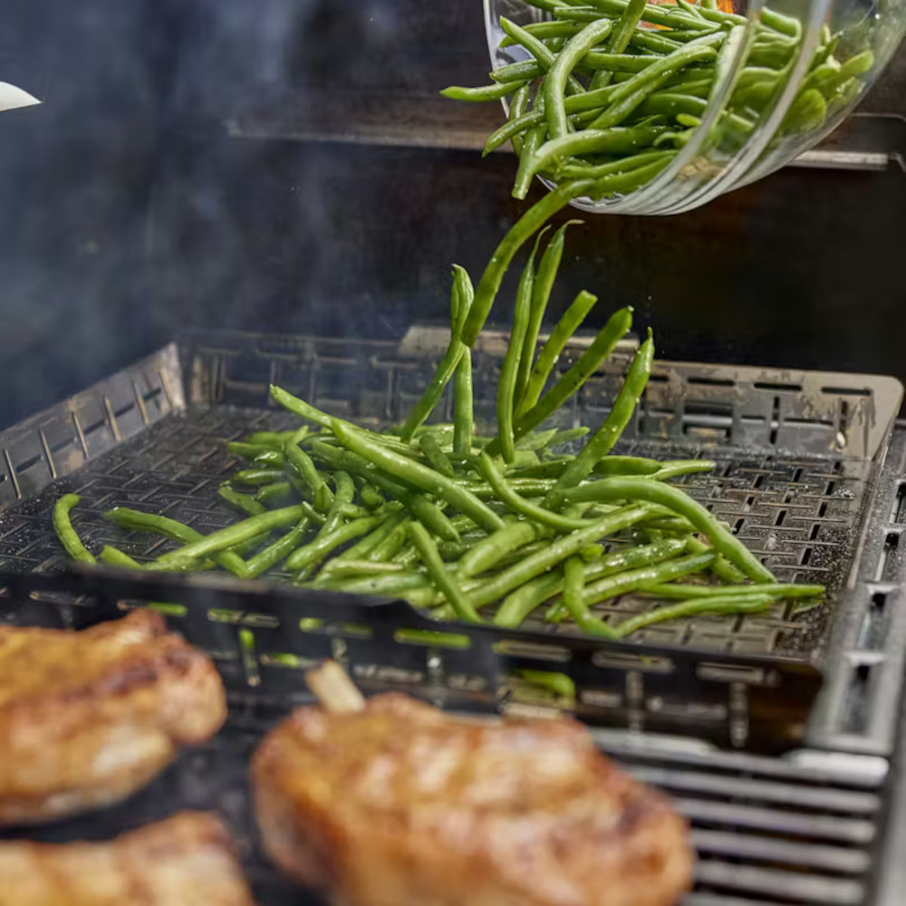 Bring the heat with a dedicated Sear Burner that delivers up to 50% more power in the extra-large Sear Zone, plus 9mm stainless steel cooking grates that create bold, flavorful sear marks on meat, fish, and vegetables. The included Weber Crafted® Frame Kit lets you expand your menu with add-ons like a pizza stone, rust-resistant griddle, wok, and more Weber Crafted® grillware (sold separately). And with a roomy grill locker for organized storage, everything stays close at hand for your next cooking adventure.