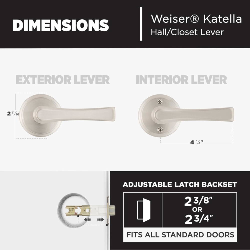 With Weiser® you can blend simplicity with elegance. Whether you’re looking for traditional, transitional or contemporary style, our selection and finishes will make it easy to find the right accent for your home. The knob/lever is reversible and mounts on both left and right handed doors. The crisp, clean appearance of the Satin Nickel finish adds to the overall look of the product and brings a modern feel.