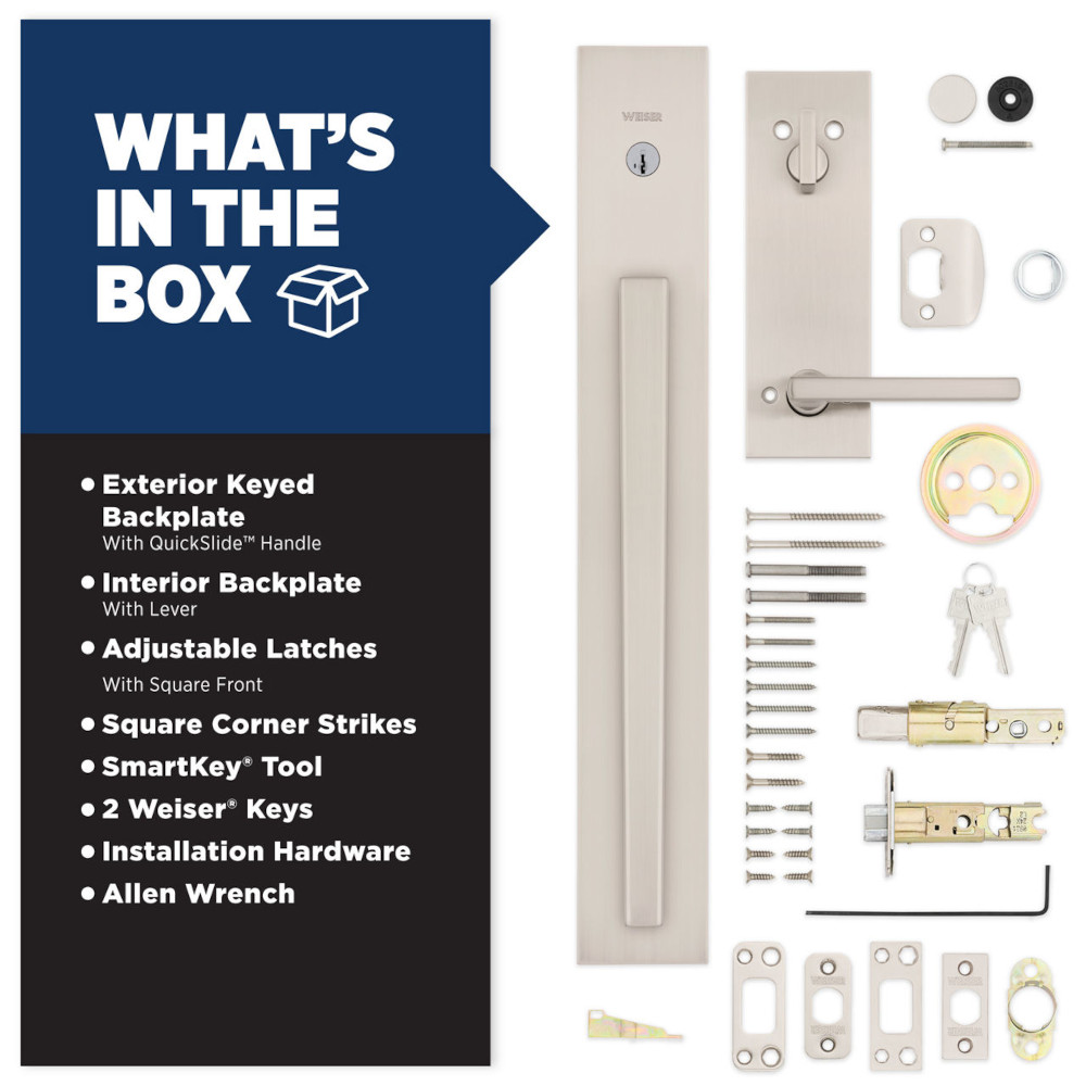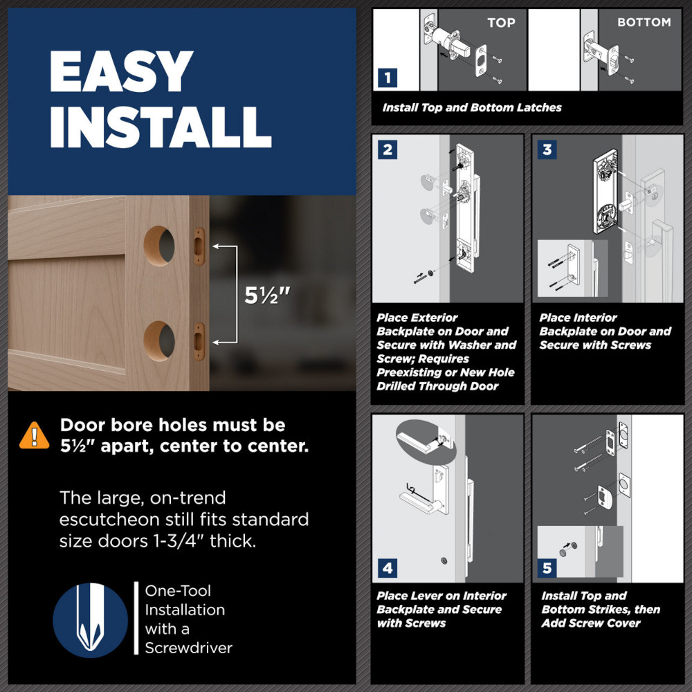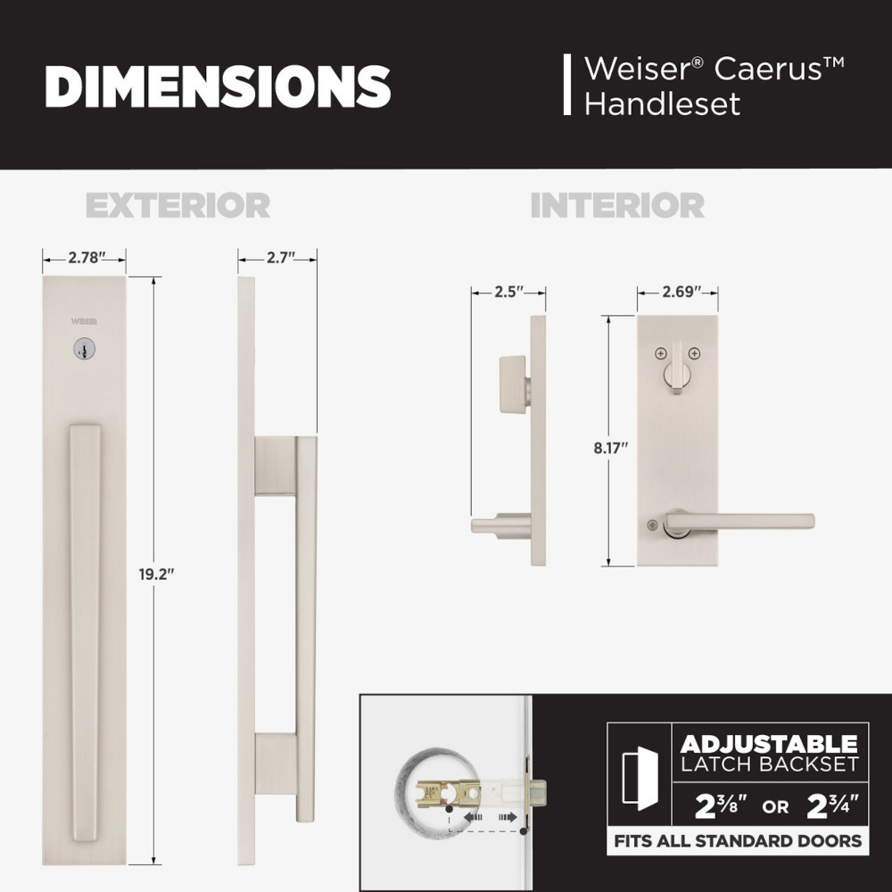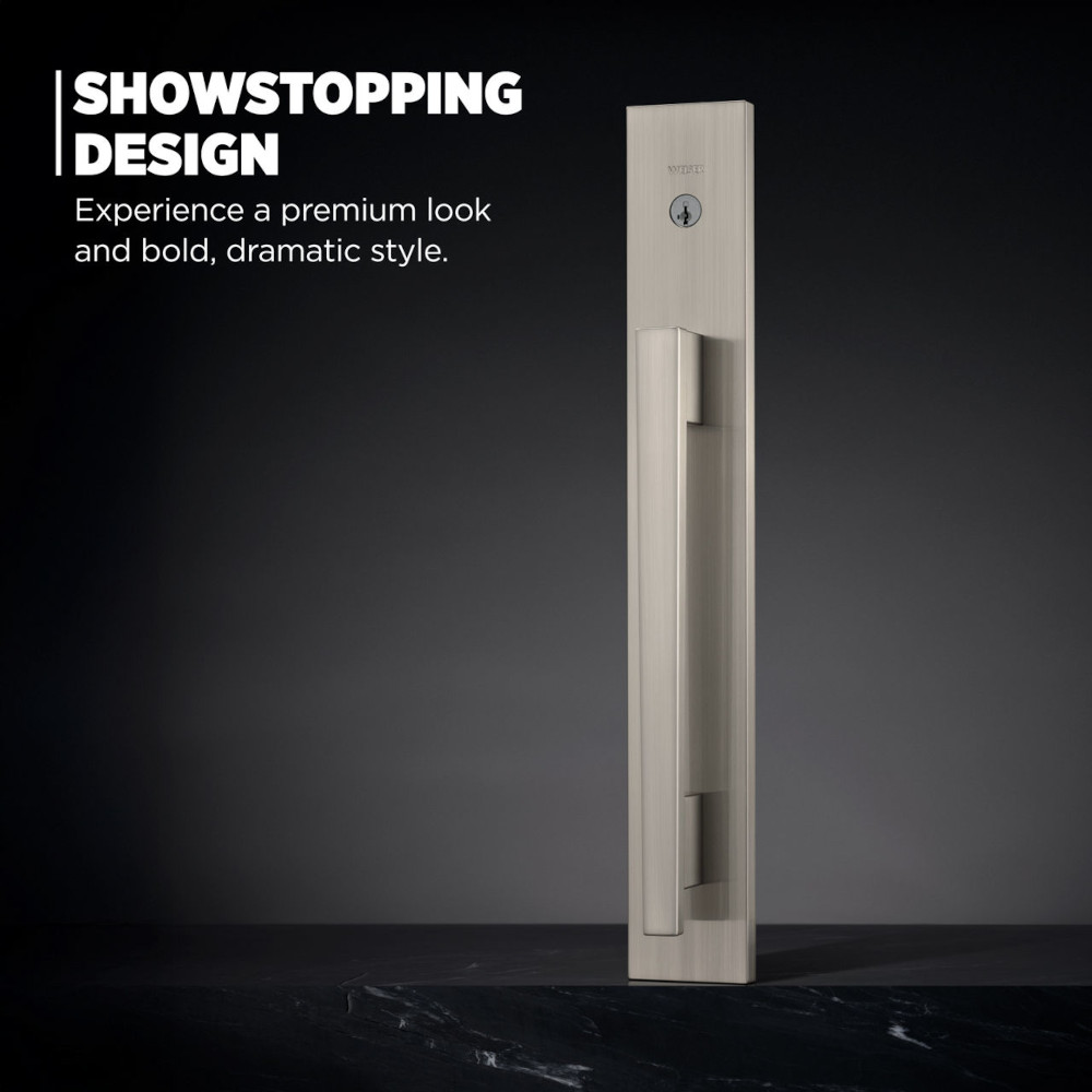 Caerus™ transforms doors into modern style statements. Designed with an oversized backplate, no thumbpiece and QuickSlide™ technology, the handleset is sleek, innovative and intuitive to use — simply slide the grip down to open the door. Experience effortless operation and affordable luxury every day