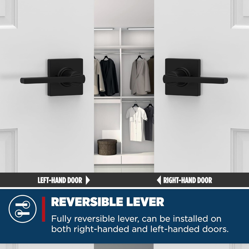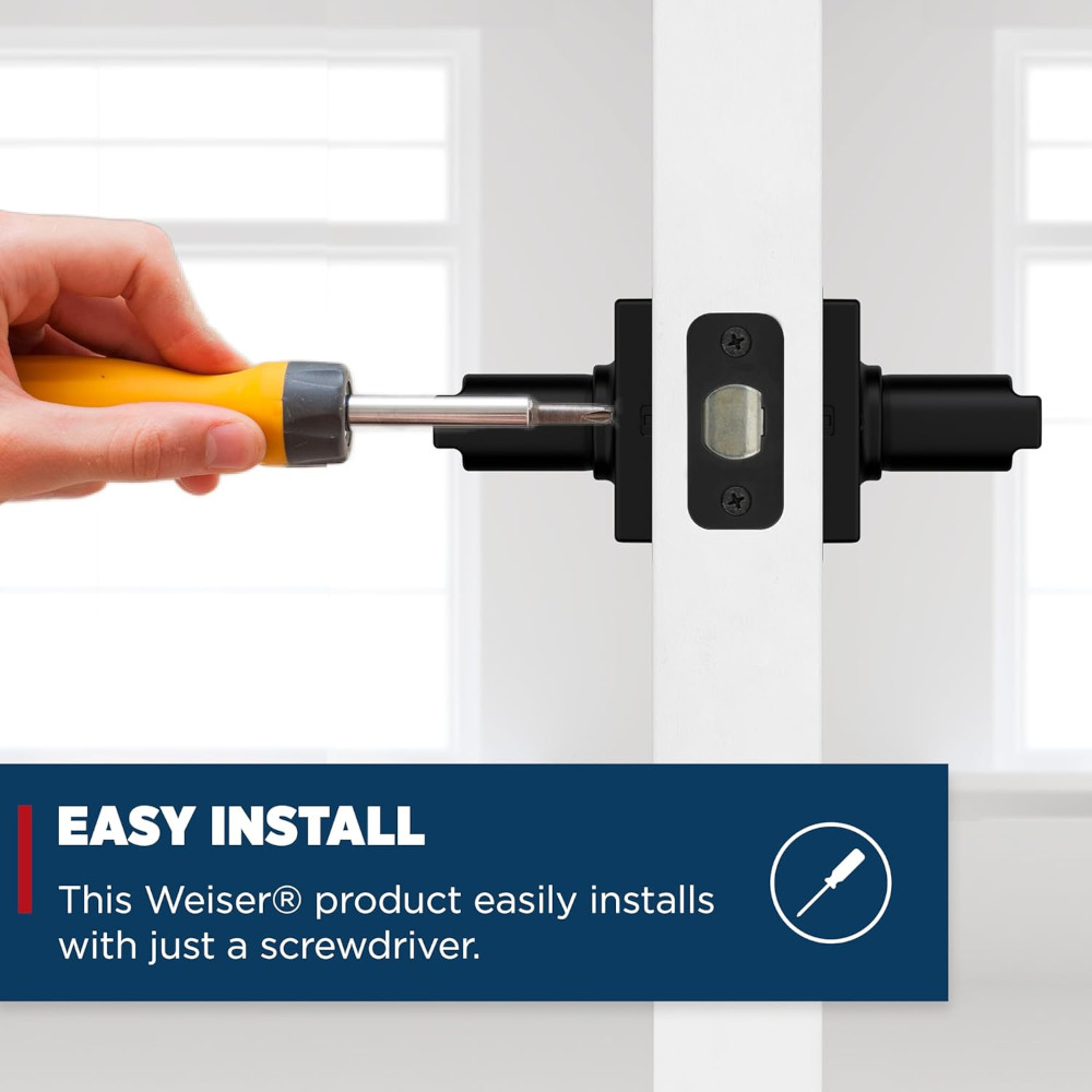 Elements by Weiser® provides an expanded choice styles and finishes at an affordable price. This passage knob/lever is best used on interior hall and closet applications where no locking is required. The knob/lever is reversible and mounts on both left and right handed doors. The rich tones of Matte Black add the finishing touch to this product. The Matte Black finish provides a rich and warm complement to the product’s style.