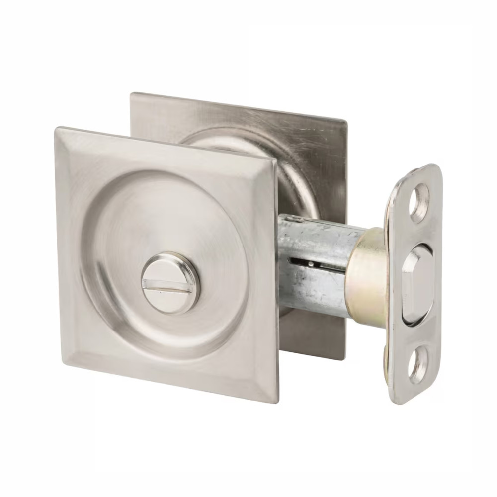 With Weiser® you can blend simplicity with elegance. Whether you’re looking for traditional, transitional or contemporary style, our selection and finishes will make it easy to find the right accent for your home. Notch pocket door locks are ideal for sliding doors. This privacy pocket door lock is best used in interior bed and bath applications where privacy is required. The crisp, clean appearance of the Satin Nickel finish adds to the overall look of the product and brings a modern feel.