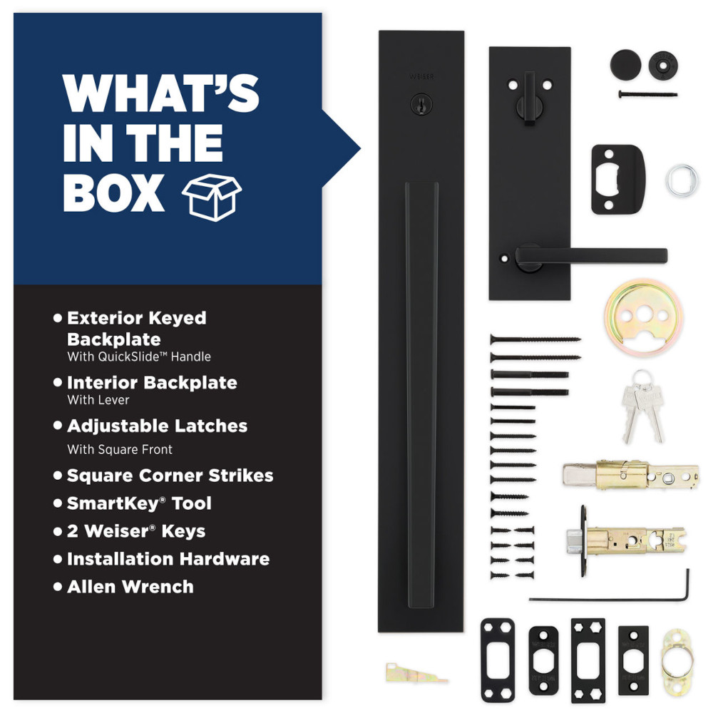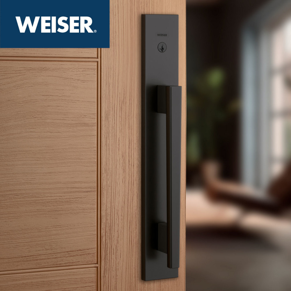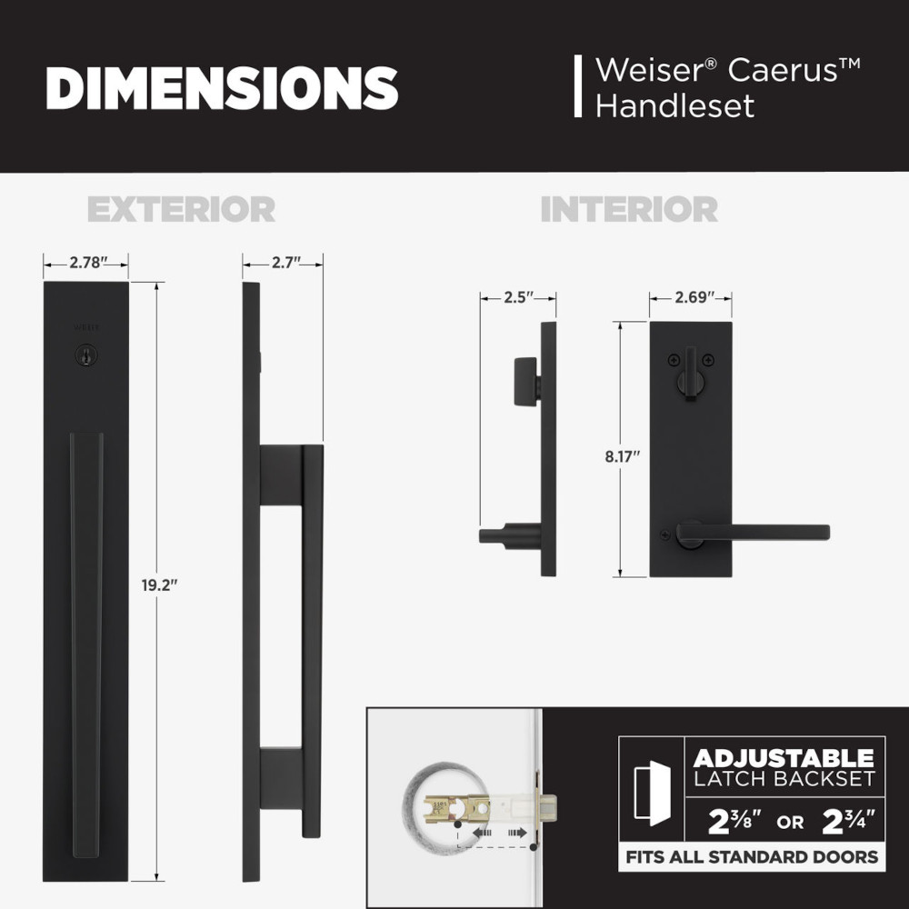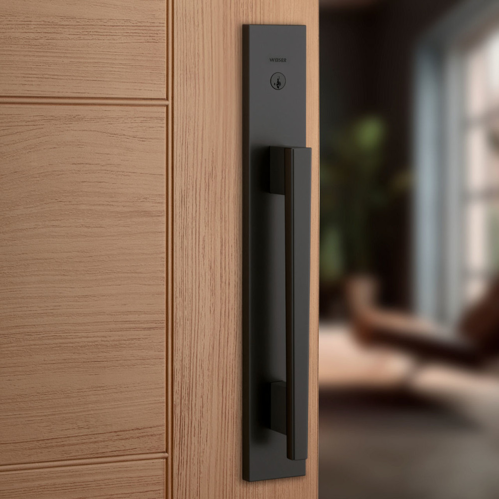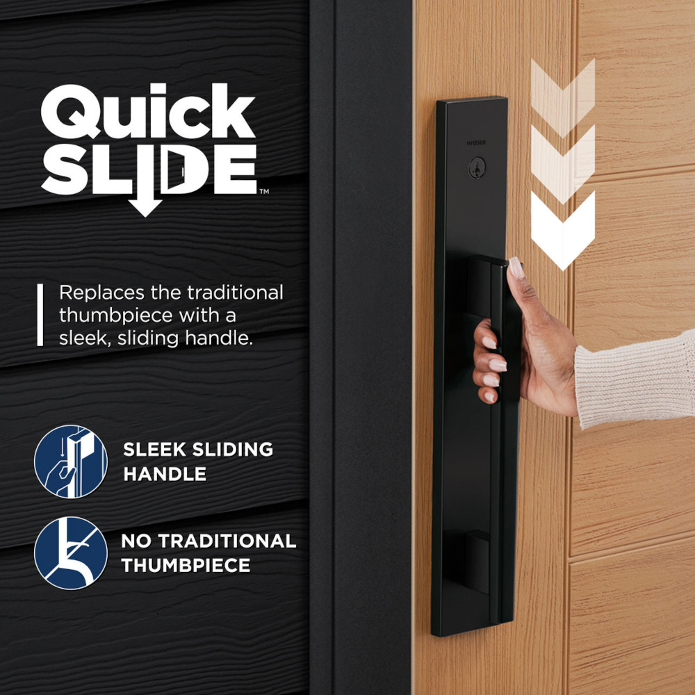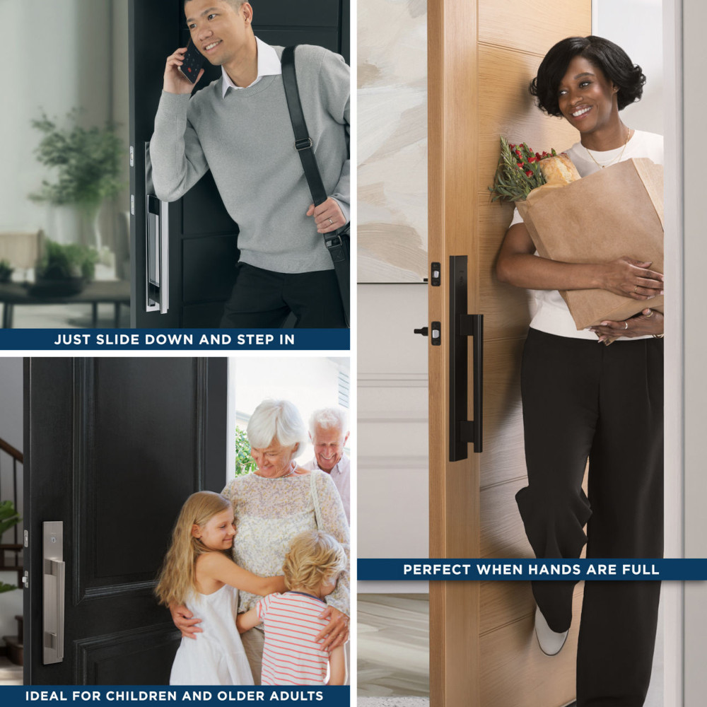 Caerus™ transforms doors into modern style statements. Designed with an oversized backplate, no thumbpiece and QuickSlide™ technology, the handleset is sleek, innovative and intuitive to use — simply slide the grip down to open the door. Experience effortless operation and affordable luxury every day