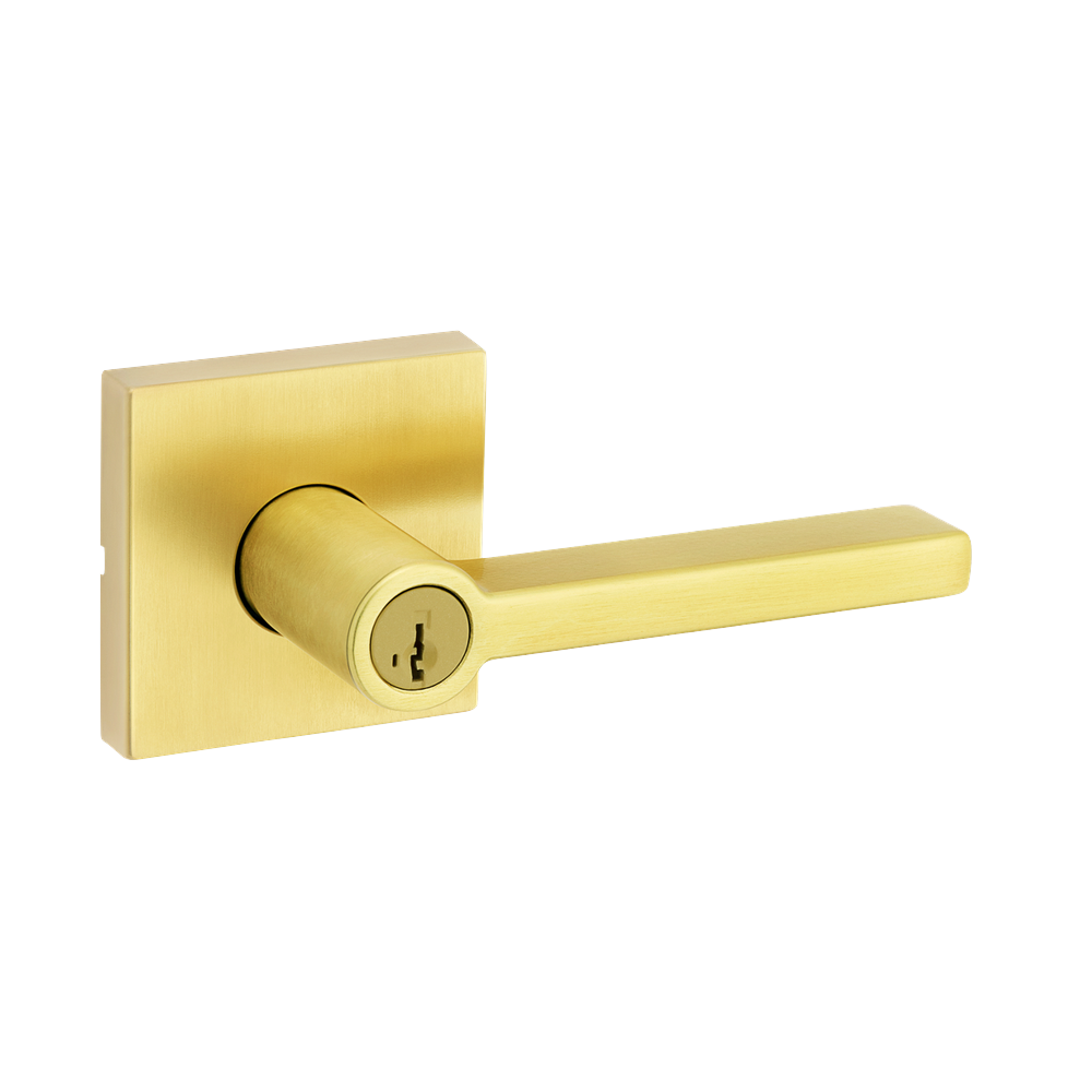 Weiser Halifax Square Keyed Entry Lever featuring SmartKey – Satin Brass