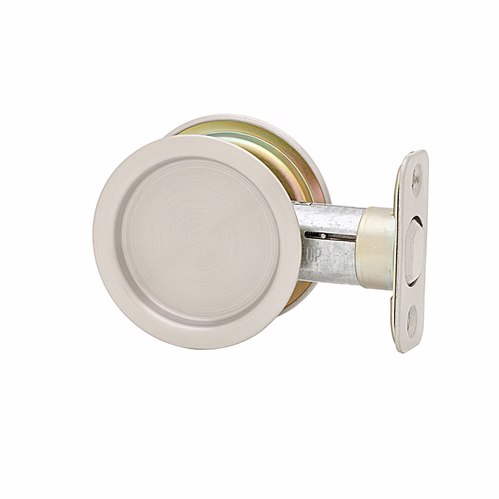 With Weiser® you can blend simplicity with elegance. Whether you’re looking for traditional, transitional or contemporary style, our selection and finishes will make it easy to find the right accent for your home. Our innovative round design fits a standard 2-1/8′ drilled door, allowing easy installation with a standard screwdriver. This passage pocket door lock is best used in interior hall and closet applications where no locking is required. The crisp, clean appearance of the Satin Nickel finish adds to the overall look of the product and brings a modern feel.