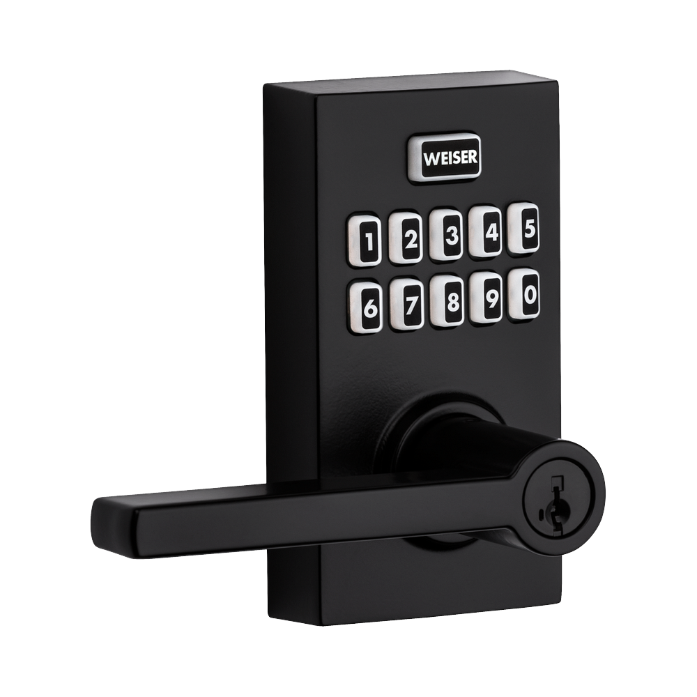 • Keyed lever operated by key outside or electronic keypad and thumb turn inside