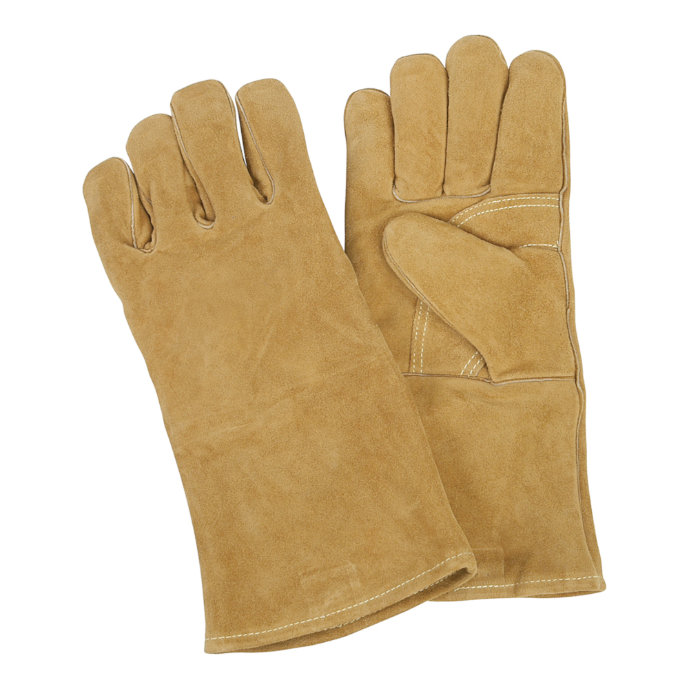 Flame retardant, air cushioned, sweat absorbent lining, Provides incomparable comfort and extra insulation, 14″ buck tan, heat resistant side split cowhide, Outside double palm and thumb extend wear life, Sewn with DuPont(R) Kevlar(R) thread for higher seam strength and seam flame resistance, Meets the EN 12477/09.2005 standard