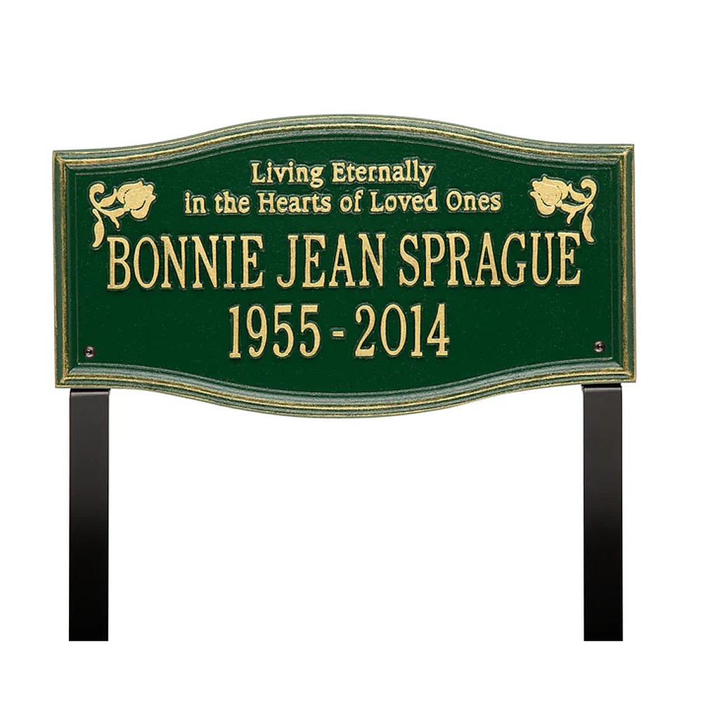 Dimensions (LxWxH): 17″ x 9.25″ x .375″ Honor, Remember, Cherish In moments of loss, finding a meaningful and lasting way to pay tribute to a loved one is essential. Whitehall Products presents the Alexandria Living eternally Plaque – a distinguished and enduring memorial to celebrate the life and legacy of your cherished one. Elegance in Design: Crafted with precision and care, our Alexandria plaque boasts a classic and timeless design. The refined details and exquisite craftsmanship make it a fitting tribute to commemorate the memories you hold dear. Durable Quality: Forged from high-quality materials, the Alexandria plaque is built to withstand the test of time. Its durability ensures that your memorial will endure, just like the love and memories it represents. Customizable Touch: Personalize your tribute with a choice of elegant finishes, ensuring that the plaque reflects the unique personality and spirit of your loved one. Add custom text, dates, and a thoughtful message to make it truly one-of-a-kind. Versatile Placement: Whether displayed in a garden, on a memorial wall, or near a cherished location, the Alexandria Living eternally Plaque seamlessly integrates into any setting. Its versatility allows you to create a special space that brings comfort and reflection. Weather-Resistant: Designed to withstand the elements, this plaque is weather-resistant, ensuring that your memorial remains pristine and beautiful through all seasons.