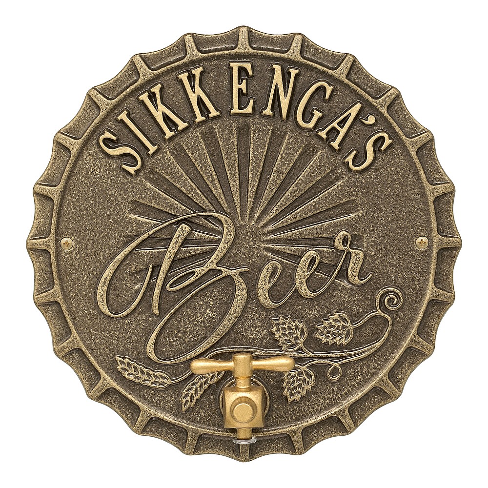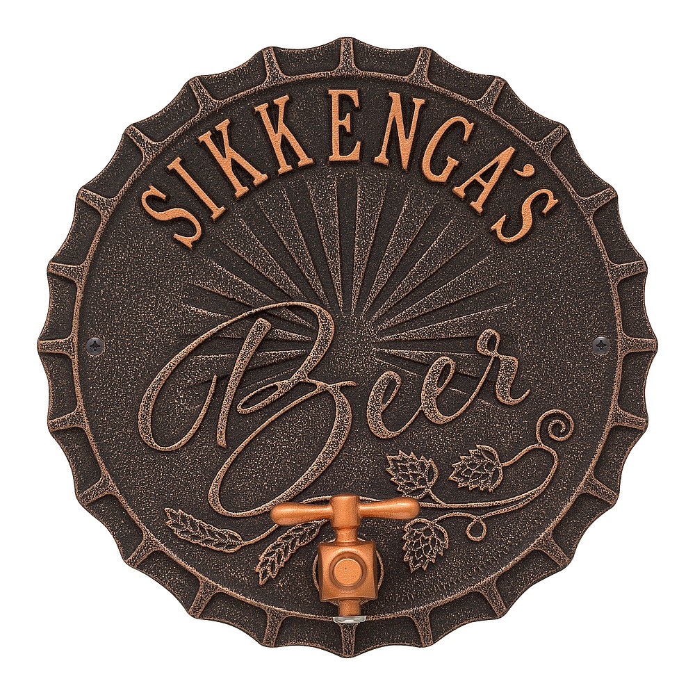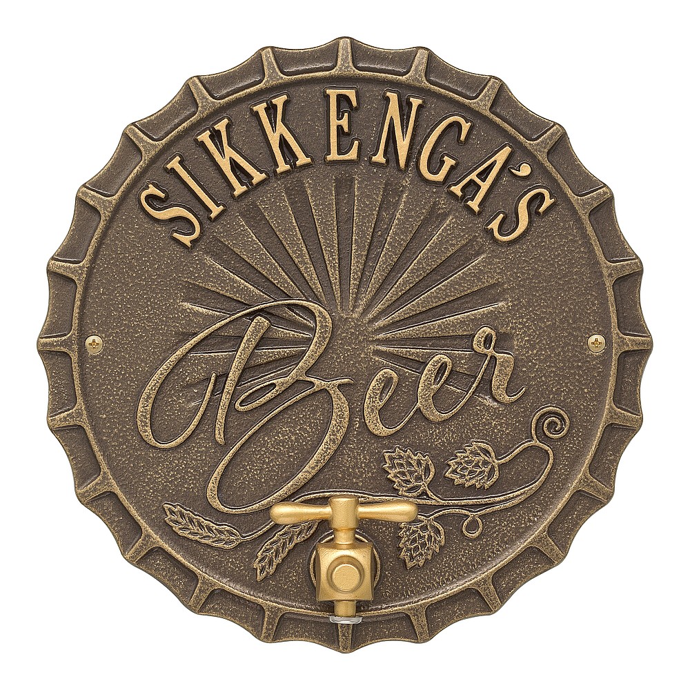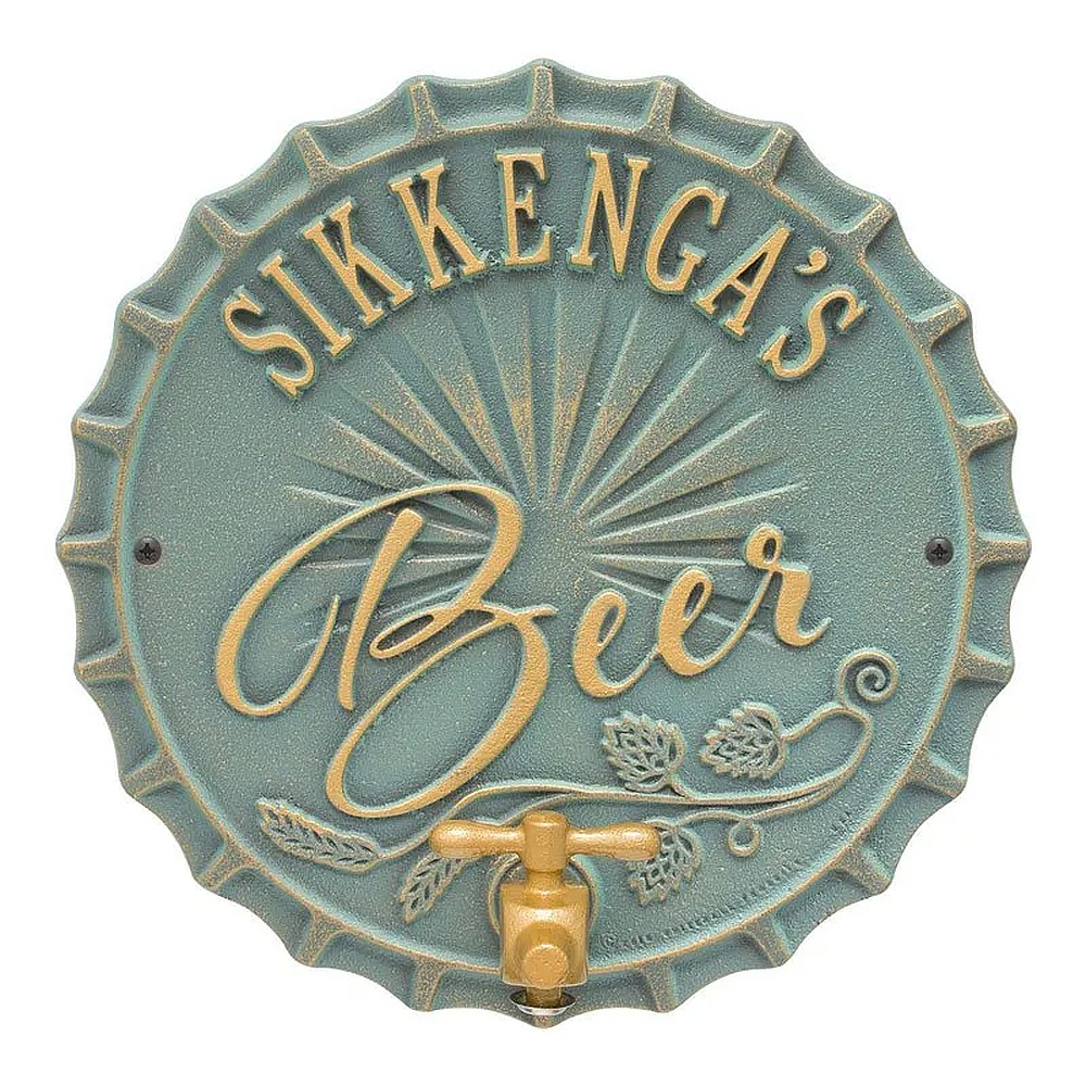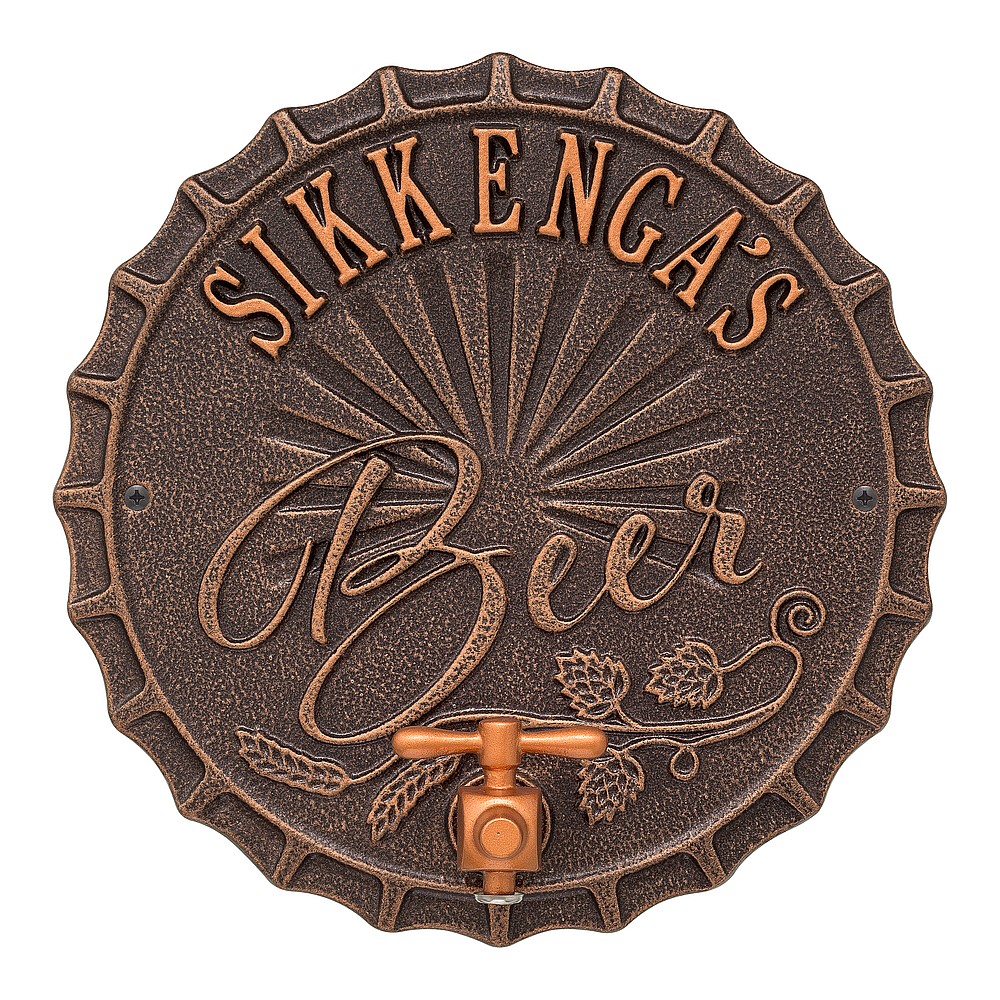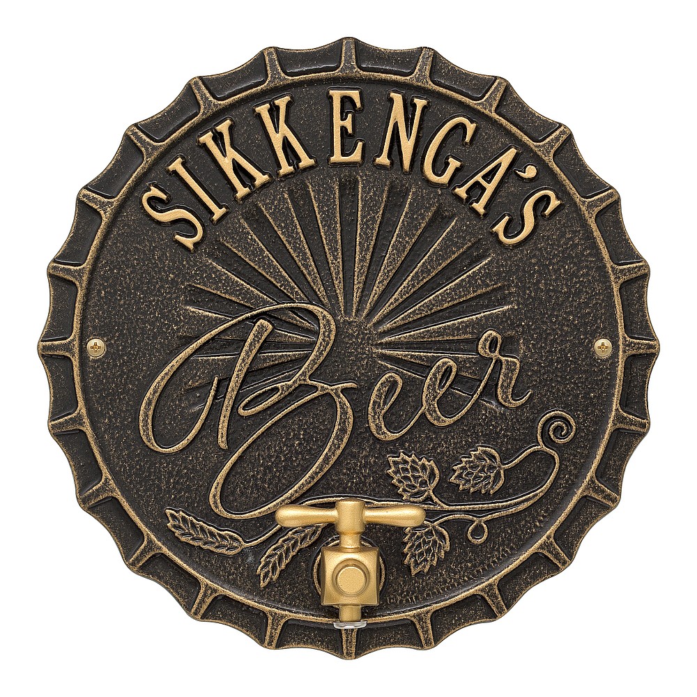 Dimensions (LxWxH): 11″ x 11″ x .35″ Cheers! The Bottle Cap Brew Pub Plaque is perfect for any home-brewer or craft beer aficionado. This handsome plaque creates a personalized touch in your private bar or man-cave. Crack open a cold one with the functional bottle opener on the tip of its tap. As the popularity of home brewing and home tap systems continues to rise, our bottle cap personalized bar sign is a great way to welcome your many guests. Handcrafted aluminum plaque for indoor or outdoor use. “Beer” is part of the design. Alumi-Shieldâ„¢ – Protects against the harshest weather and environmental elements. Extends the product life and maintains the look and function. Made in the USA.