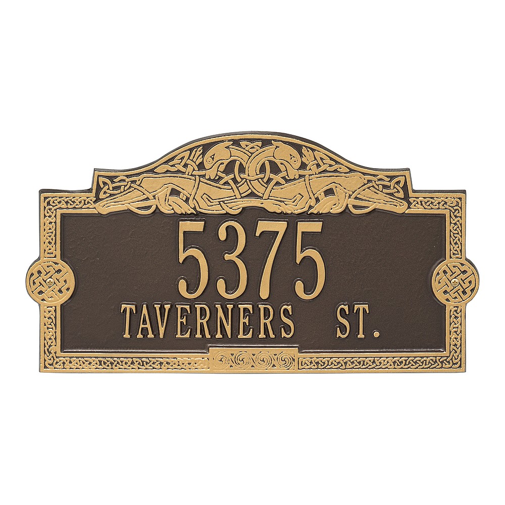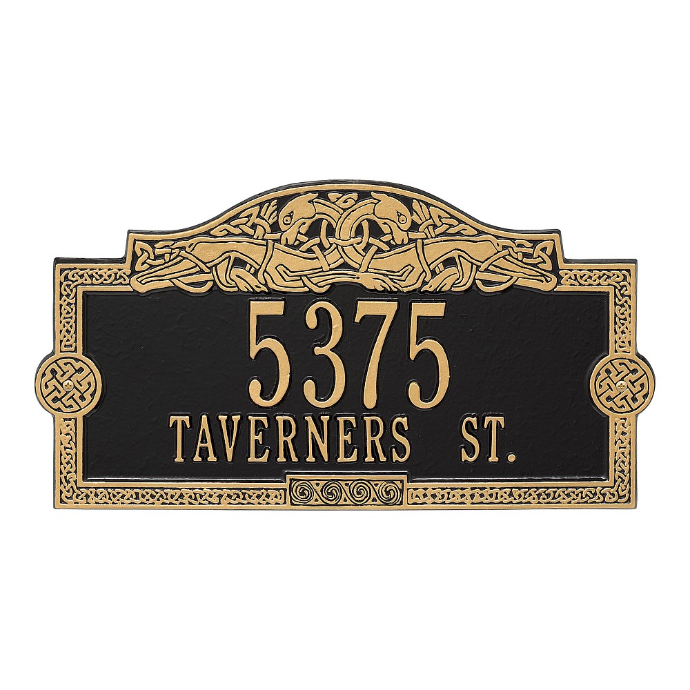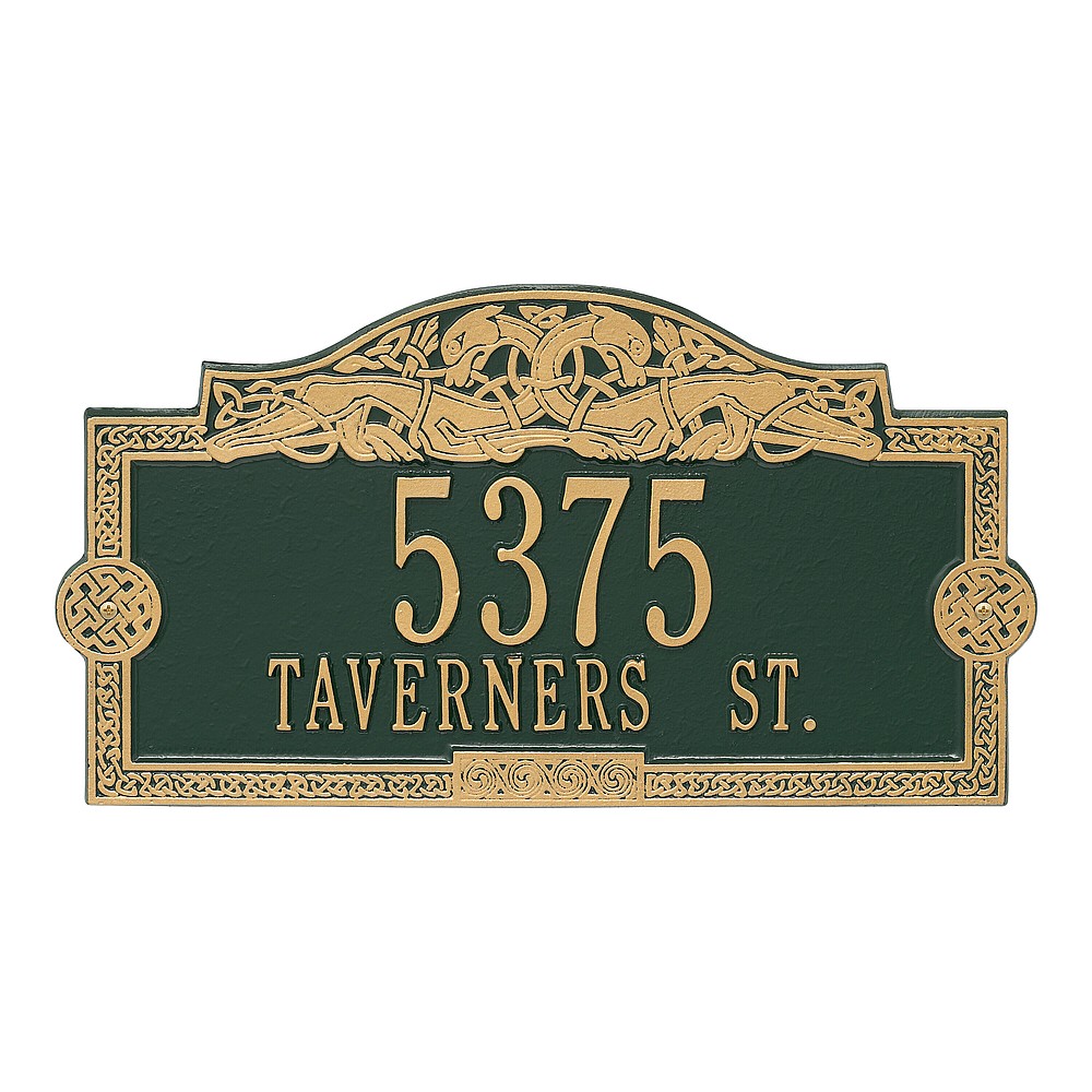 Dimensions (LxWxH): 17.25 x 9.25 The Celtic Dragon Plaque features two Celtic dragons. In Celtic lore, Dragons are protectors of Earth and all living things. The elegant Celtic knot border symbolizes the interconnection of all things and the continuous cycle of existence. Features a handmade, premium grade aluminum casting that showcases an intricate, detailed Irish design. Manufactured from cast, high-density aluminum alloy and protected by our exclusive Alumi-Shieldâ„¢ all weather coatings. Alumi-Shieldâ„¢ All Weather Coating: A Whitehall Exclusive Alumi-Shieldâ„¢ – Protects against the harshest weather and environmental elements. Extends the product life and maintains the look and function. Made in the USA.