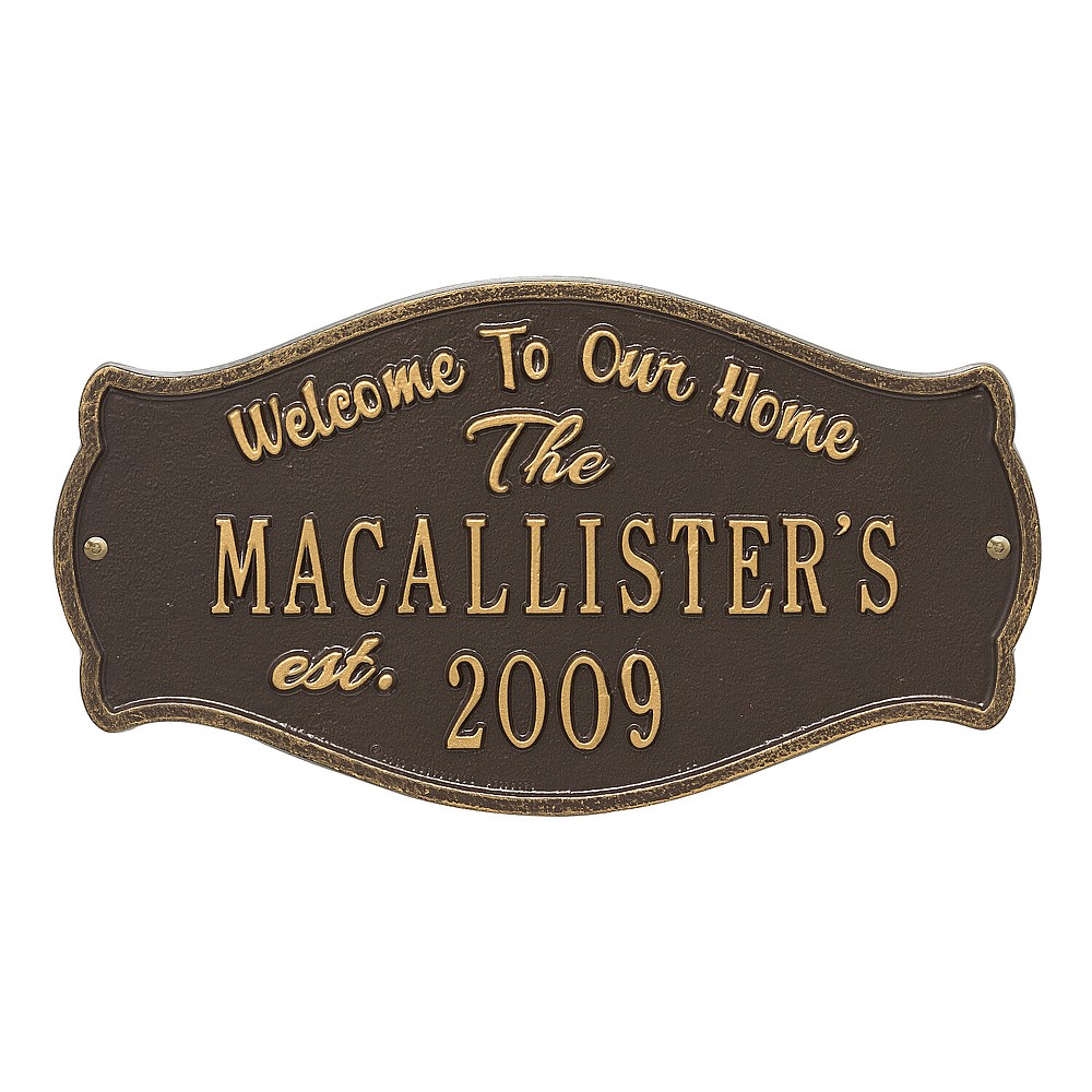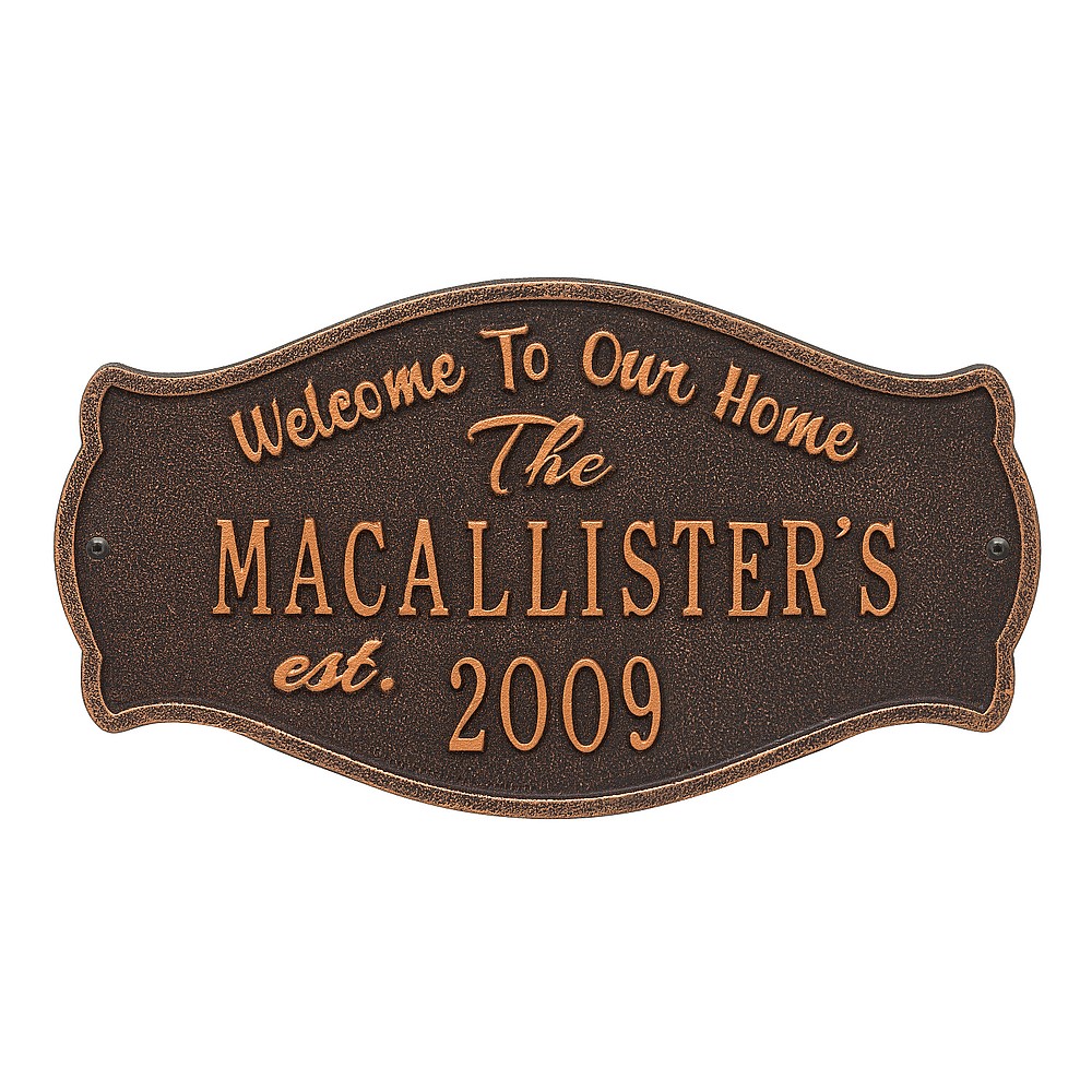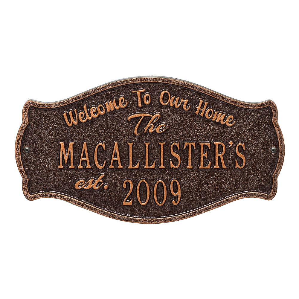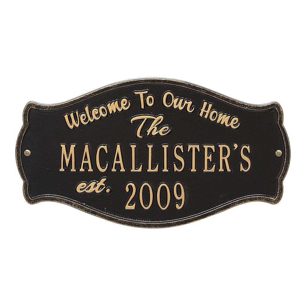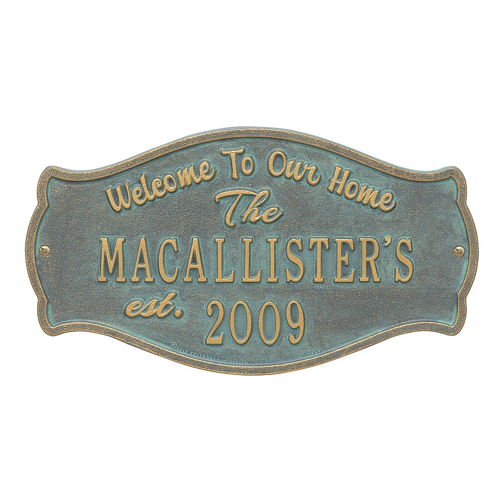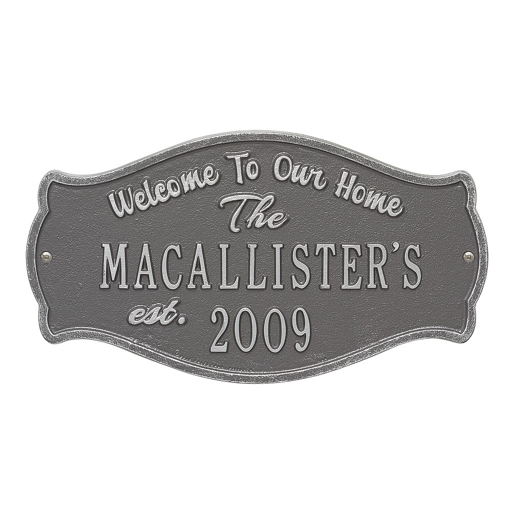Dimensions (LxWxH): 15.0″ x 8.5″ x 0.32″ Dimensions (LxWxH): 15.0″ x 8.5″ x 0.32″ Welcome guests to your home with this unique and elegantly simple sign that displays your family’s special date. This plaque makes the perfect wedding, anniversary or housewarming gift. A Personalized plaque is a perfect gift to commemorate all of life’s celebrations. Makes a great personalized wedding, anniversary, or house warming gift. Handcrafted aluminum plaque for indoor or outdoor use. The words “Welcome to our home” and “the” and “est.” are a permanent part of the design. Alumi-Shieldâ„¢ – Protects against the harshest weather and environmental elements. Extends the product life and maintains the look and function. Made in the USA. A Personalized plaque is a perfect gift to commemorate all of life’s celebrations. Makes a great personalized wedding, anniversary, or house warming gift. Handcrafted aluminum plaque for indoor or outdoor use. The words “Welcome to our home” and “the” and “est.” are a permanent part of the design. Alumi-Shieldâ„¢ – Protects against the harshest weather and environmental elements. Extends the product life and maintains the look and function. Made in the USA.