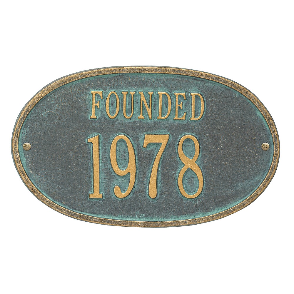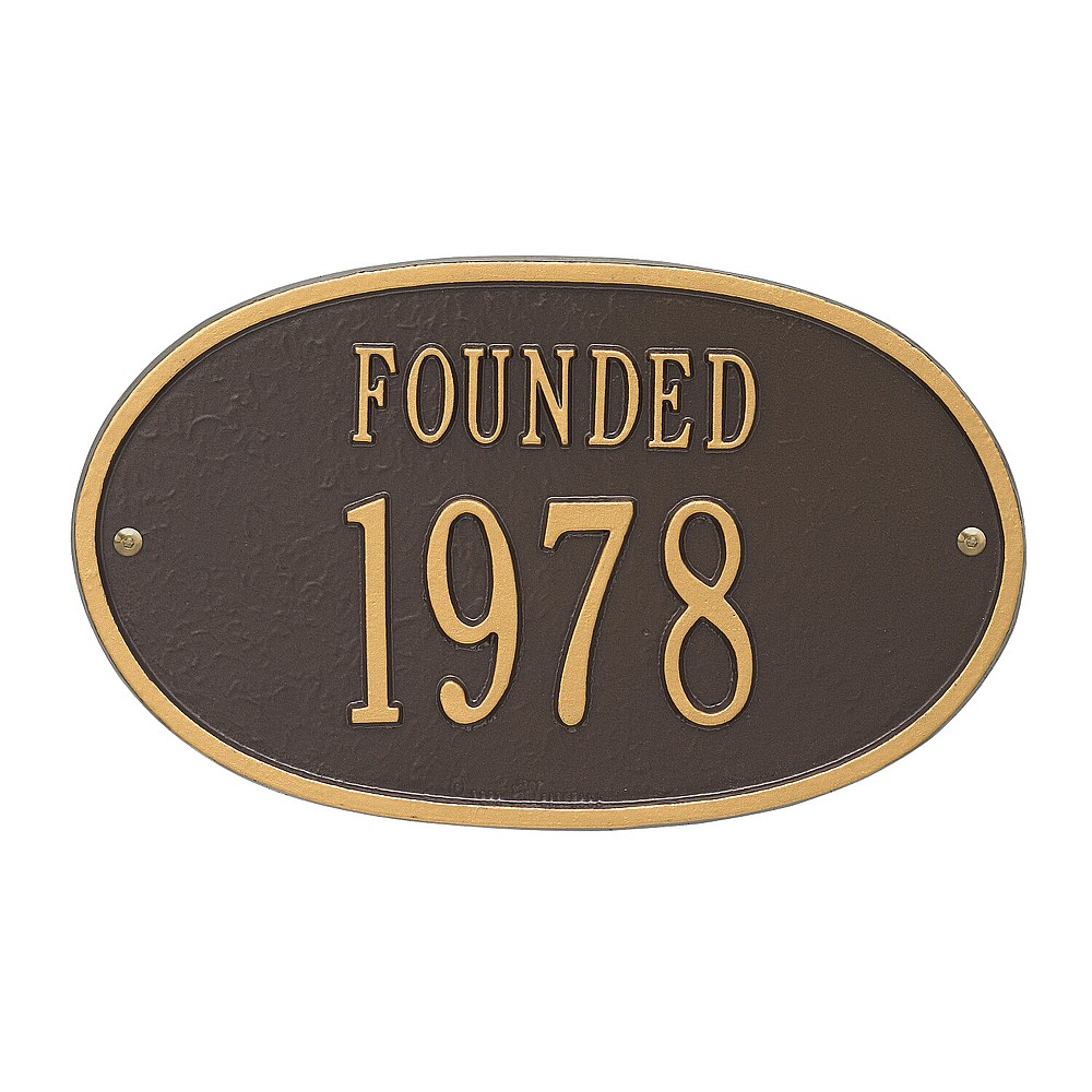 Dimensions (LxWxH): 12.5″ x 7.5″ x .25″ Dimensions (LxWxH): 12.5″ x 7.5″ x .25″ This personalized plaque is a unique and memorable way to commemorate an important date. A Personalized plaque is a perfect gift to commemorate all of life’s celebrations. Makes a great personalized wedding, anniversary, or house warming gift. Handcrafted aluminum plaque for indoor or outdoor use. The word “founded” is a permanent part of the design. Alumi-Shieldâ„¢ – Protects against the harshest weather and environmental elements. Extends the product life and maintains the look and function. Made in the USA. A Personalized plaque is a perfect gift to commemorate all of life’s celebrations. Makes a great personalized wedding, anniversary, or house warming gift. Handcrafted aluminum plaque for indoor or outdoor use. The word “founded” is a permanent part of the design. Alumi-Shieldâ„¢ – Protects against the harshest weather and environmental elements. Extends the product life and maintains the look and function. Made in the USA.