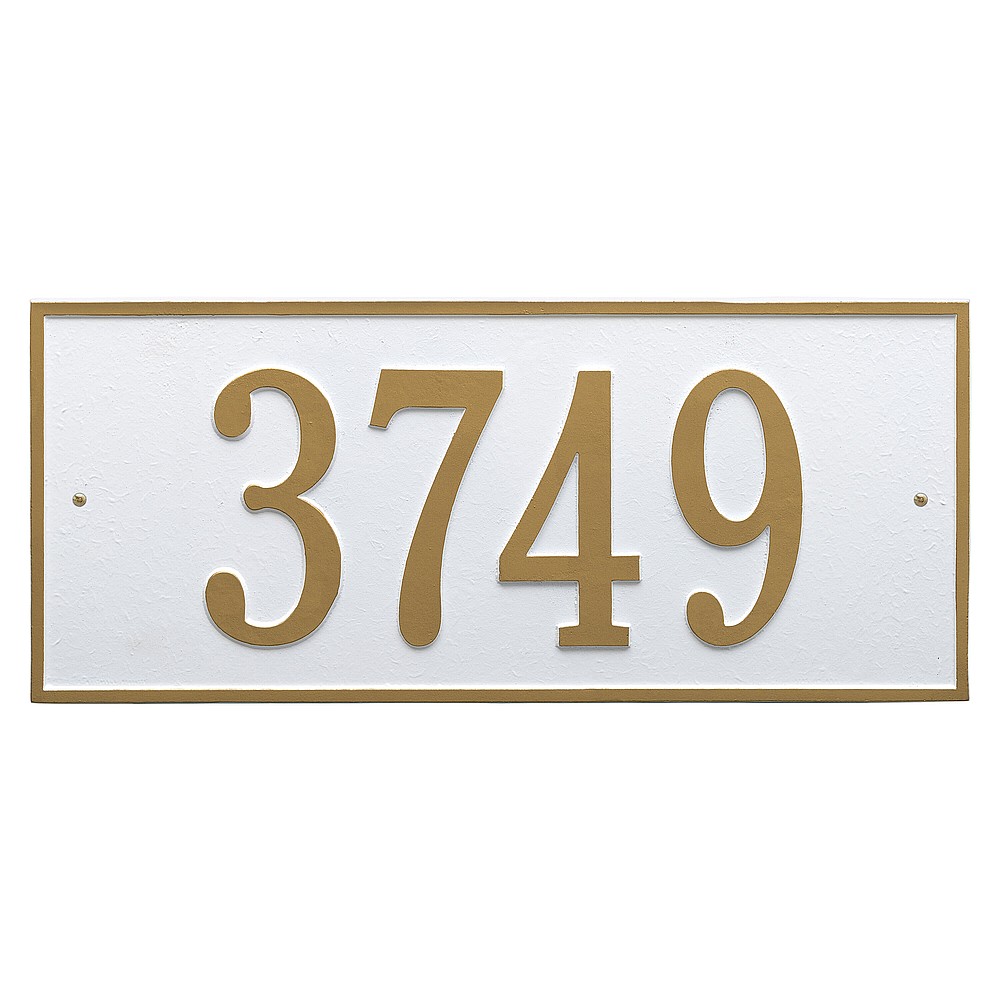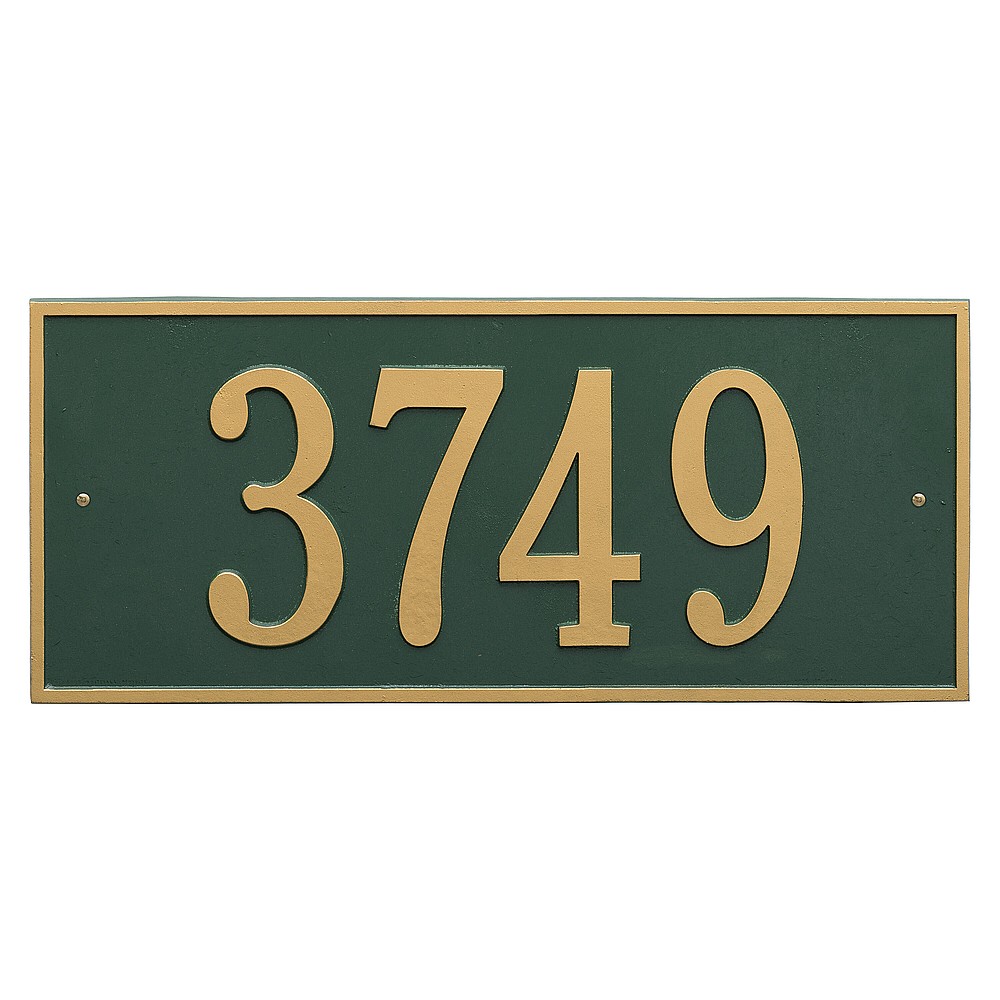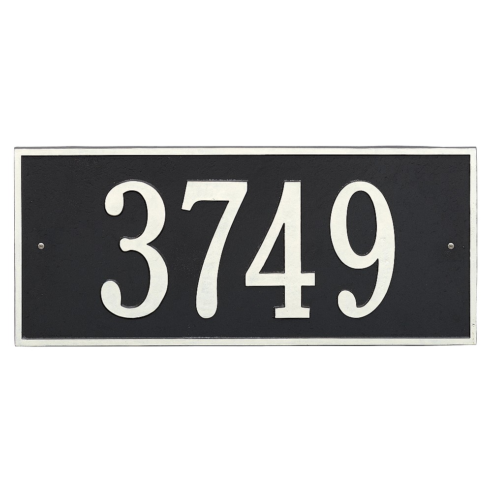 5 – 7″ numbers A classic rectangle house number sign, the Hartford will provide a nice upgrade to the curb appeal of your home. Home address plaques also make great gifts for any special occasion Made in the USA Cast from recycled aluminum – will not rust. Alumi-Shield™ All Weather Coatings: A Whitehall Exclusive Enhances curb appeal while adding value to your home Personalization is permanently cast into the sign