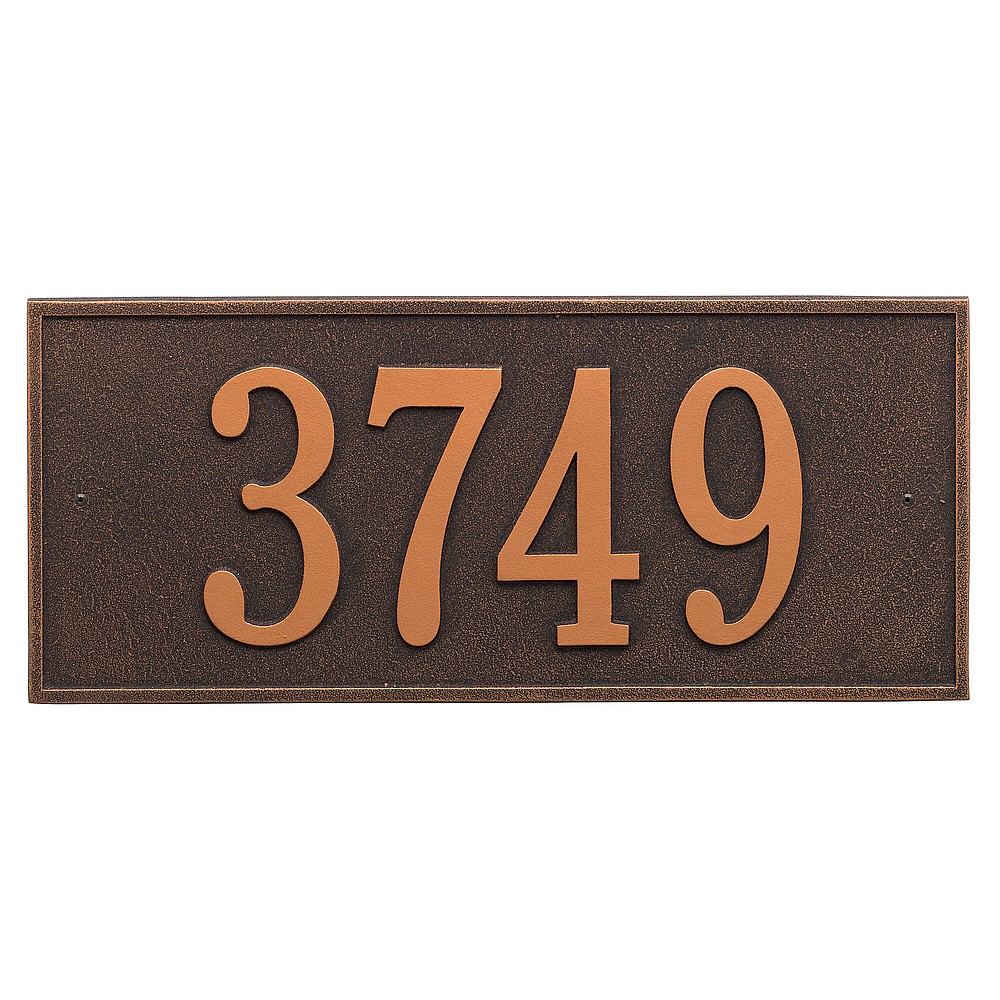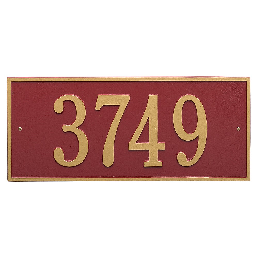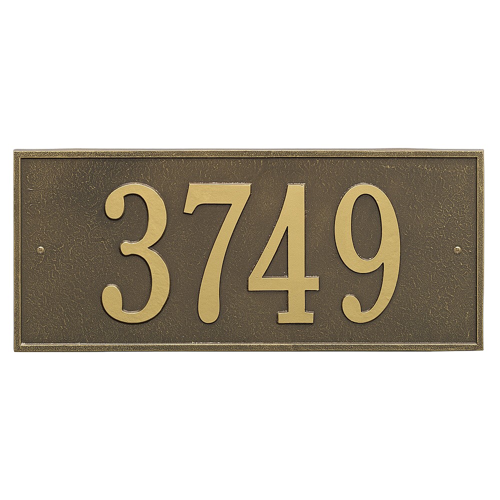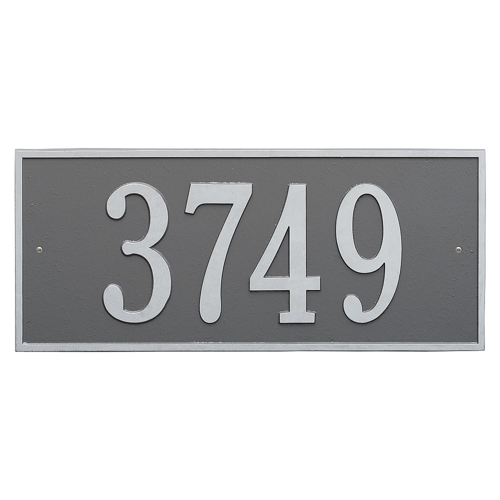 5 – 7″ numbers A classic rectangle house number sign, the Hartford will provide a nice upgrade to the curb appeal of your home. Home address plaques also make great gifts for any special occasion Made in the USA Cast from recycled aluminum – will not rust. Alumi-Shield™ All Weather Coatings: A Whitehall Exclusive Enhances curb appeal while adding value to your home Personalization is permanently cast into the sign