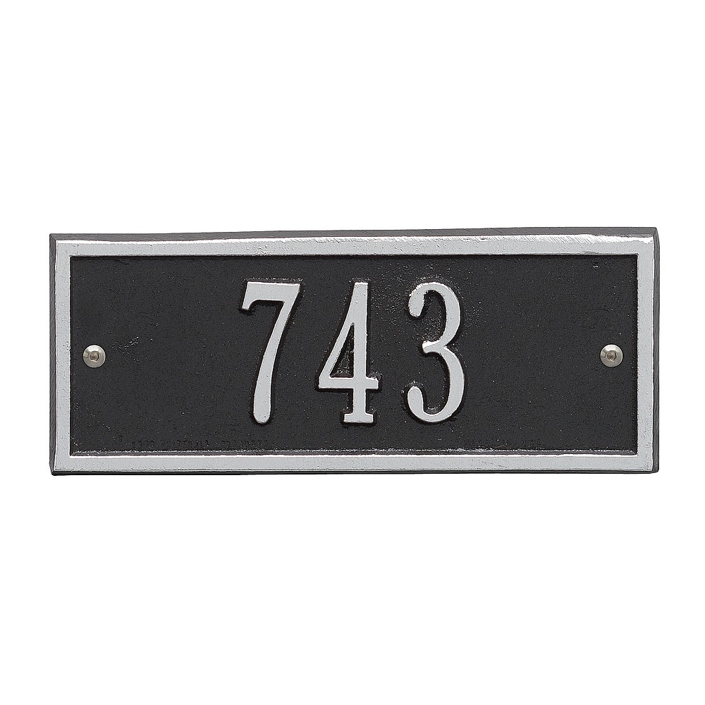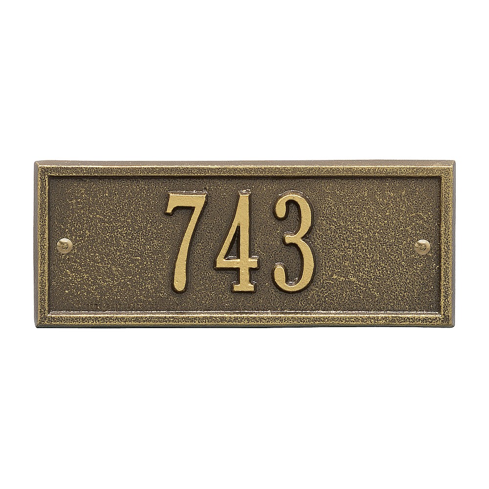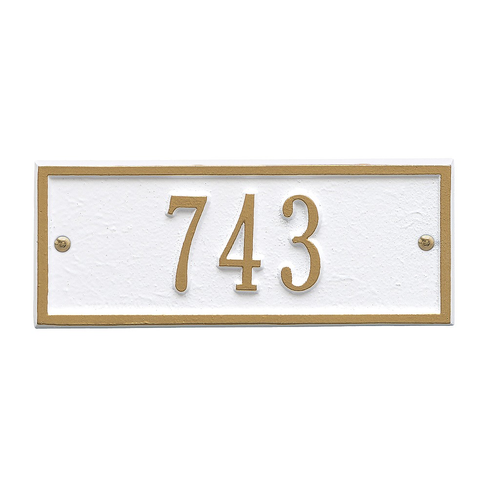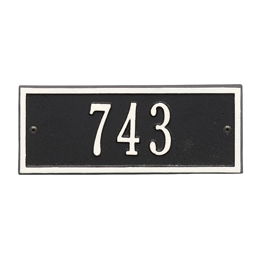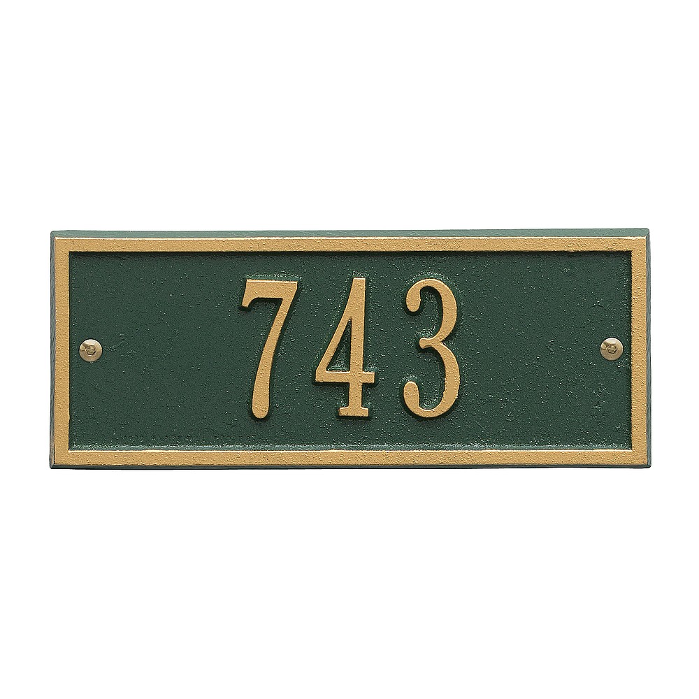 5 – 2″ characters A classic rectangle house number sign, the Hartford will provide a nice upgrade to the curb appeal of your home. Home address plaques also make great gifts for any special occasion Made in the USA Cast from recycled aluminum – will not rust. Alumi-Shield™ All Weather Coatings: A Whitehall Exclusive Enhances curb appeal while adding value to your home Personalization is permanently cast into the sign