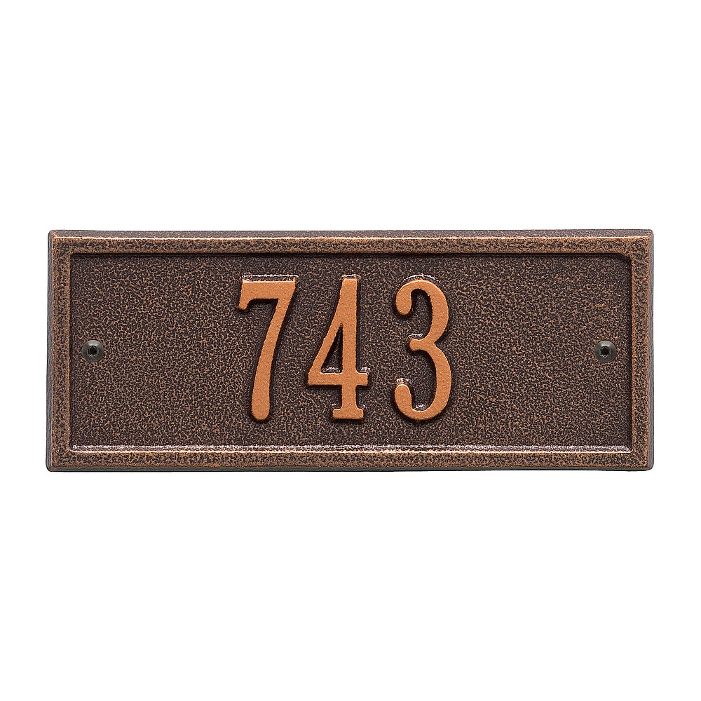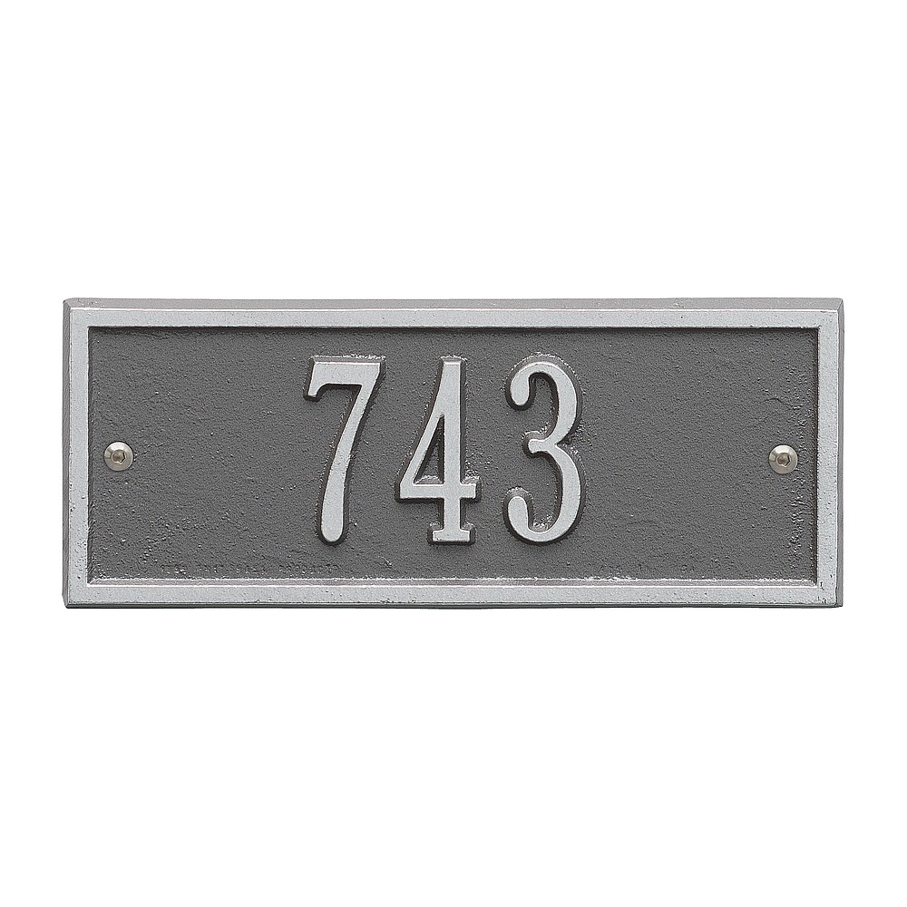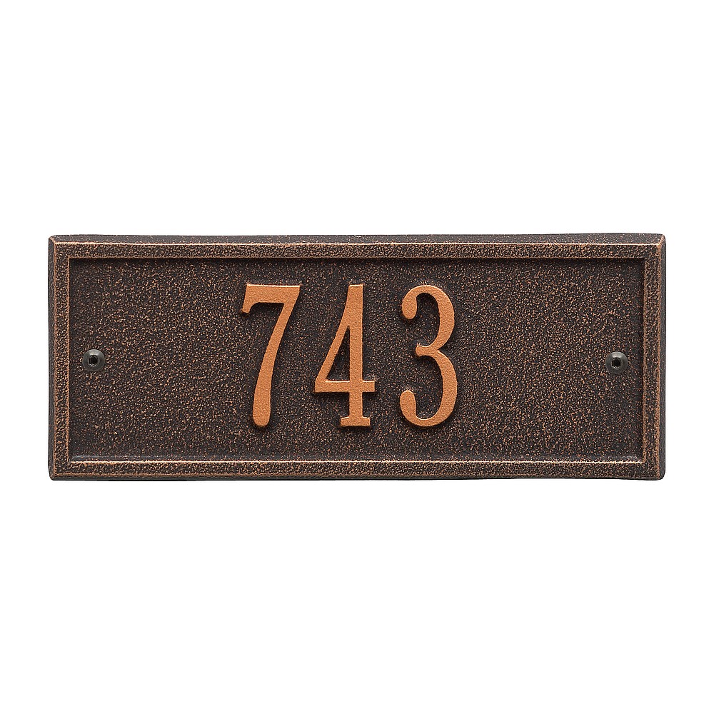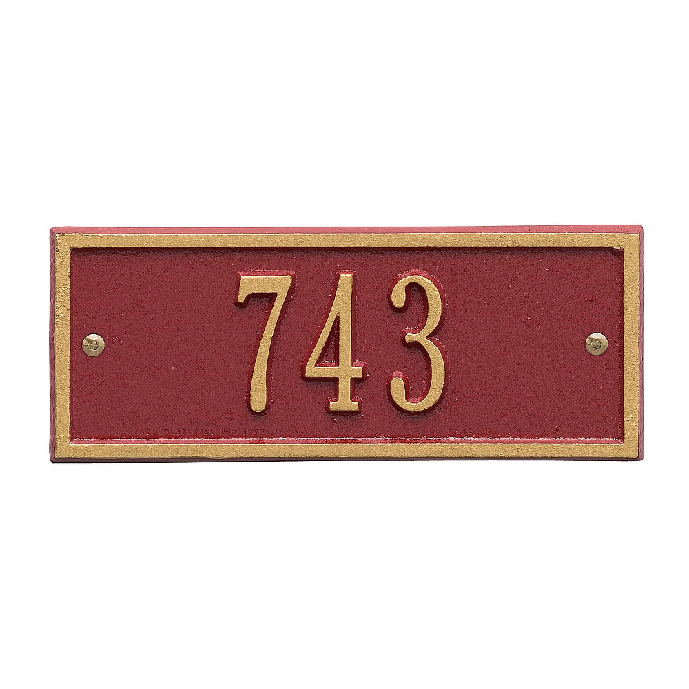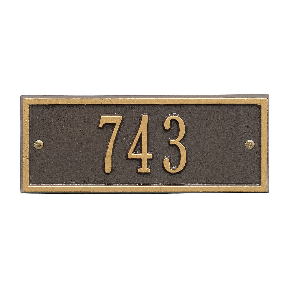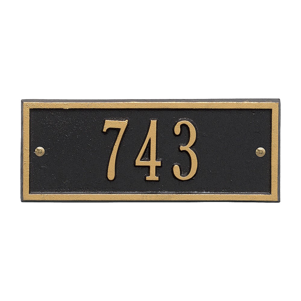 5 – 2″ characters A classic rectangle house number sign, the Hartford will provide a nice upgrade to the curb appeal of your home. Home address plaques also make great gifts for any special occasion Made in the USA Cast from recycled aluminum – will not rust. Alumi-Shield™ All Weather Coatings: A Whitehall Exclusive Enhances curb appeal while adding value to your home Personalization is permanently cast into the sign