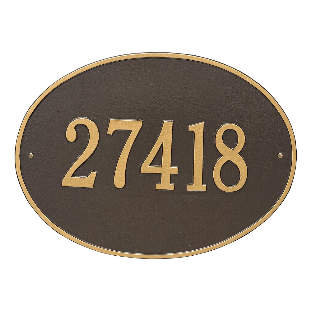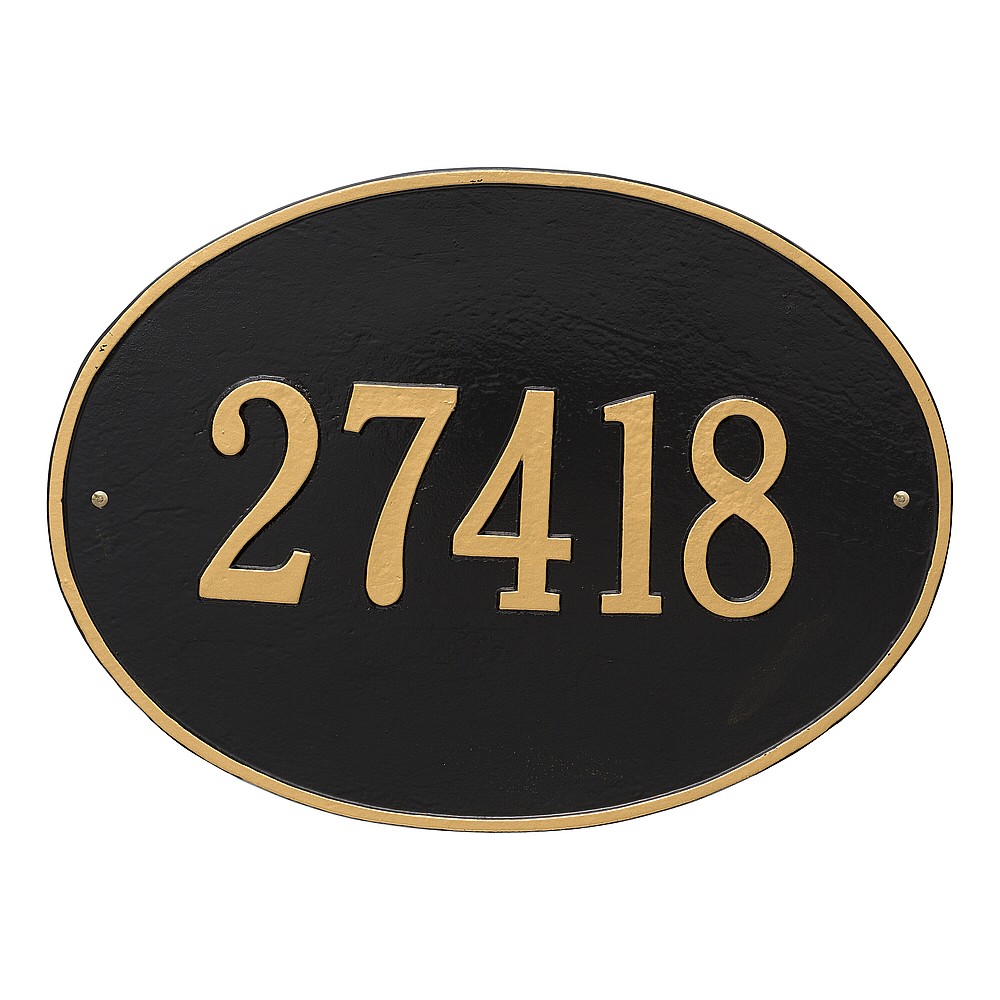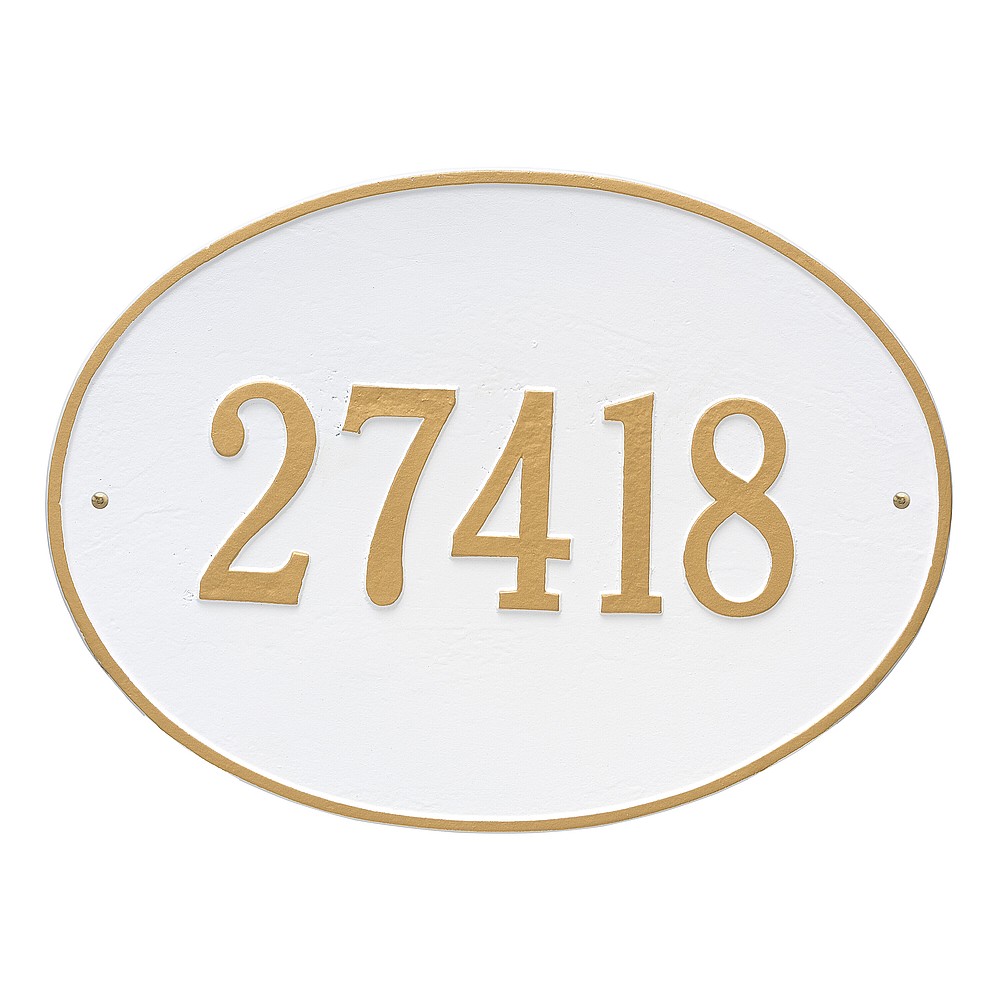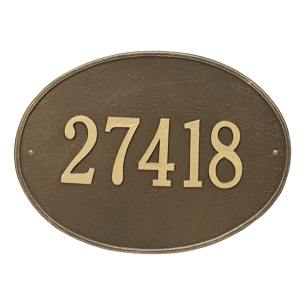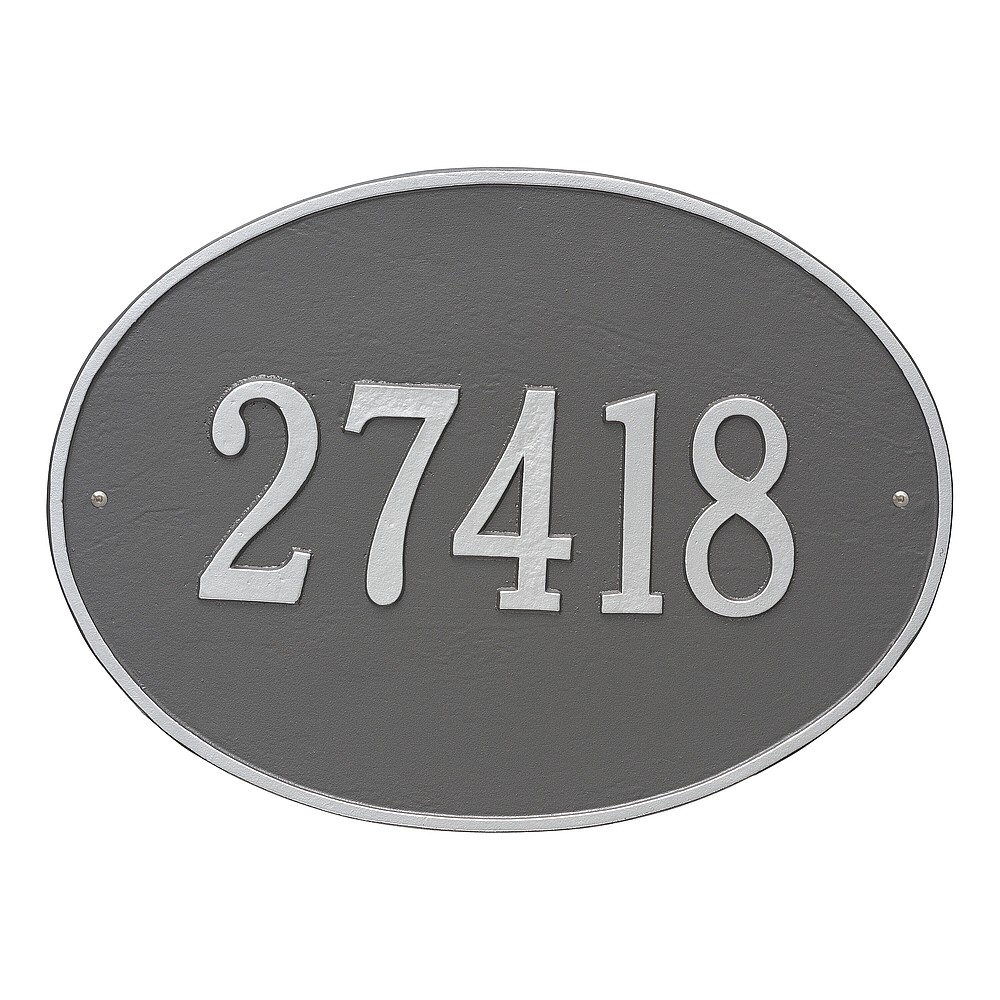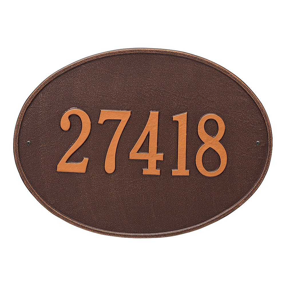 4 – 7″ numbers or 5 – 4.5″ numbers The classic oval design of our Hawthorne Address Plaques makes it ideal for most any home’s exterior. Available in a variety of finish colors to accommodate your outdoor color scheme. Made in the USA Cast from recycled aluminum – will not rust. Alumi-Shield™ All Weather Coatings: A Whitehall Exclusive Enhances curb appeal while adding value to your home Personalization is permanently cast into the sign