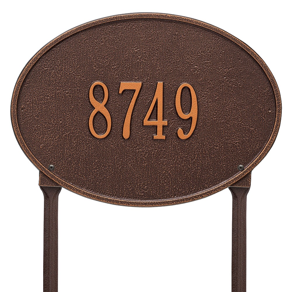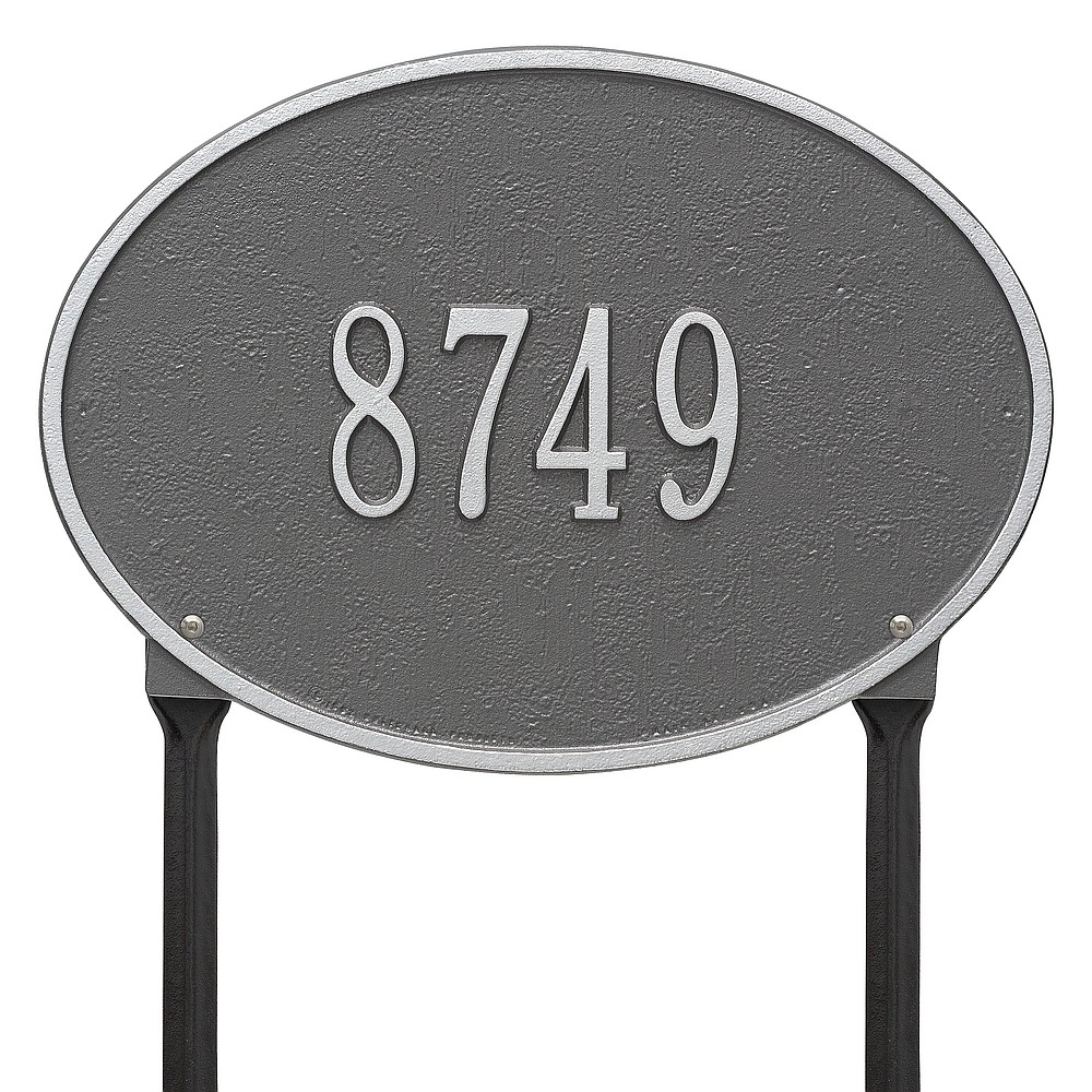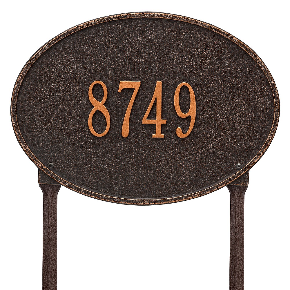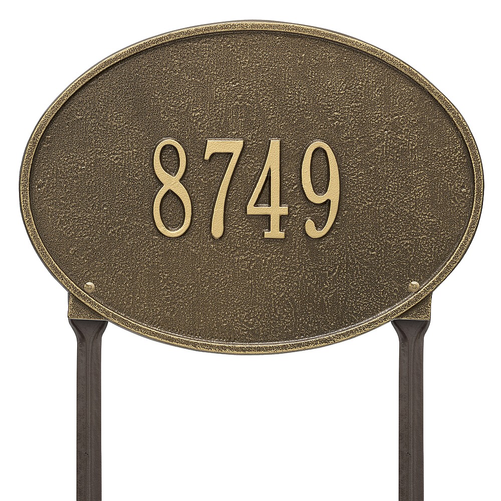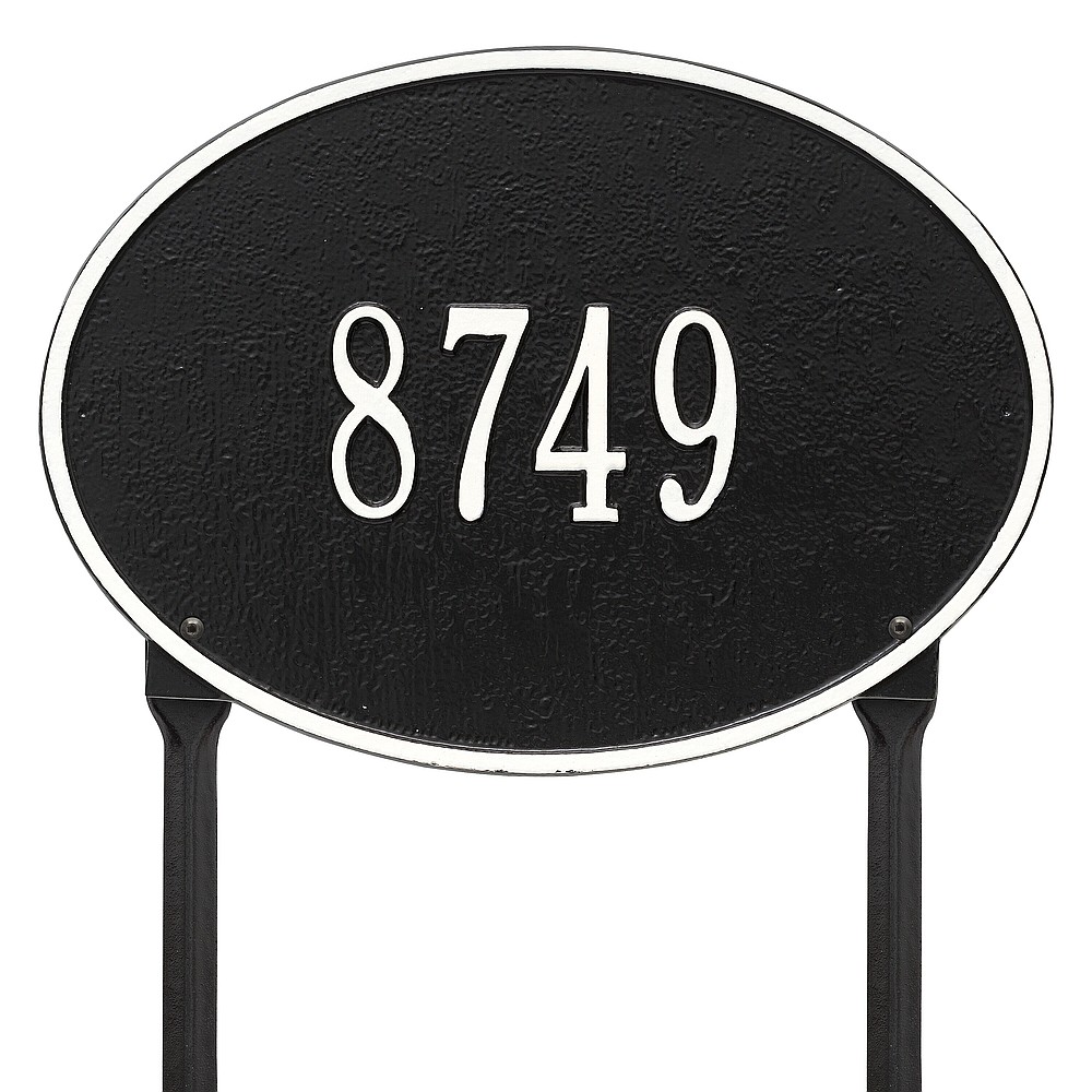 5 – 3″ characters The classic oval design of our Hawthorne Address Plaques makes it ideal for most any home’s exterior. Available in a variety of finish colors to accommodate your outdoor color scheme. Made in the USA Cast from recycled aluminum – will not rust. Alumi-Shield™ All Weather Coatings: A Whitehall Exclusive Enhances curb appeal while adding value to your home Personalization is permanently cast into the sign