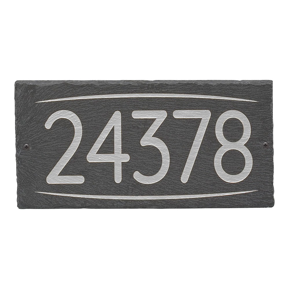Assembled Product Dimensions – excluding stakes (LxWxH): 11.75″ x 6″ x 0.375″ Discover a sophisticated way to personalize your home with the Whitehall Products Lainey Personalized Etched Slate Wall Sign. Crafted from high-quality slate and designed with a touch of timeless elegance, this wall sign is the perfect addition to any setting, adding charm and unique character to your property. Whether you need a sign for your front porch, garden, or business, the Lainey Slate Wall Sign is sure to make a lasting impression. Customized Personalization: Make your mark with personalized text on this slate wall sign. Whether it’s your family name, house number, business name, or a special message, you have the freedom to create a sign that reflects your style. Durable Slate Construction: Made from natural slate, this wall sign is built to withstand the elements. Rain, snow, or sunshine, your personalized details remain sharp and vivid. Stylish Design: The Lainey Slate Wall Sign features a sleek and contemporary design with beautifully etched lettering. It’s a versatile piece that complements a wide range of decor styles. Easy Installation: The sign comes with all necessary mounting hardware, making installation a breeze. Whether you’re a DIY enthusiast or prefer professional installation, you’ll have your sign up in no time Low Maintenance: Slate is not only durable but also low-maintenance. The sign resists fading, cracking, and chipping, so you can enjoy its beauty without constant upkeep. A unique personalized gift for housewarming, wedding, anniversary or any special occasion.