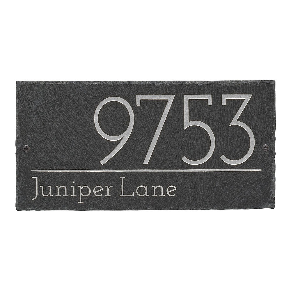 Assembled Product Dimensions – excluding stakes (LxWxH): 11.75″ x 6″ x 0.375″ Introduce a sophisticated and durable addition to your home’s exterior or business with the Whitehall Products Leighton 1-Line Personalized Etched Slate Wall Sign. Crafted from premium slate and designed for customization, this sign allows you to make a bold yet elegant statement. Whether it’s for your front entrance, office, or garden area, the Leighton Slate Wall Sign is sure to enhance your space with a touch of refined style. Elegant Design: The Leighton Slate Wall Sign combines a minimalist aesthetic with etched lettering, creating a design that complements a wide range of architectural styles from traditional to contemporary. Durable Slate Construction: Made from natural slate, this wall sign is built to withstand the elements. Rain, snow, or sunshine, your personalized details remain sharp and vivid. Enhance Curb Appeal: A personalized slate sign is an excellent way to elevate your home’s curb appeal or make your business more recognizable. It’s a simple yet effective way to leave a lasting impression on visitors and customers. Easy Installation: The sign comes with all necessary mounting hardware, making installation a breeze. Whether you’re a DIY enthusiast or prefer professional installation, you’ll have your sign up in no time Low Maintenance: Slate is not only durable but also low-maintenance. The sign resists fading, cracking, and chipping, so you can enjoy its beauty without constant upkeep. A unique personalized gift for housewarming, wedding, anniversary or any special occasion.