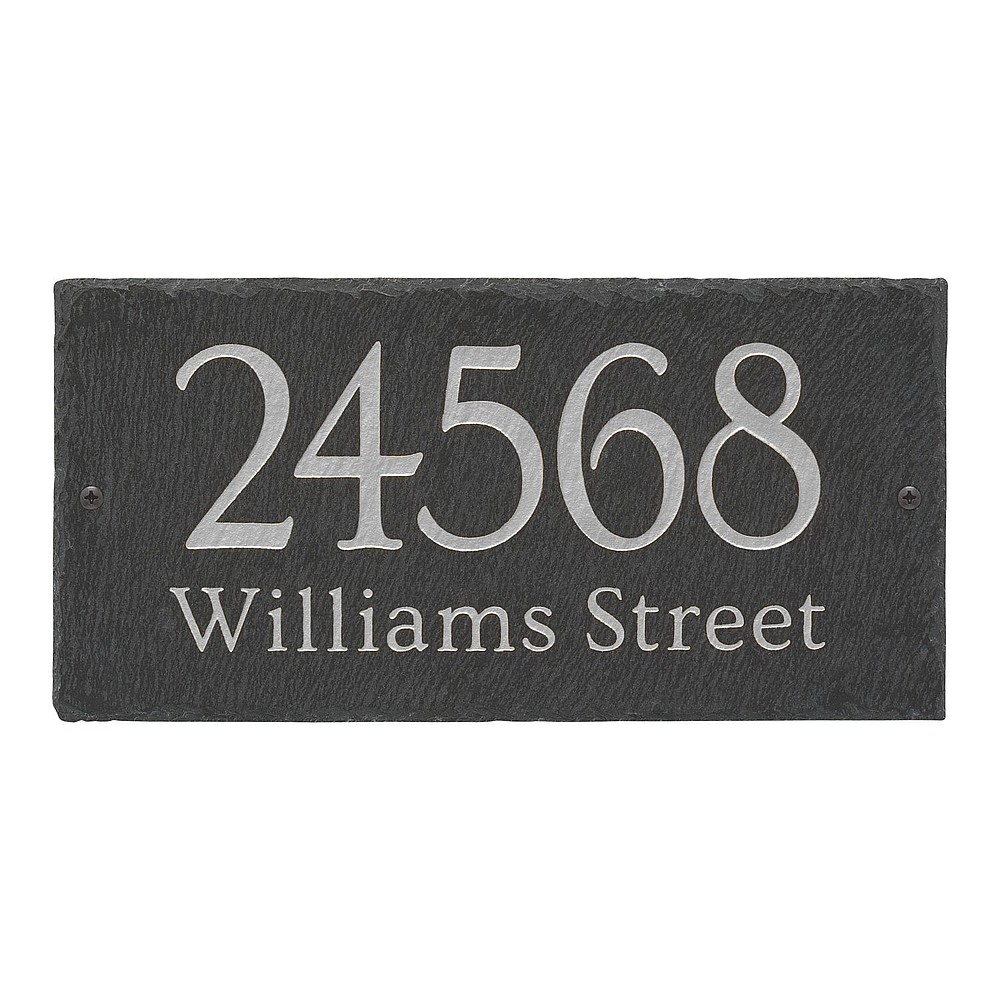Assembled Product Dimensions – excluding stakes (LxWxH): 11.75″ x 6″ x 0.375″ Introduce a touch of sophistication to your home or business with the Whitehall Products Lianne 2-Line Personalized Etched Slate Sign. Expertly crafted from premium slate, this sign offers two lines of customization, allowing you to create a distinctive feature that stands out in any setting. With its classic design and long-lasting durability, the Lianne Slate Sign is the perfect choice for those who want to add a personalized and elegant touch to their space. Elegant Design: The Lianne Slate Sign features a timeless design with expertly etched lettering. Its minimalist aesthetic complements various architectural styles, from traditional to modern. Versatile Placement: This sign is ideal for both indoor and outdoor use. Whether you install it at your home’s entrance, on a garden wall, or at your business, it adds a touch of refinement and personalization. Built to Endure: Crafted from premium-quality slate, our wall sign is built to withstand the elements with ease. Its durable material and weather-resistant properties ensure that your personalized message remains vibrant and intact, year after year, regardless of outdoor conditions. Easy Installation: The sign comes with all necessary mounting hardware, making installation a breeze. Whether you’re a DIY enthusiast or prefer professional installation, you’ll have your sign up in no time Low Maintenance: Slate is not only durable but also low-maintenance. The sign resists fading, cracking, and chipping, so you can enjoy its beauty without constant upkeep. A unique personalized gift for housewarming, wedding, anniversary or any special occasion.