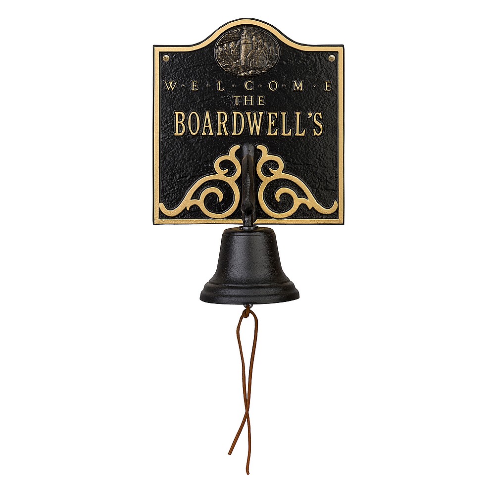 Dimensions (LxWxH): 10.5″ x 11.5″ x 8″ Dimensions (LxWxH): 10.5″ x 11.5″ x 8″ This unique Anchor and Rope Bell personalized plaque is a great way to weclome guests to your home. A Personalized plaque is a perfect gift to commemorate all of life’s celebrations. Makes a great personalized wedding, anniversary, or house warming gift. Handcrafted aluminum plaque for indoor or outdoor use. The words “welcome” and “the” are a permanent part of the design. Alumi-Shieldâ„¢ – Protects against the harshest weather and environmental elements. Extends the product life and maintains the look and function. Made in the USA. A Personalized plaque is a perfect gift to commemorate all of life’s celebrations. Makes a great personalized wedding, anniversary, or house warming gift. Handcrafted aluminum plaque for indoor or outdoor use. The words “welcome” and “the” are a permanent part of the design. Alumi-Shieldâ„¢ – Protects against the harshest weather and environmental elements. Extends the product life and maintains the look and function. Made in the USA.