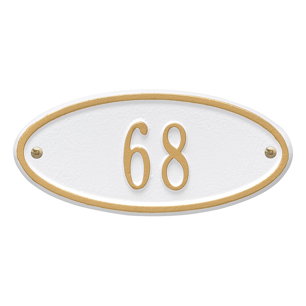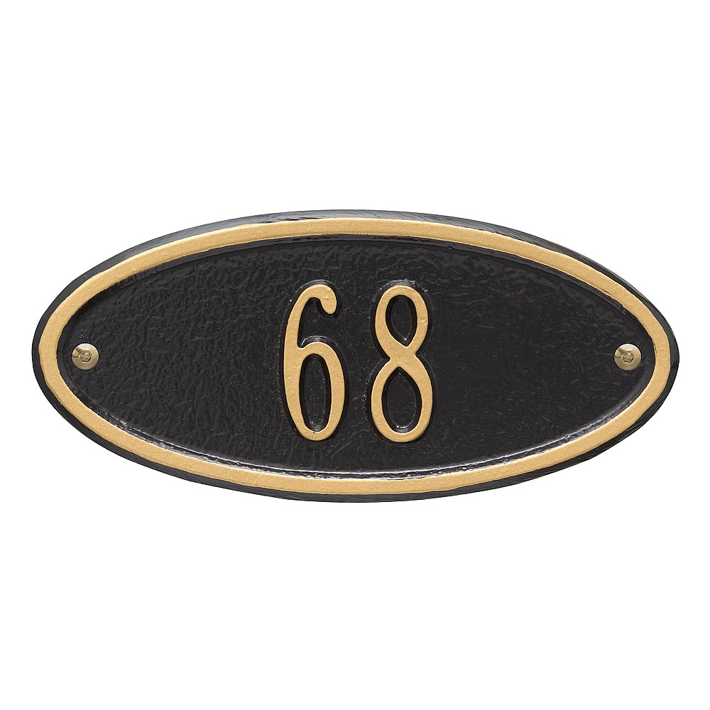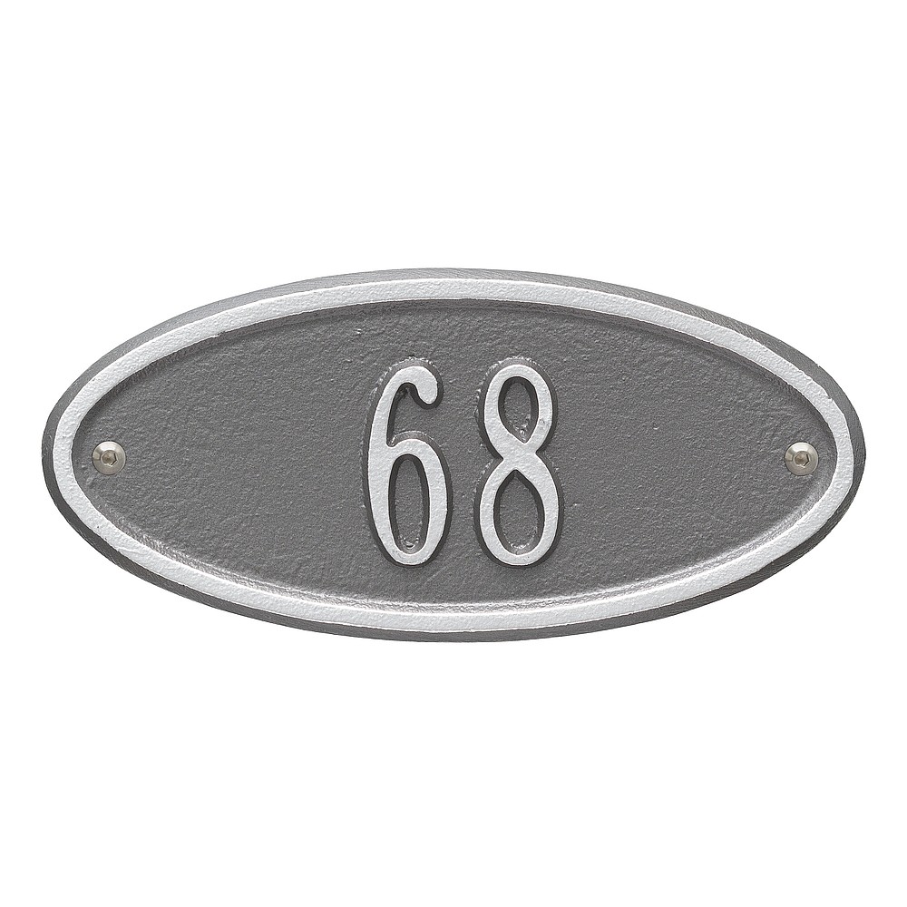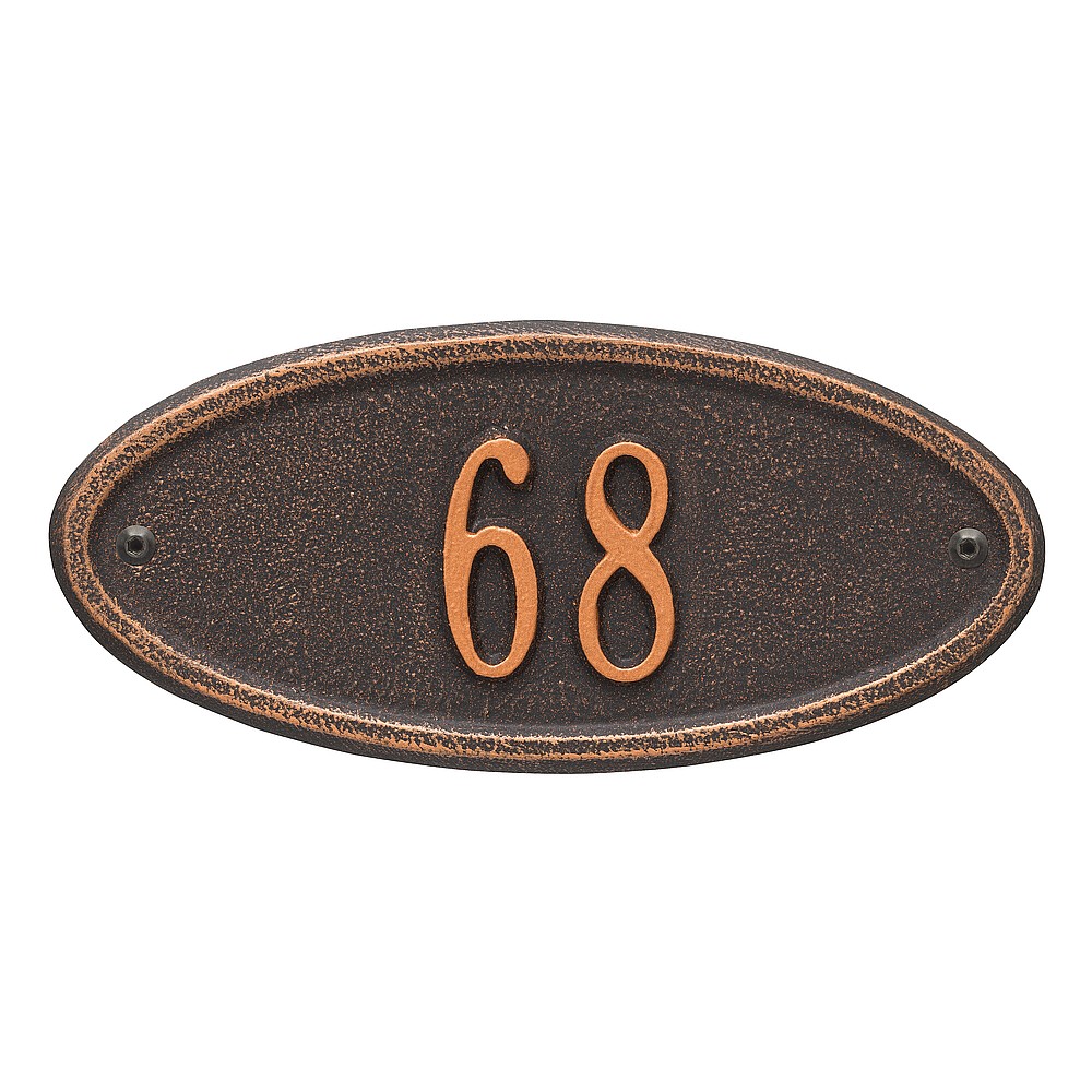 5 – 2″ characters The classic oval design of our Madison Address Plaques makes it ideal for most any home’s exterior. Available in a variety of finish colors to accommodate your outdoor color scheme. Made in the USA Cast from recycled aluminum – will not rust. Alumi-Shield™ All Weather Coatings: A Whitehall Exclusive Enhances curb appeal while adding value to your home Personalization is permanently cast into the sign