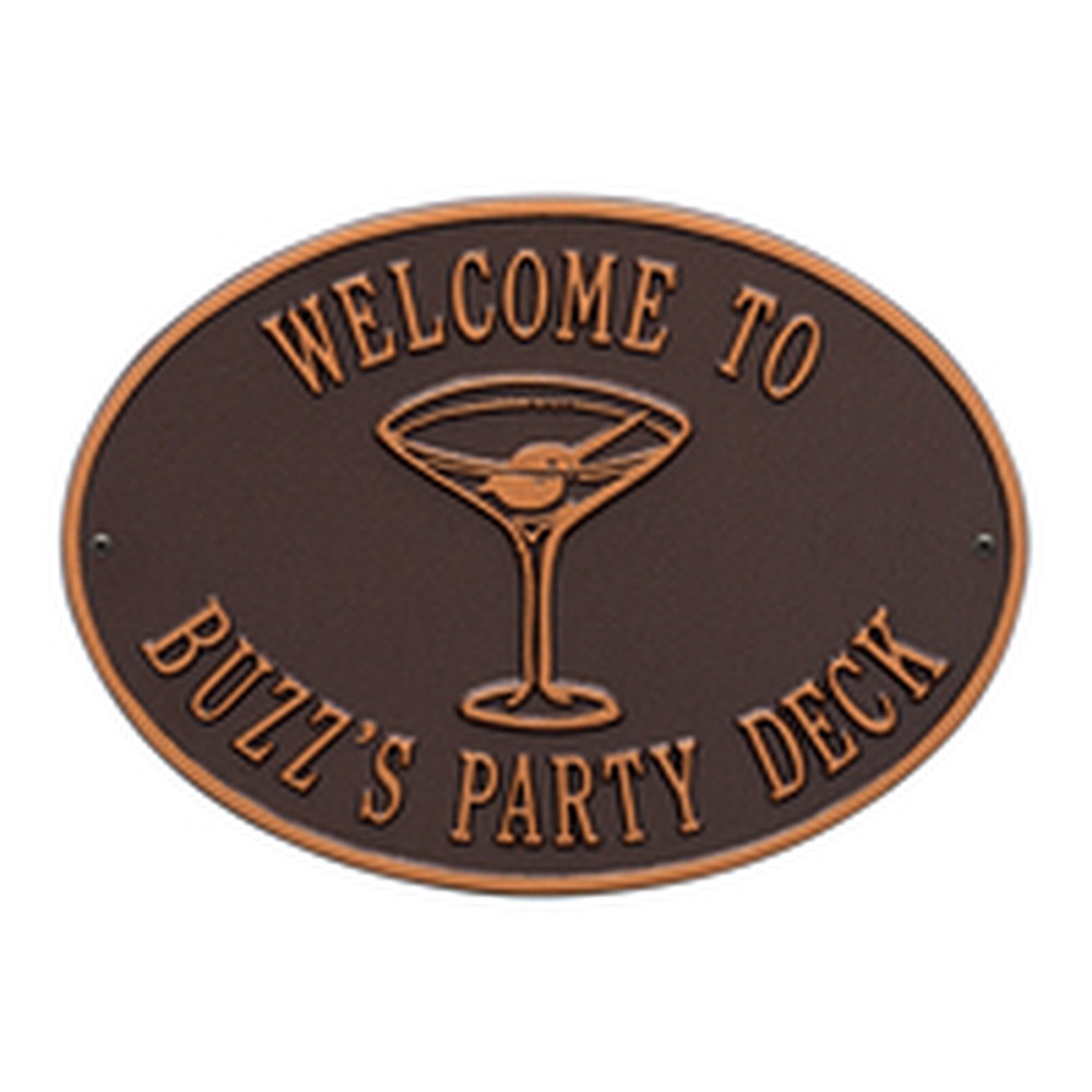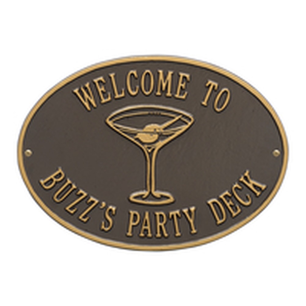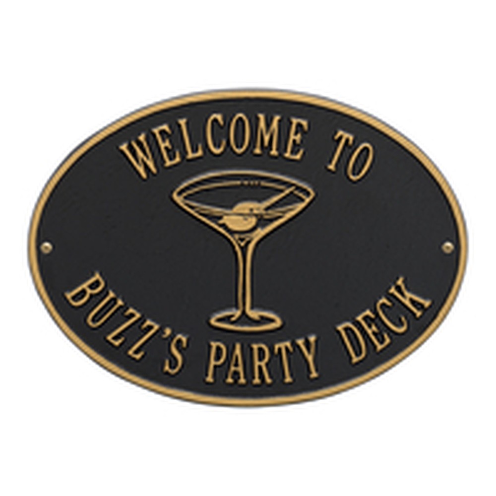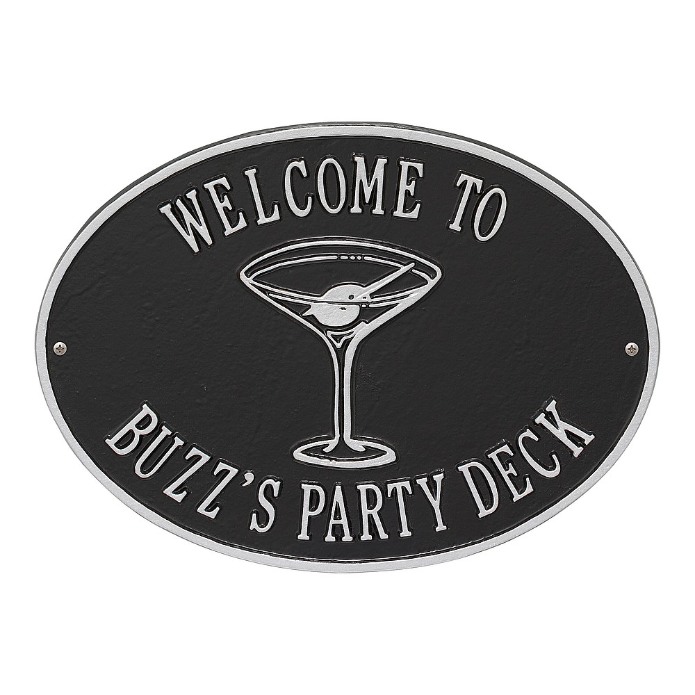 Dimensions (LxW): 14.25″ x 10.25″ Welcome everyone to your party spot with this personalized Martini wall plaque! Immediately upon arrival your guests will recognize it’s time to relax and enjoy the company. Made from environment friendly recycled aluminum these signs are weather resistant and will outlast any party you can throw. Each sign is custom made in the USA to your specifications giving you the ability to create the perfect greeting for your guests. Keep the party going at your patio, deck, or backyard and order your custom Martini sign today! Personalization is permanently cast into the sign. Manufactured from high-density cast aluminum alloy. Alumi-Shieldâ„¢ All Weather Coating: A Whitehall Exclusive Alumi-Shieldâ„¢ – Protects against the harshest weather and environmental elements. Extends the product life and maintains the look and function. Made in the USA.