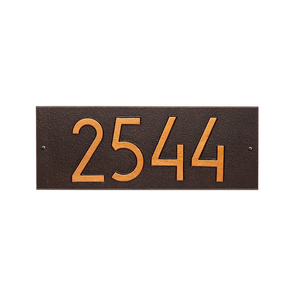 Dimensions (LxWxH): 14.5″ X 5.5″ x .25″ Embrace the charm of mid-century modern design with our Rectangle Aluminum Address Plaque. This sophisticated piece seamlessly combines sleek lines and durable materials to create a timeless addition to your home. Crafted from high-quality aluminum, this address plaque not only serves its practical purpose but also adds a touch of elegance to your exterior. Premium Aluminum Construction: Our address plaque is meticulously crafted from premium aluminum, ensuring durability and longevity. The material is resistant to rust and corrosion, making it an ideal choice for both classic and contemporary homes. Sleek Mid-Century Design: The clean lines and minimalist aesthetic of mid-century modern design are captured in every detail of this address plaque. Its rectangular shape and understated design make it a versatile choice that complements various architectural styles. Easy Installation: Designed with convenience in mind, our address plaque is easy to install. The package includes all necessary mounting hardware, and the installation process is straightforward, allowing you to effortlessly enhance your home’s exterior. Personalization is permanently cast into the sign Enhanced Curb Appeal: Elevate the visual appeal of your home with a touch of mid-century modern flair. The sleek and timeless design of the aluminum address plaque adds a subtle yet effective element to your exterior, setting your home apart.