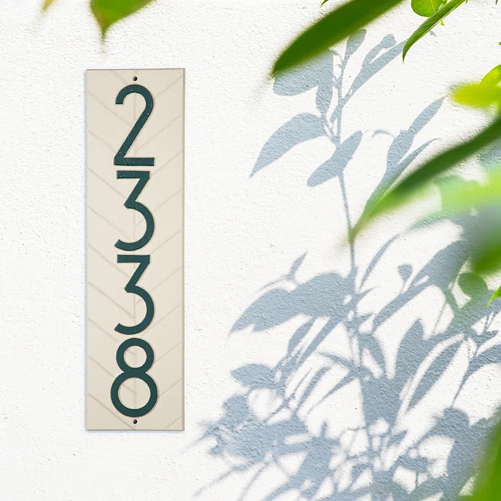 Dimensions (LxWxH): 18.25″ x 5″ x .25″ Introducing Our Modern Vertical Herringbone Address Plaque: A Stylish Statement for Your Home Timeless Herringbone Pattern: The classic herringbone pattern has been reimagined in a vertical layout, giving the plaque a modern twist. This elegant design is sure to catch the eye of anyone passing by. Cast from recycled aluminum – will not rust. Easy Installation: Our Modern Vertical Herringbone Address Plaque is designed for hassle-free installation. The package includes all necessary hardware and easy-to-follow instructions, allowing you to proudly display your address in no time. Premium Materials: Crafted from high-quality, weather-resistant materials, our address plaque is built to withstand the elements, ensuring it retains its beauty for years to come. The durable construction guarantees that your address will always be visible, regardless of the weather conditions. Personalization is permanently cast into the sign Please check for accuracy; personalized orders cannot be modified, cancelled, or returned after being placed