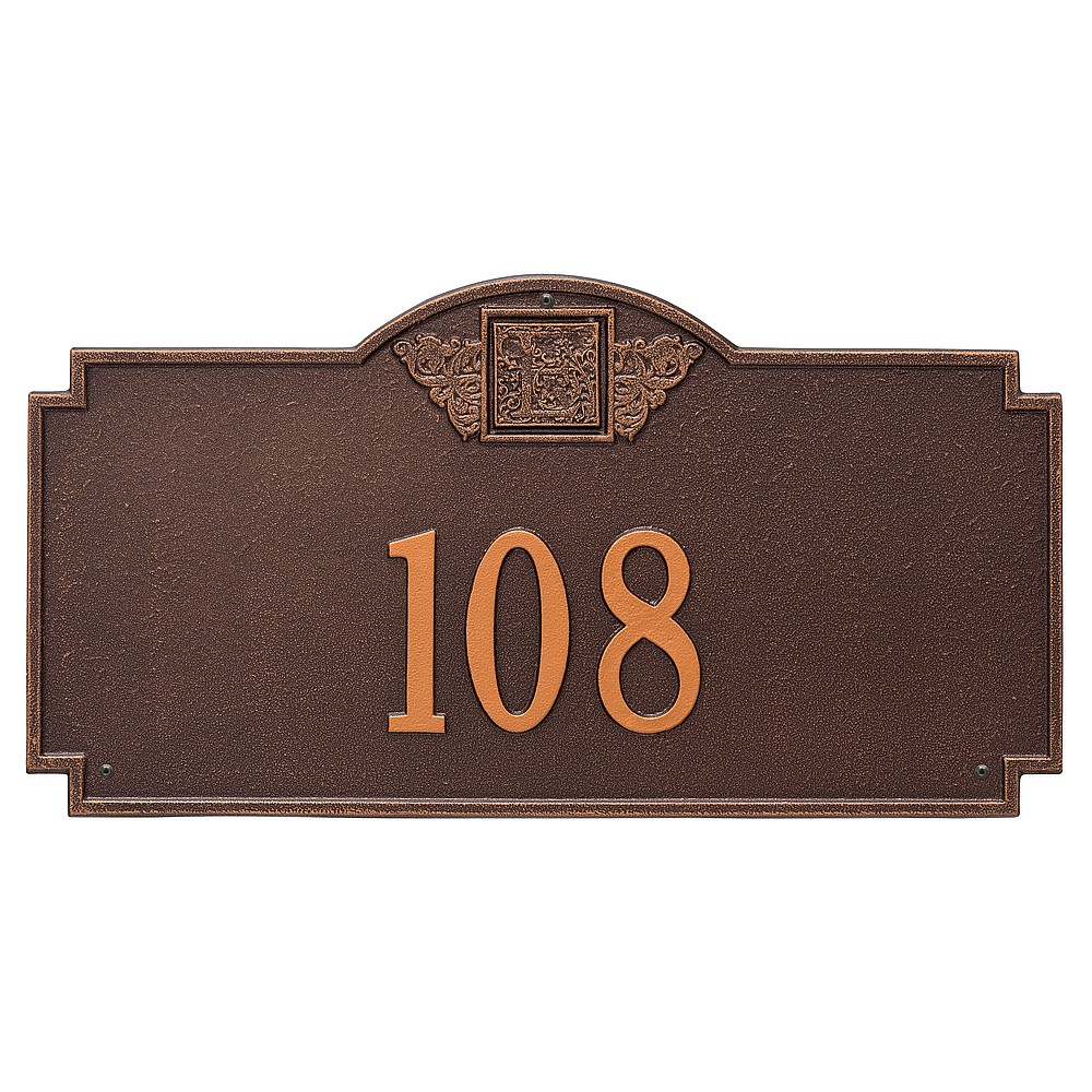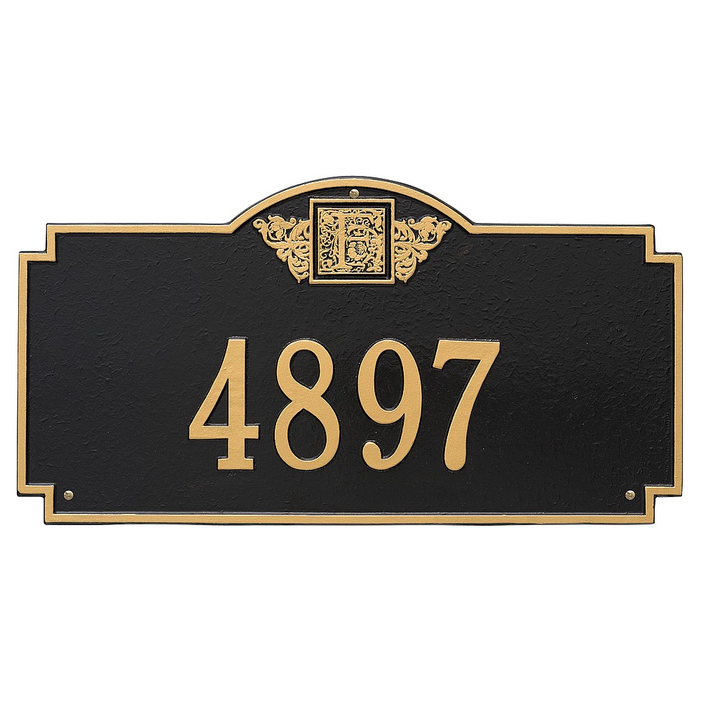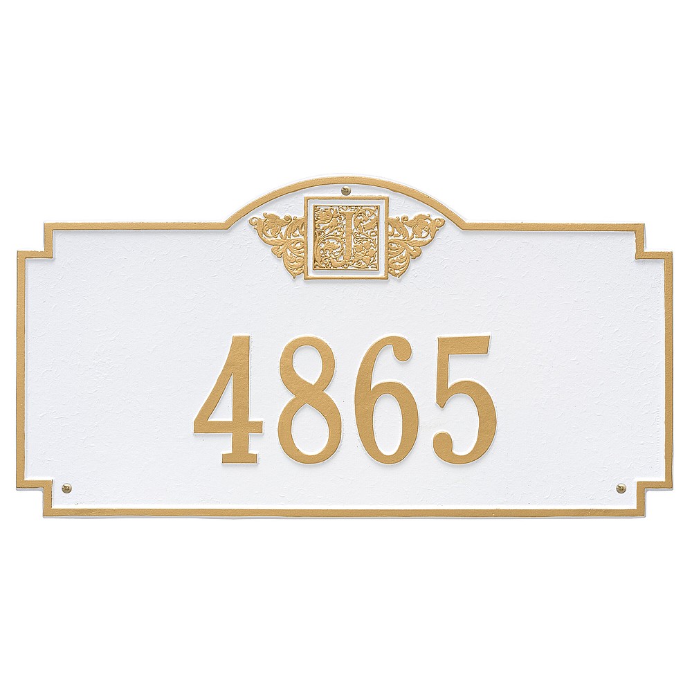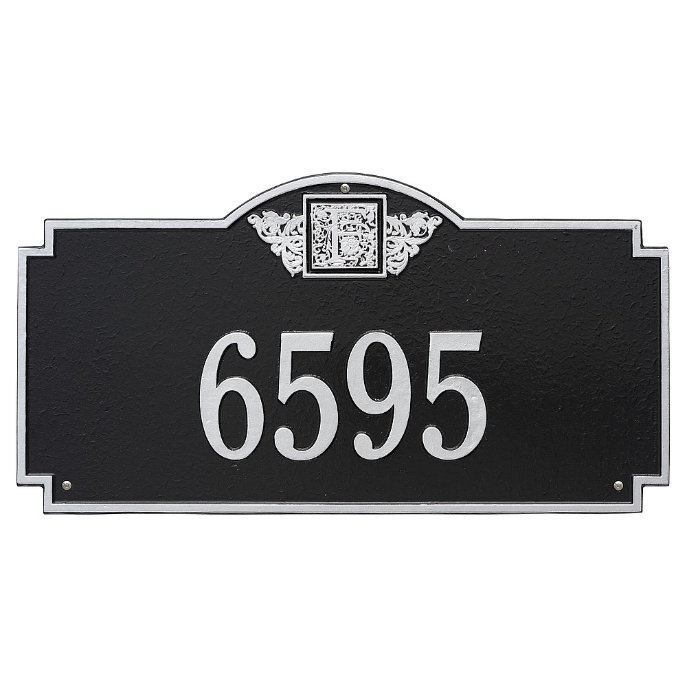 5 – 4.5″ numbers or 17 – 2″ characters The Whitehall Products Monogram Estate Address Plaque lends a classic vintage look to your home. The lightweight rust-free aluminum is handcrafted to make this elegant address plaque. The plaque has weather resistant paints that provide a long life Made in the USA Cast from recycled aluminum – will not rust. Alumi-Shield™ All Weather Coatings: A Whitehall Exclusive Enhances curb appeal while adding value to your home Personalization is permanently cast into the sign