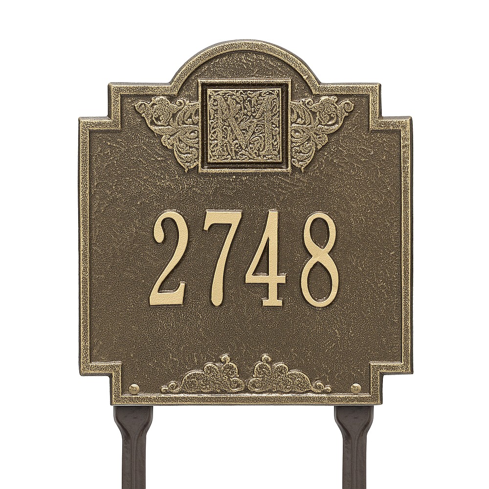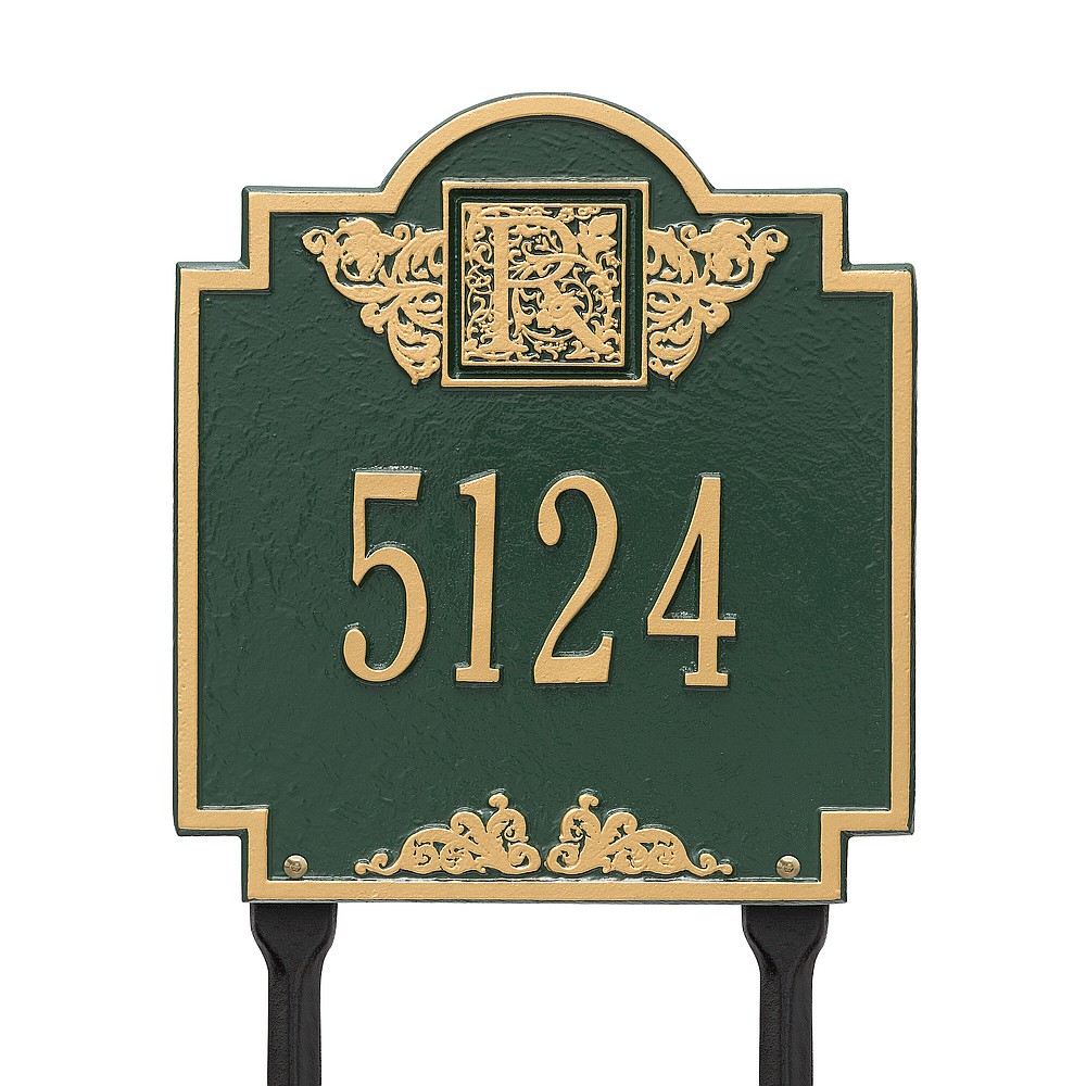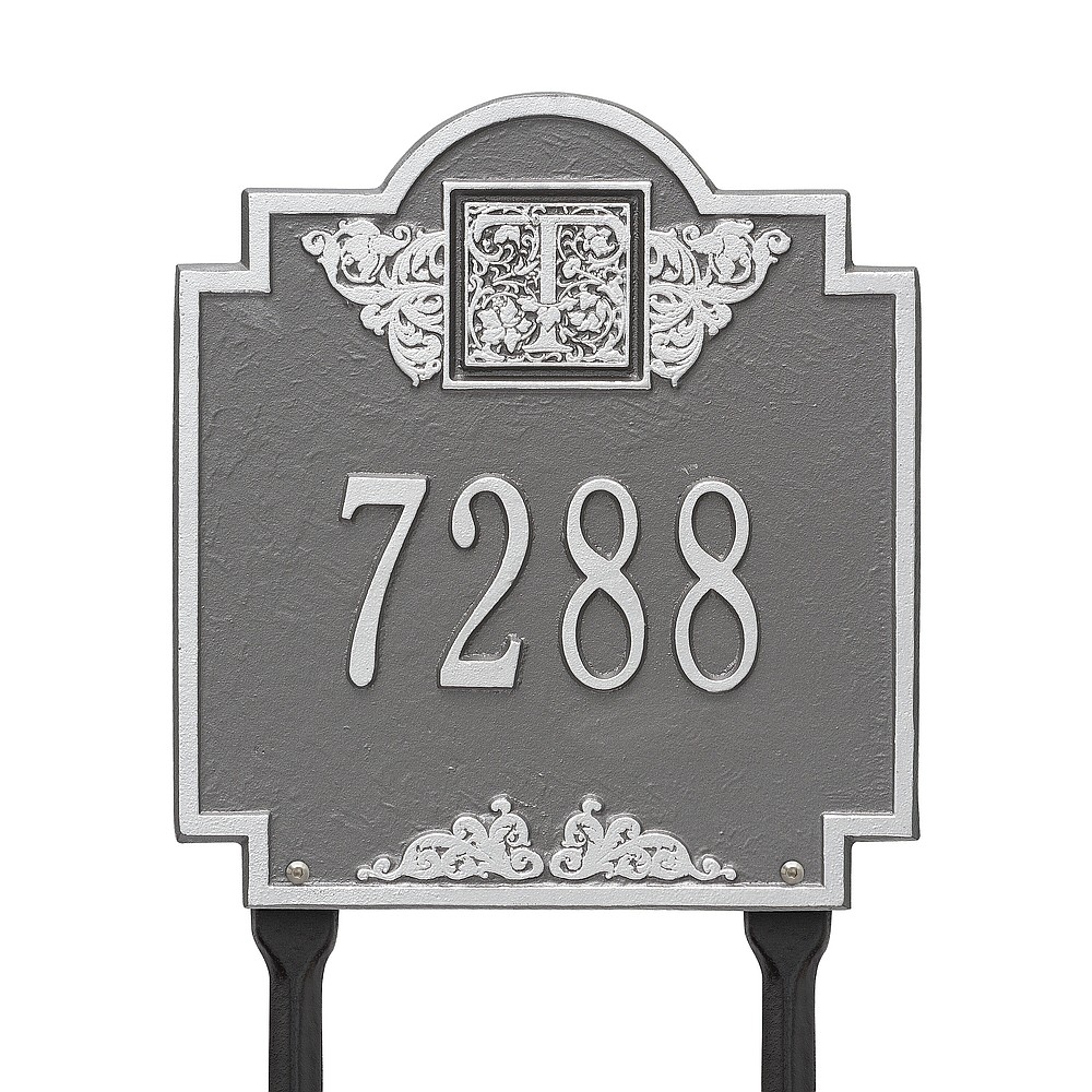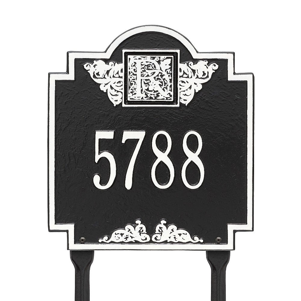 5 – 3″ characters or 12 – 1.25″ characters Make a prestigious statement with your Monogram initial in this distinctive house numbers plaque. The Monogram address sign will provide a nice upgrade to the curb appeal of your home. Home address plaques also make great gifts for any special occasion Made in the USA Cast from recycled aluminum – will not rust. Alumi-Shield™ All Weather Coatings: A Whitehall Exclusive Enhances curb appeal while adding value to your home Personalization is permanently cast into the sign