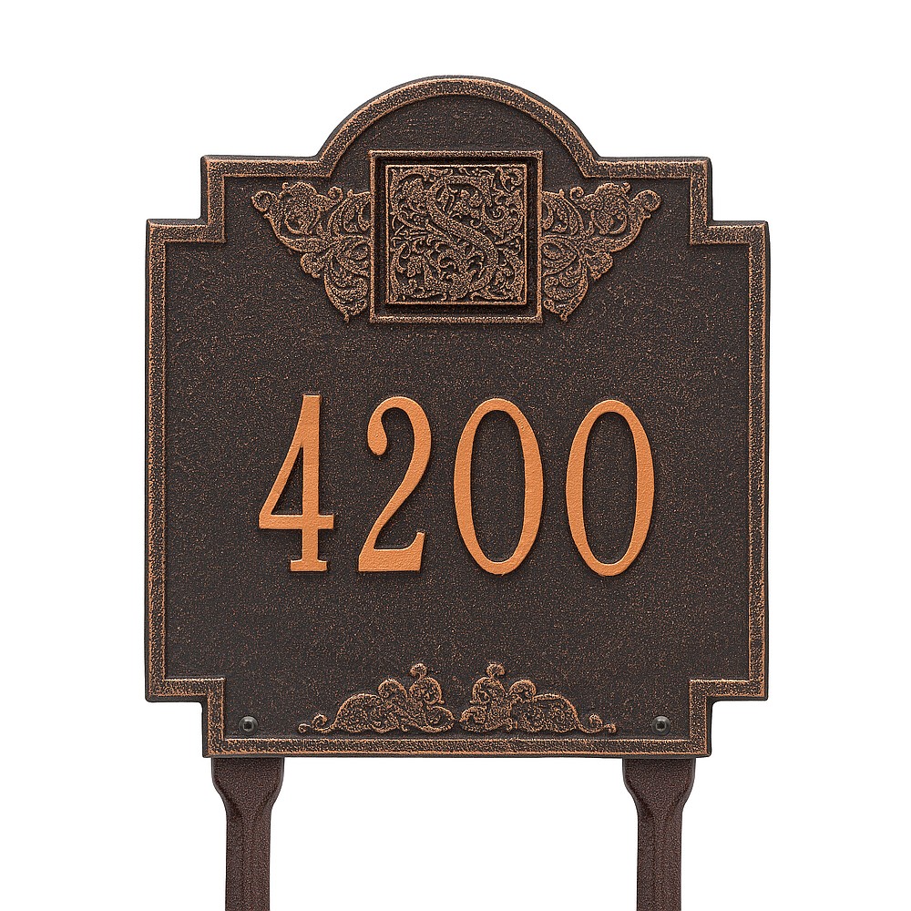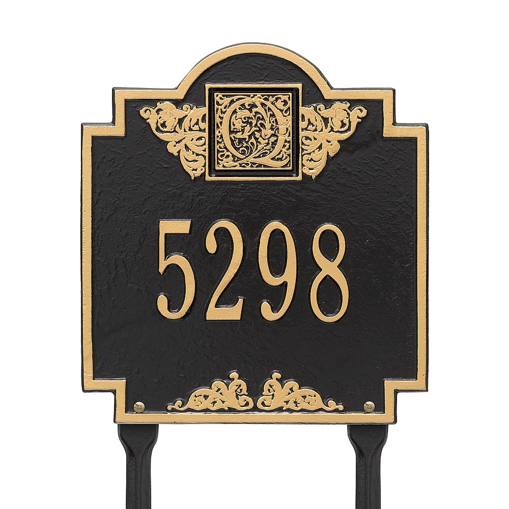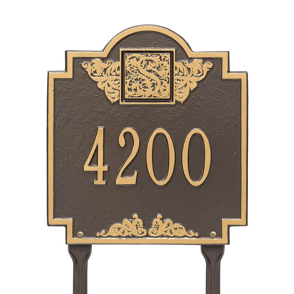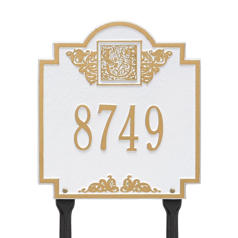5 – 3″ characters or 12 – 1.25″ characters Make a prestigious statement with your Monogram initial in this distinctive house numbers plaque. The Monogram address sign will provide a nice upgrade to the curb appeal of your home. Home address plaques also make great gifts for any special occasion Made in the USA Cast from recycled aluminum – will not rust. Alumi-Shield™ All Weather Coatings: A Whitehall Exclusive Enhances curb appeal while adding value to your home Personalization is permanently cast into the sign