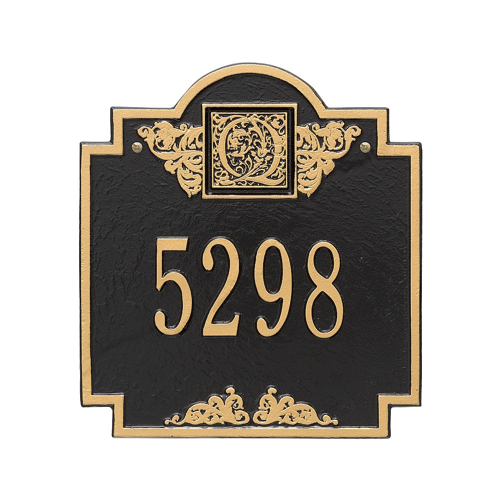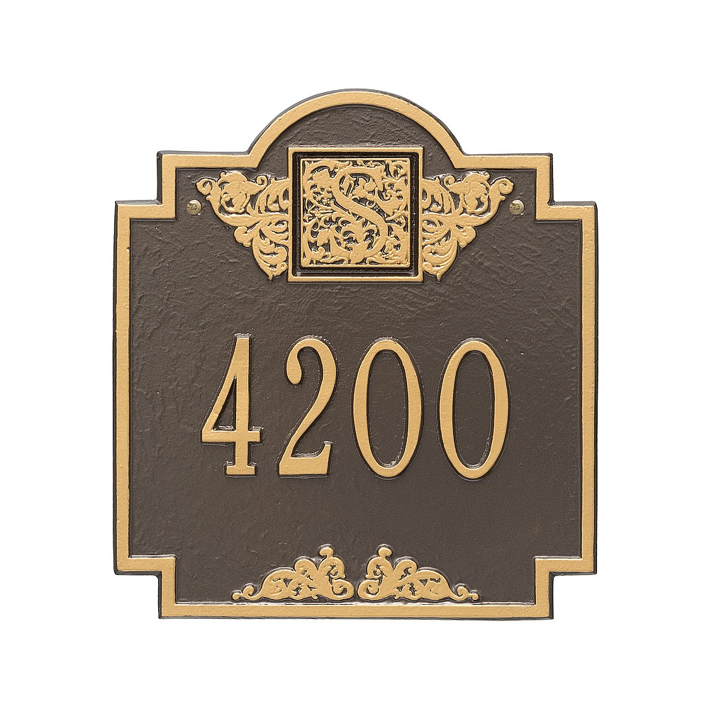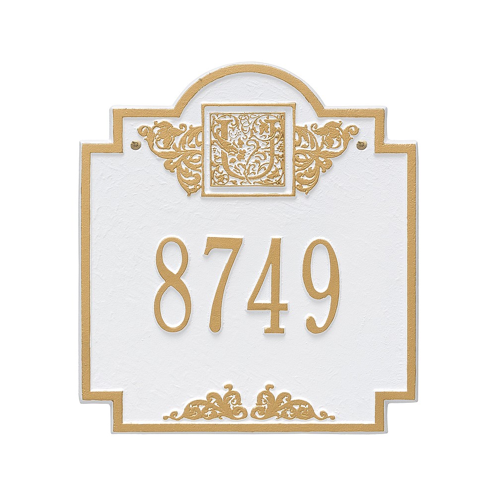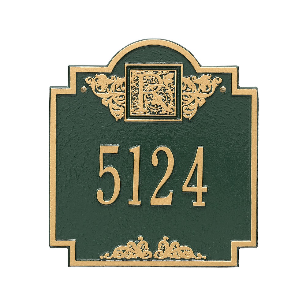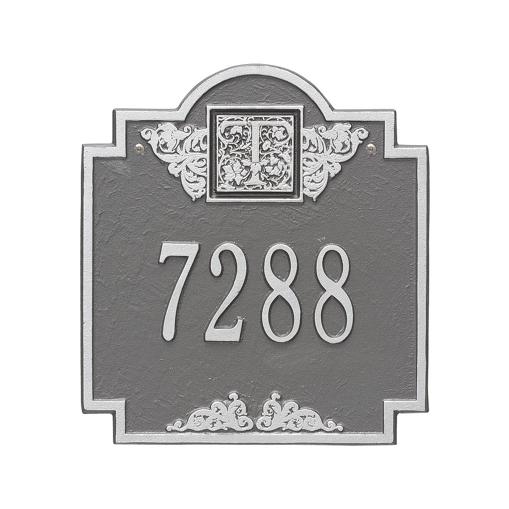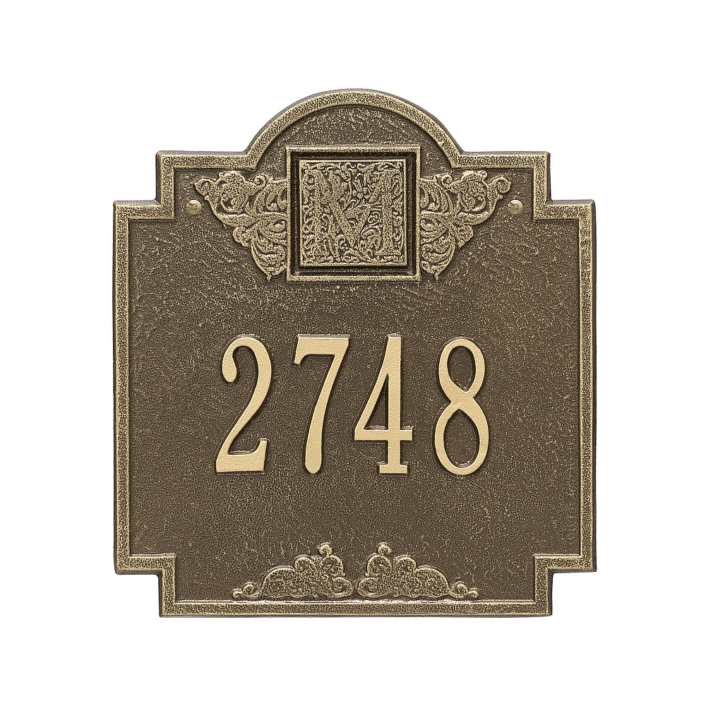 5 – 3″ characters or 12 – 1.25″ characters Make a prestigious statement with your Monogram initial in this distinctive house numbers plaque. The Monogram address sign will provide a nice upgrade to the curb appeal of your home. Home address plaques also make great gifts for any special occasion Made in the USA Cast from recycled aluminum – will not rust. Alumi-Shield™ All Weather Coatings: A Whitehall Exclusive Enhances curb appeal while adding value to your home Personalization is permanently cast into the sign