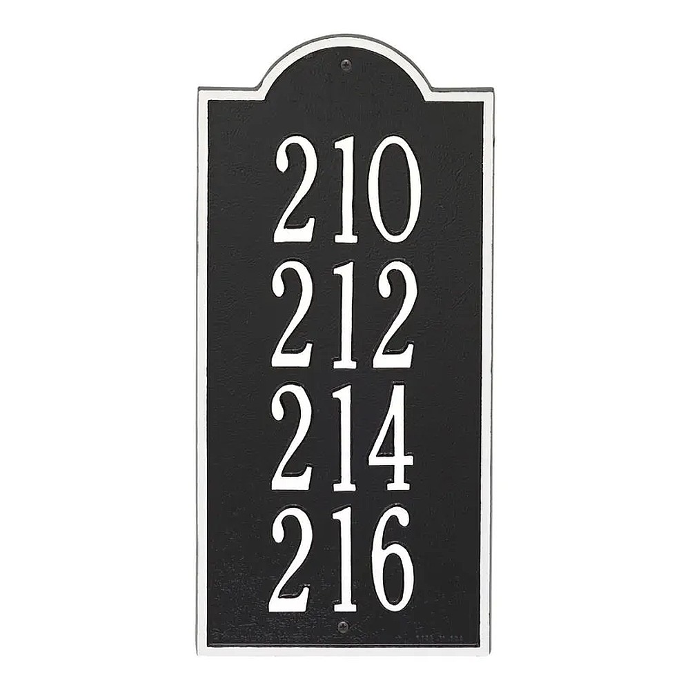 Dimensions (LxWxH): 8.5″ x 17.5″ x .375″ The Whitehall Products Large New Bedford Plaque can be configured to mark almost anything including an address, apartment numbers or even a statement. Each line is custom and you can change to your specifications. Easy to install. Available in multiple colors. This plaque is made from rust-free cast aluminum providing excellent quality and durability. Every Whitehall plaque is hand crafted by skilled craftsmen in the USA. Can be configured with up to 4 lines of text. Made in the USA Cast from recycled aluminum – will not rust. Alumi-Shieldâ„¢ All Weather Coatings: A Whitehall Exclusive Personalization is permanently cast into the sign